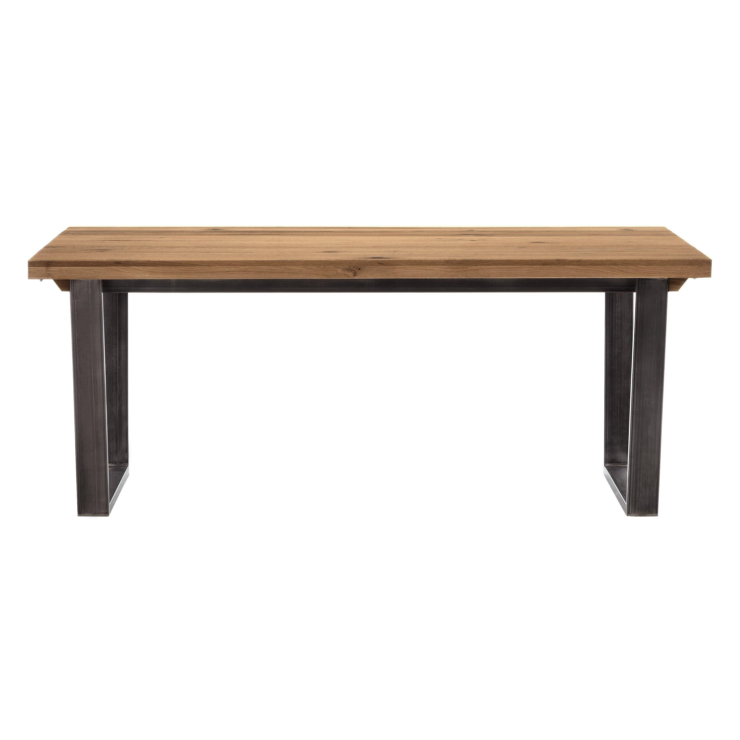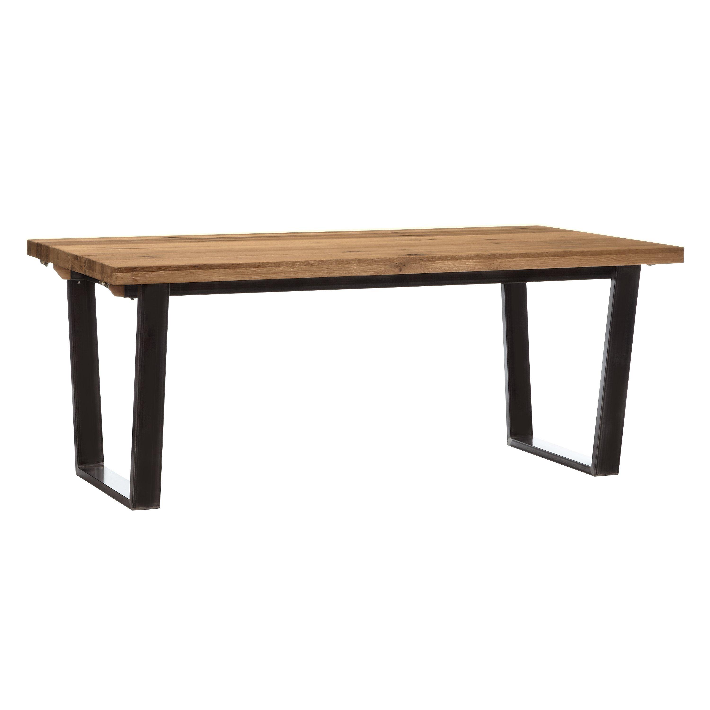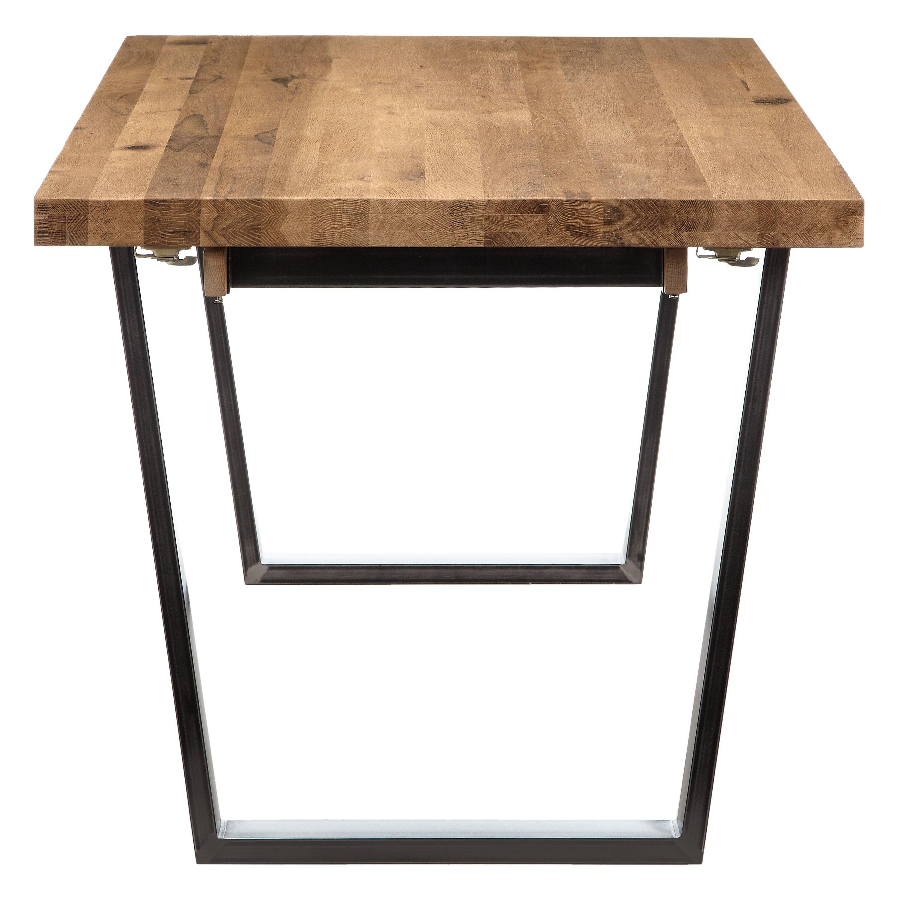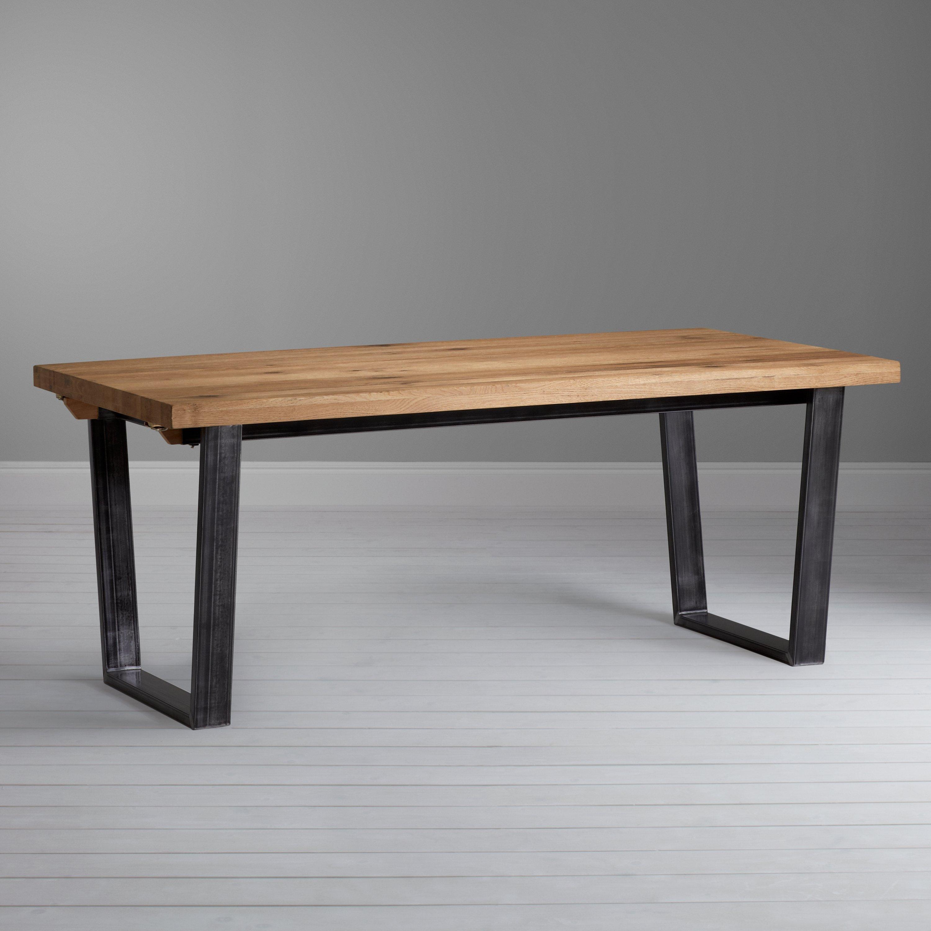 This solid and sturdy dining table can be extended easily thanks to the extension leaves that are fixed to both ends. Providing seating for up to 12 diners at its full extension, it's supported by a robust, welded iron base that's finished with a durable lacquer. The extension leaves must be stored separately when not in use. Striking and functional in design, this table will sit well amongst industrial-inspired settings.