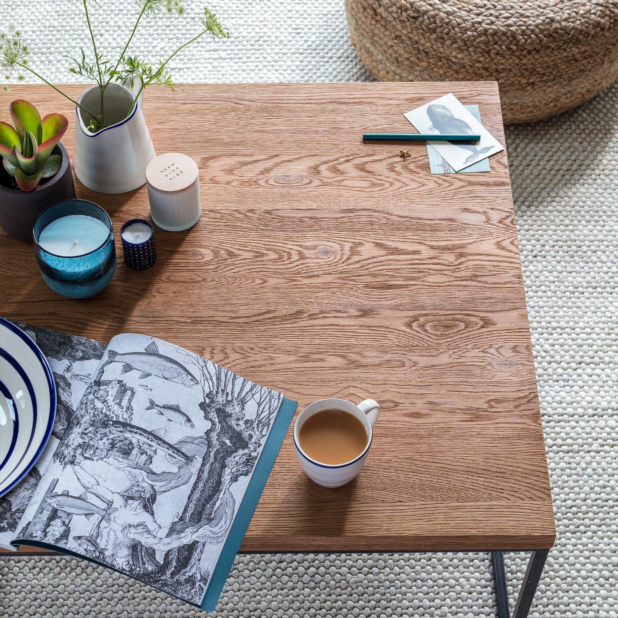 Oak is a natural, living material, and part of its charm is that it develops over time. This means that surface splits may start to appear with the natural movement of the wood. Knots will vary in size and location and a subtle colour variation can also be expected. These distinctive qualities give the range a unique feel, as no two pieces will be exactly the same. To keep your furniture looking its best, we recommend periodic oiling and oiling before first use. More information can be found in the assembly instructions supplied.