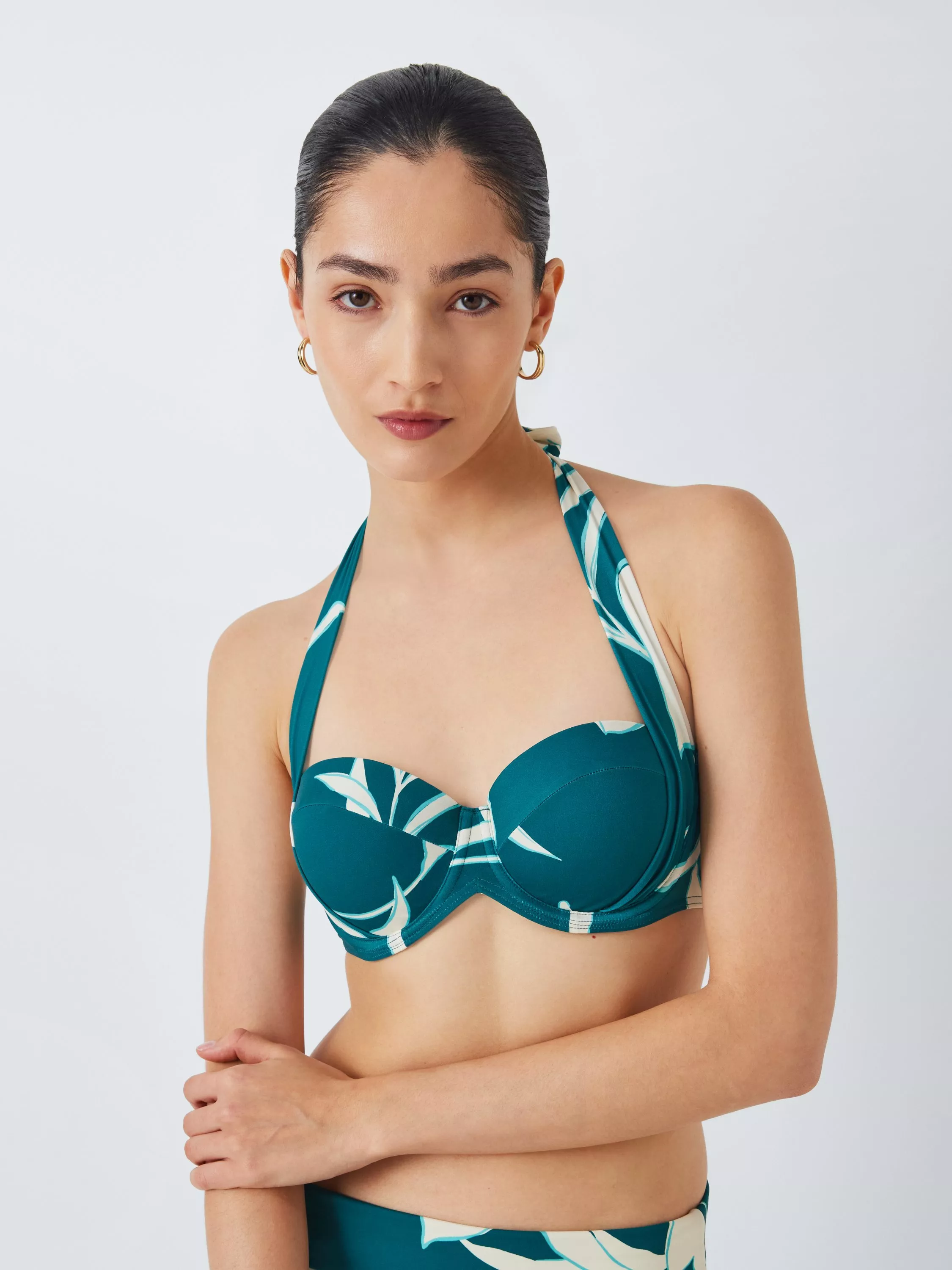 A fully lined halterneck sling bikini top. Underwiring and moulded cups give shaping and support, and the sling straps can be worn around the back for a strapless look.