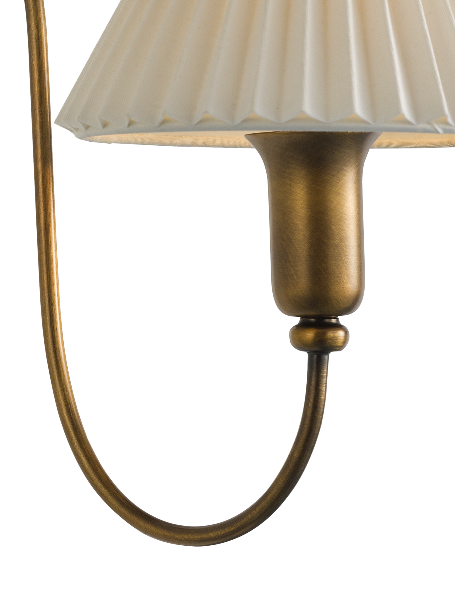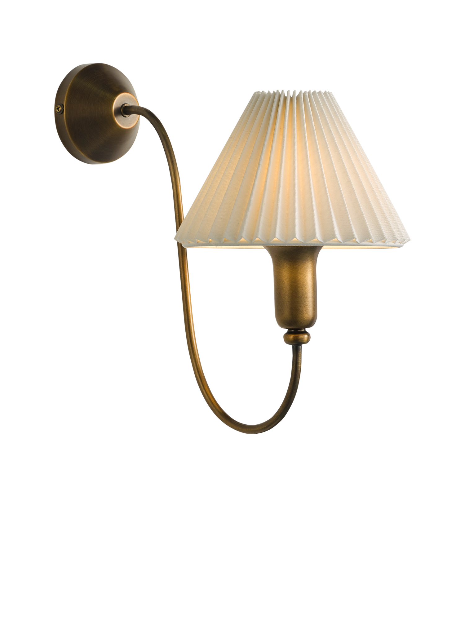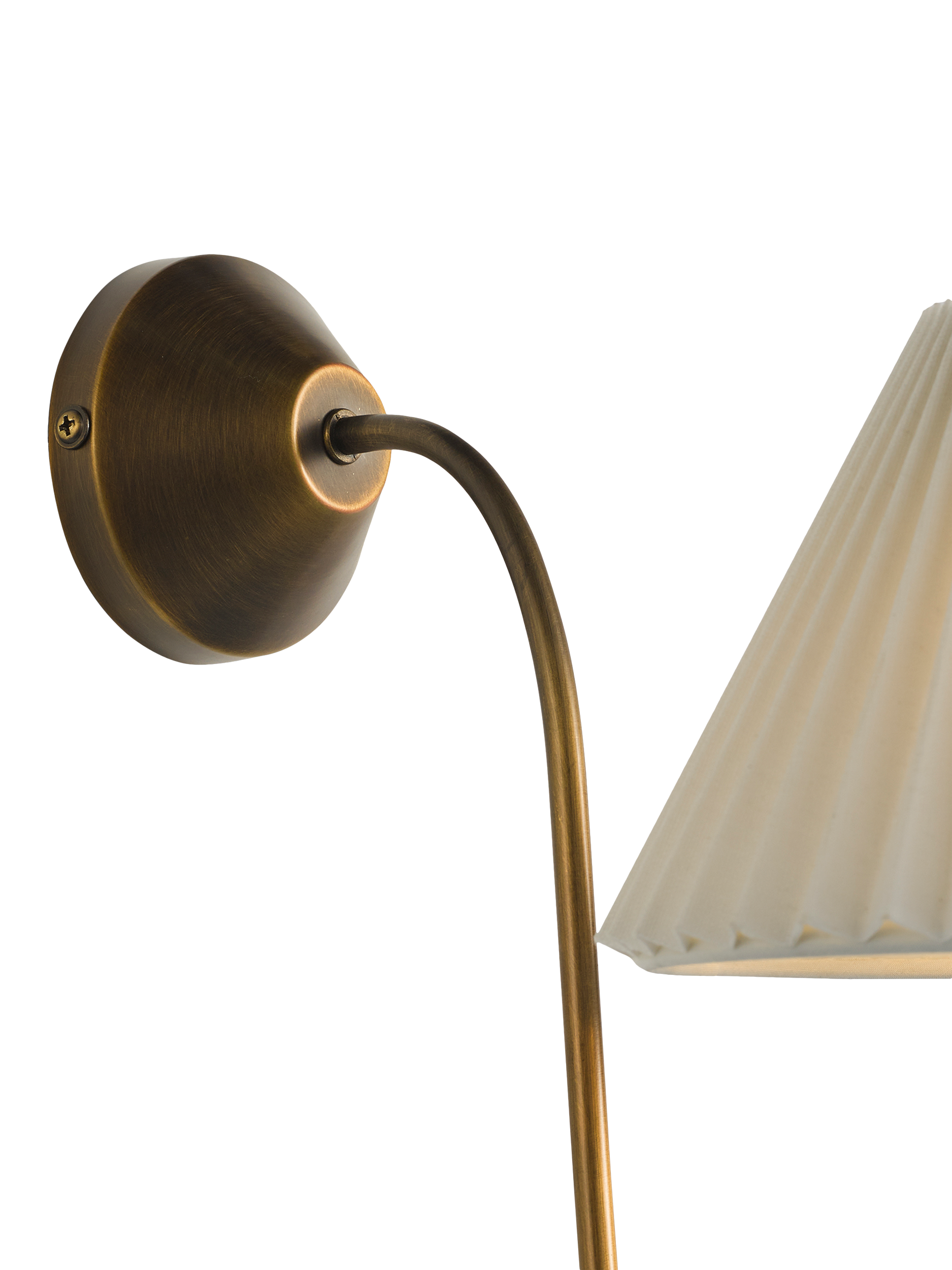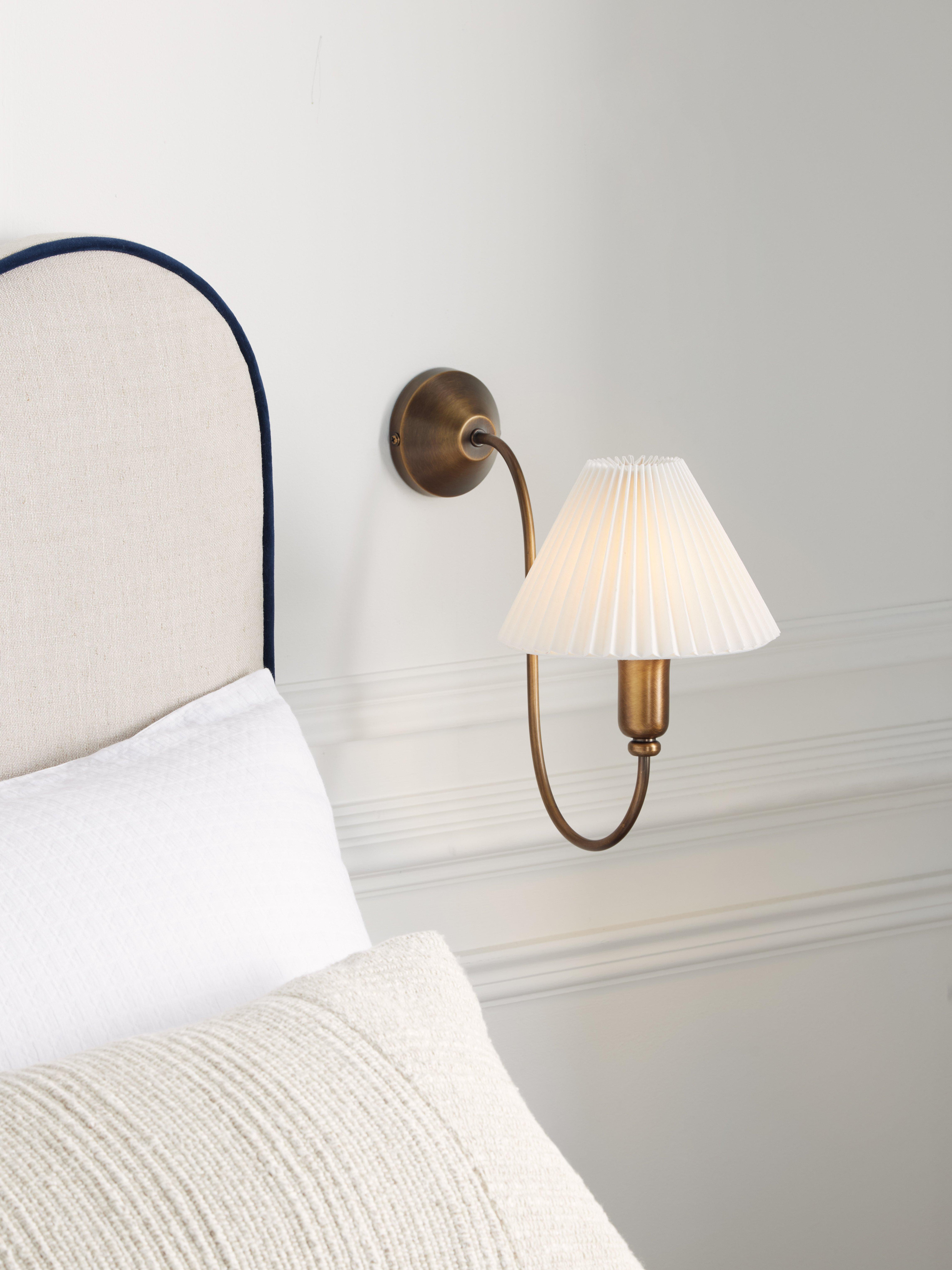 A tapered pleated linen lampshade updates our Candelabra wall light, completed with an antique bronze finish. The soft, flowing arm creates an elegant shape. Suits most rooms around the home.