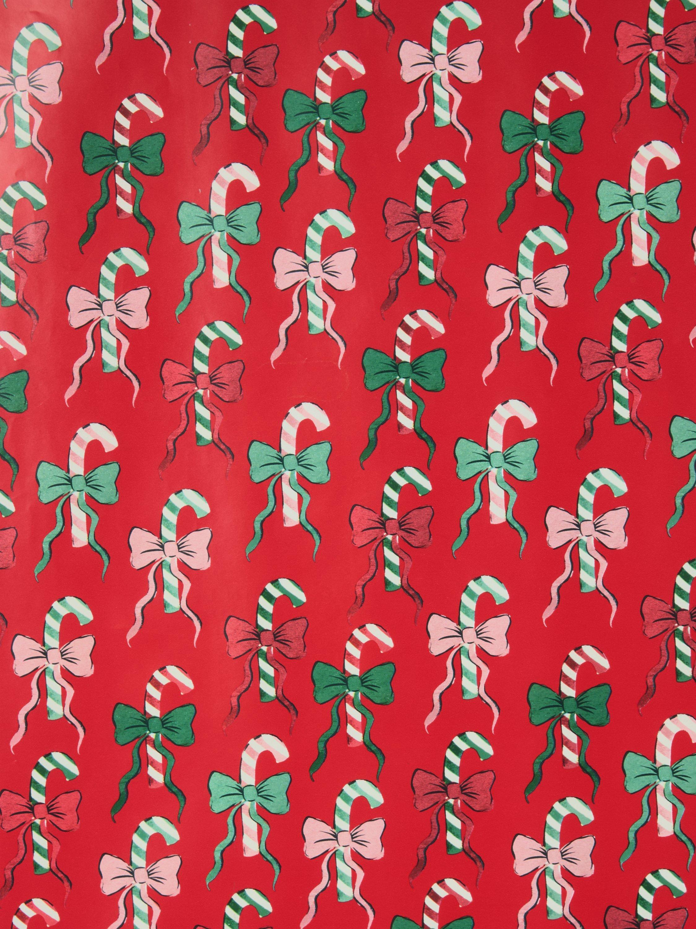 John LewisCandy Cane Bows Wrapping Paper, L4m, Multi