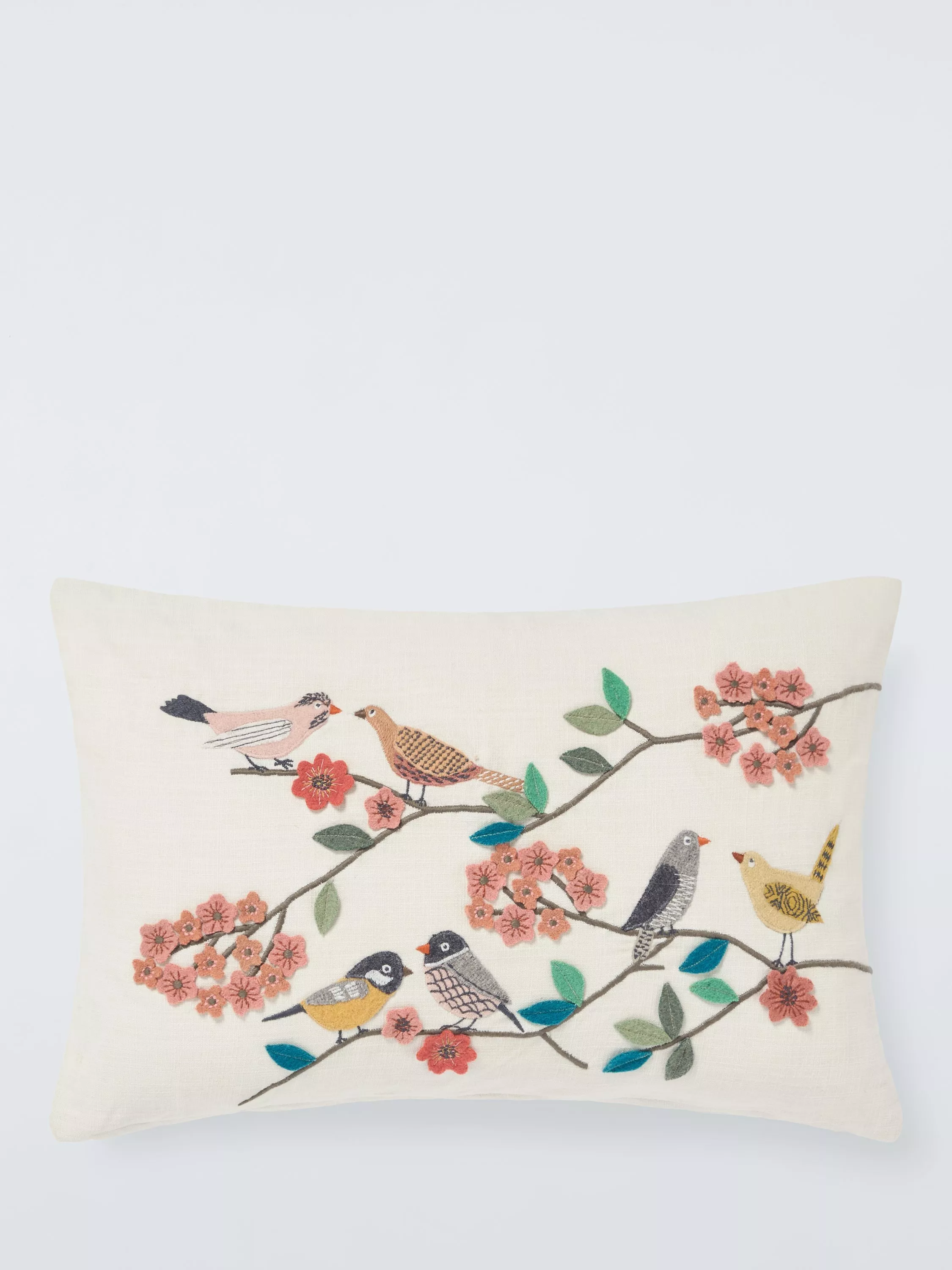 A beautiful cushion, scattered with embroidery which gives a lovely 3D effect against the cotton blend background.