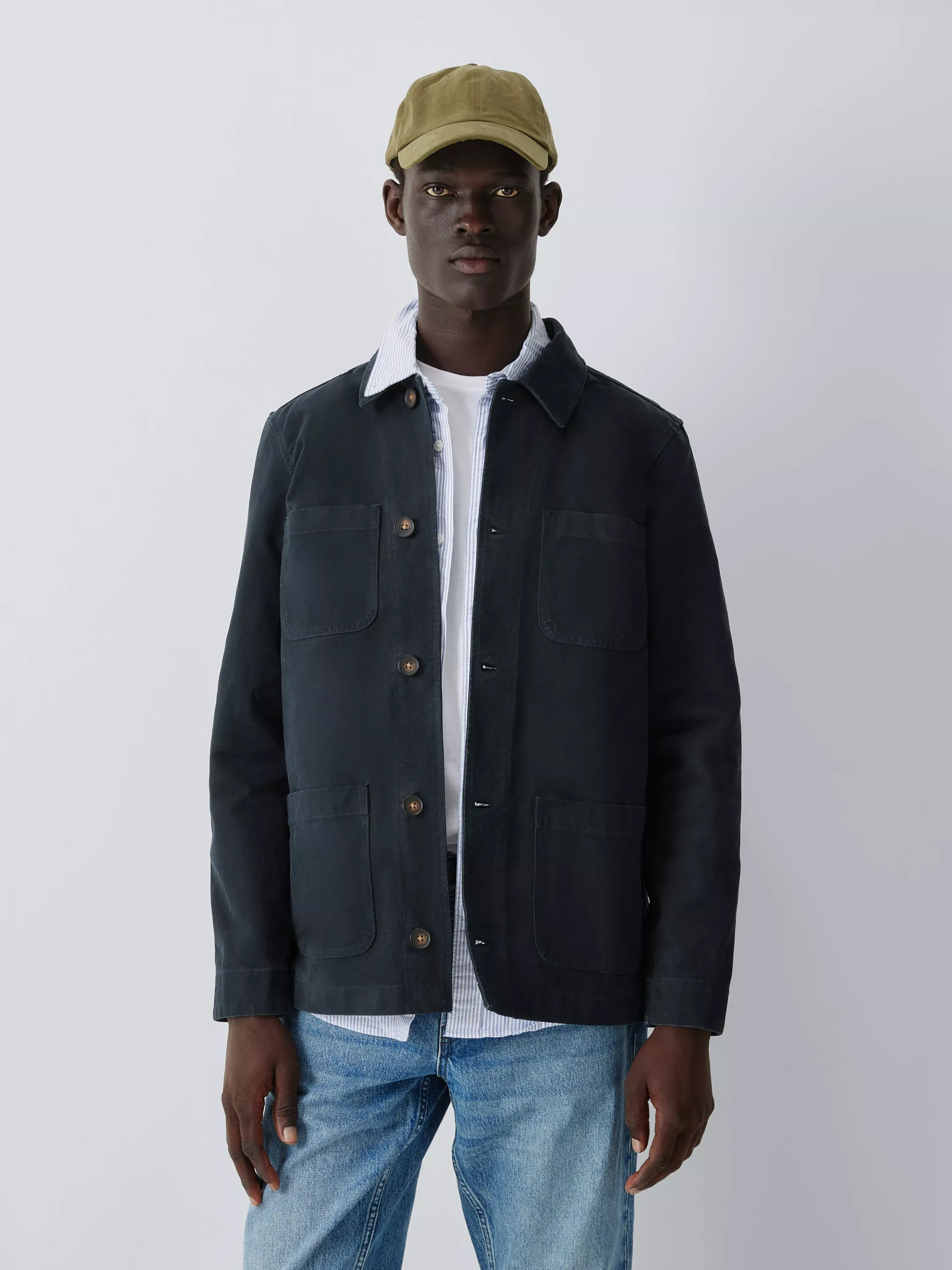 Embrace an on-trend workwear-inspired design with this chore jacket. Made from hardwearing cotton canvas, it features two large patch pockets at the waist, four centre front buttons for fastening and one internal pocket, creating a vintage utilitarian look.