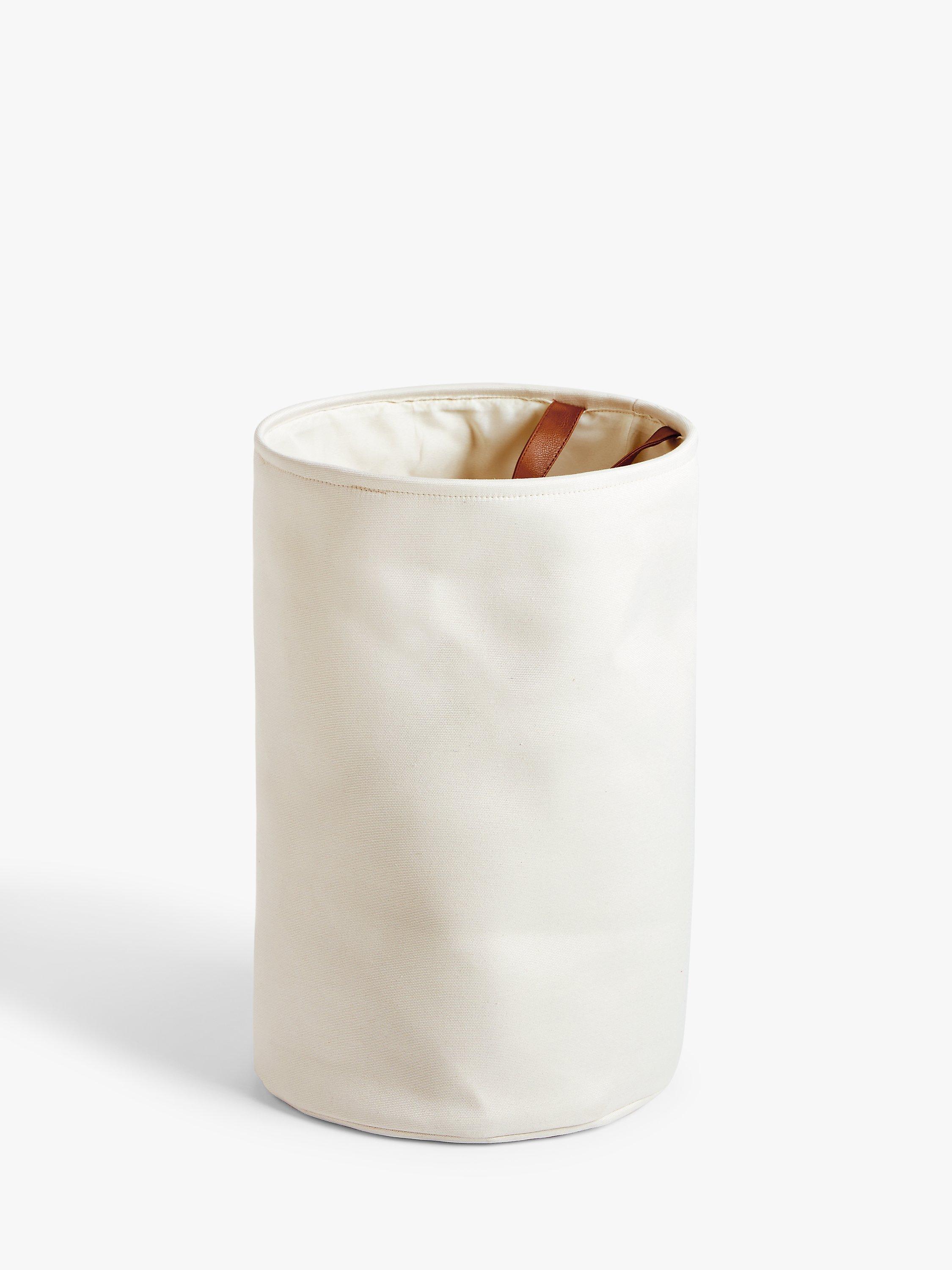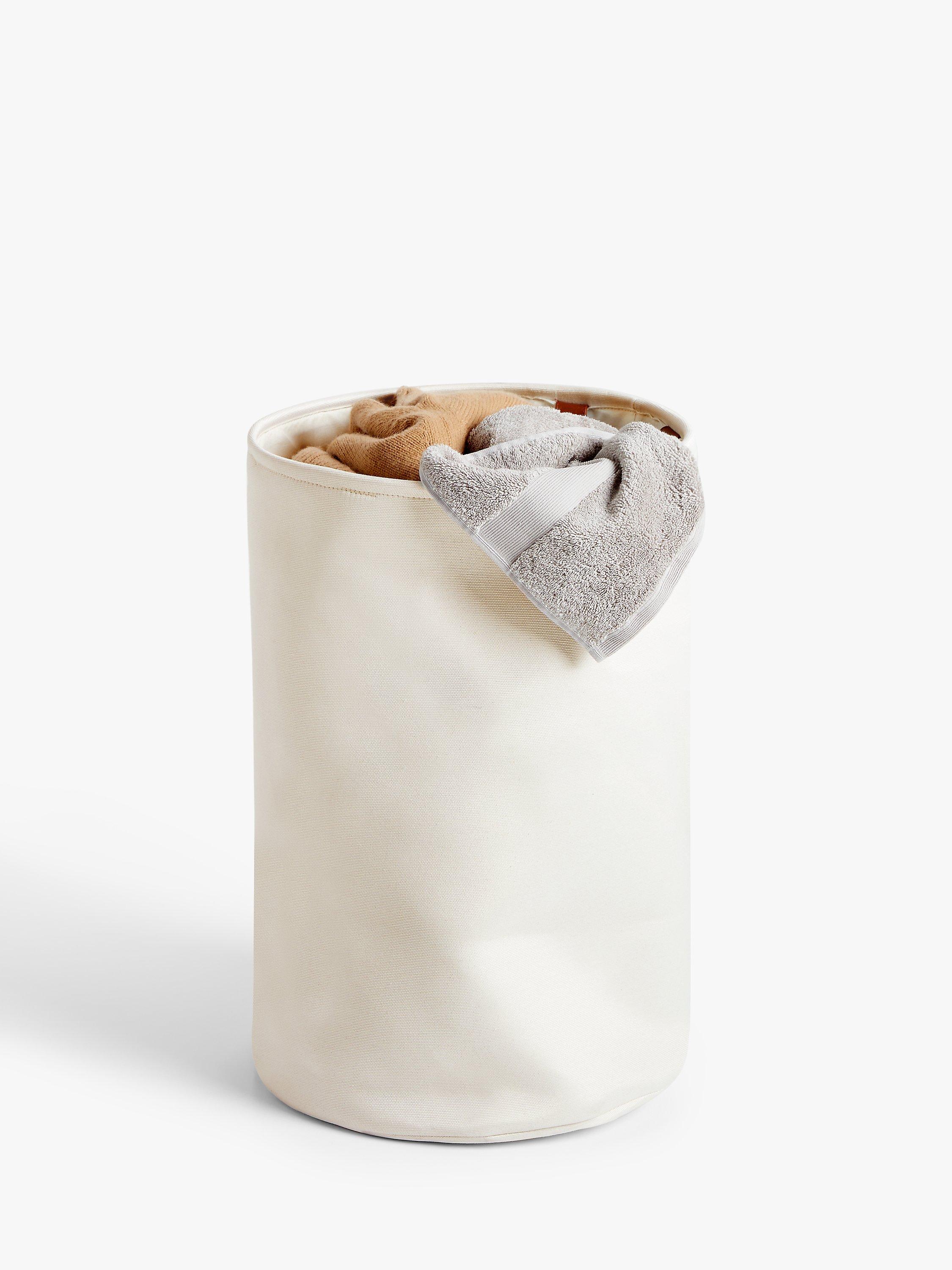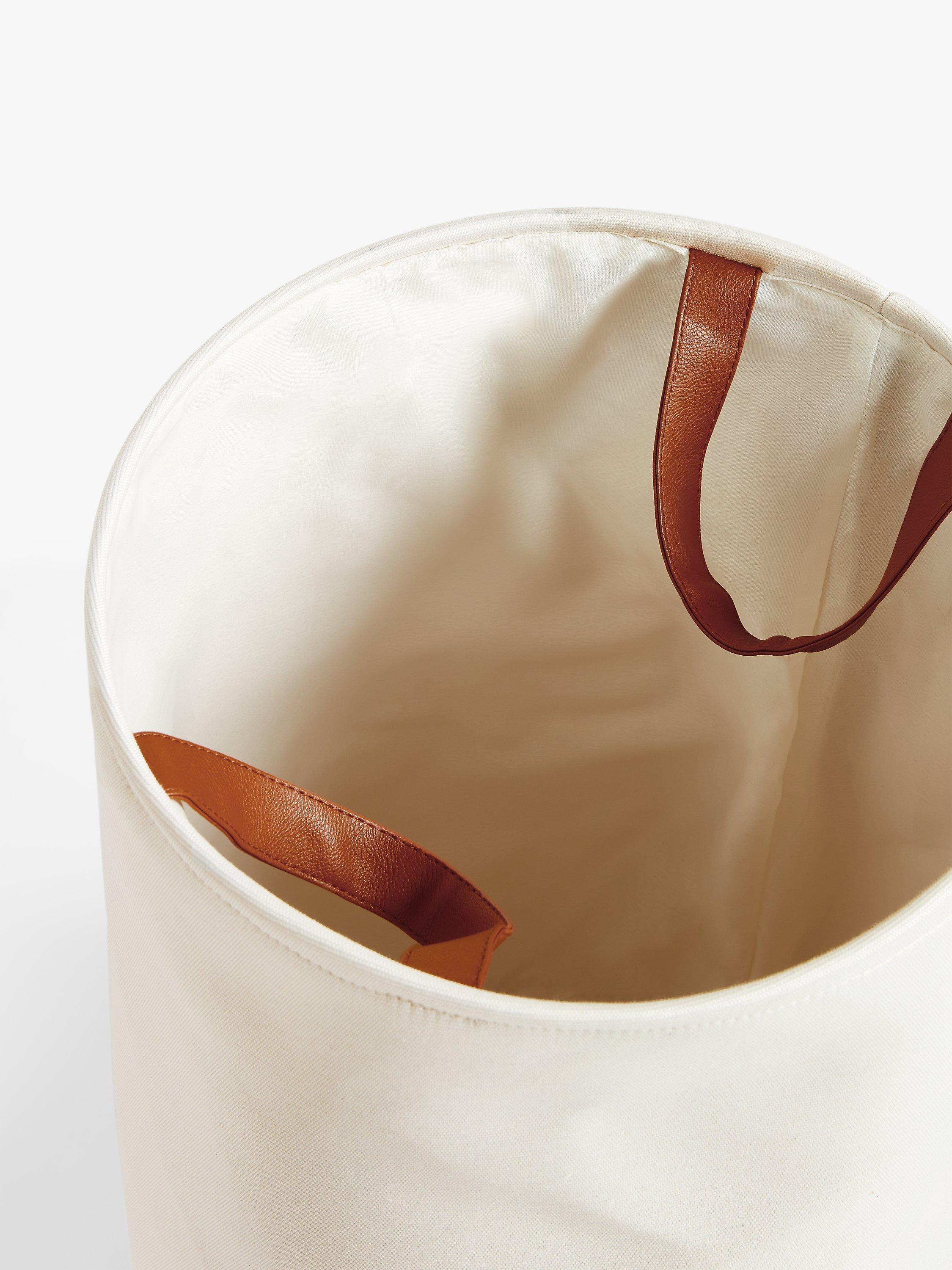 We've lined our canvas laundry basket with polyester fabric that's kind on the clothes you drop in. It can also withstand a bit of dampness, so even if you've been caught in the rain or have loaded it with sweaty workout gear, there's no hurry to get the laundry on.