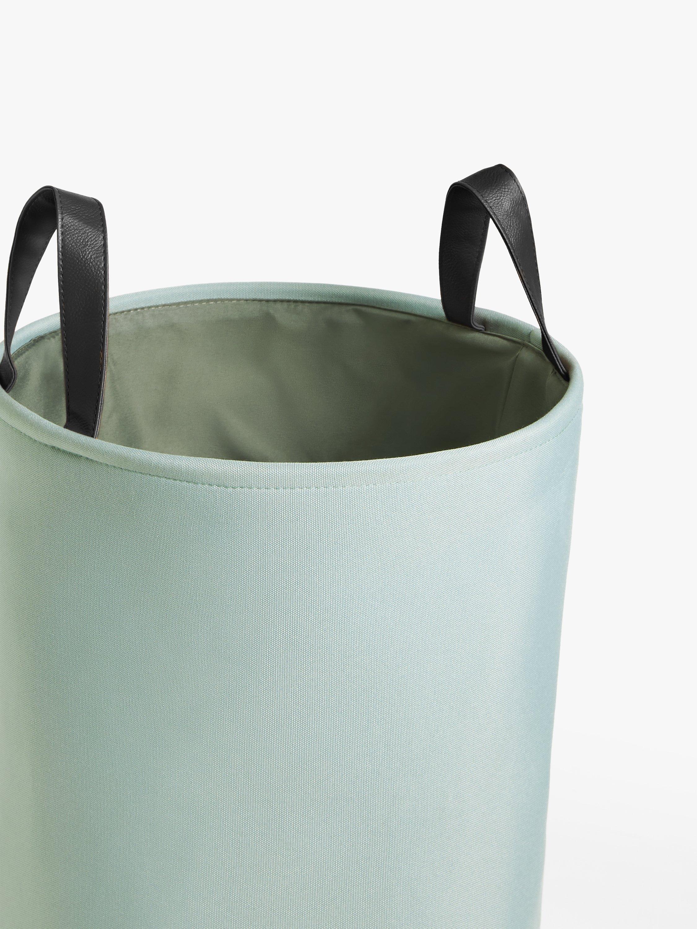 We've lined our canvas laundry basket with polyester fabric that's kind on the clothes you drop in. It can also withstand a bit of dampness, so even if you've been caught in the rain or have loaded it with sweaty workout gear, there's no hurry to get the laundry on.