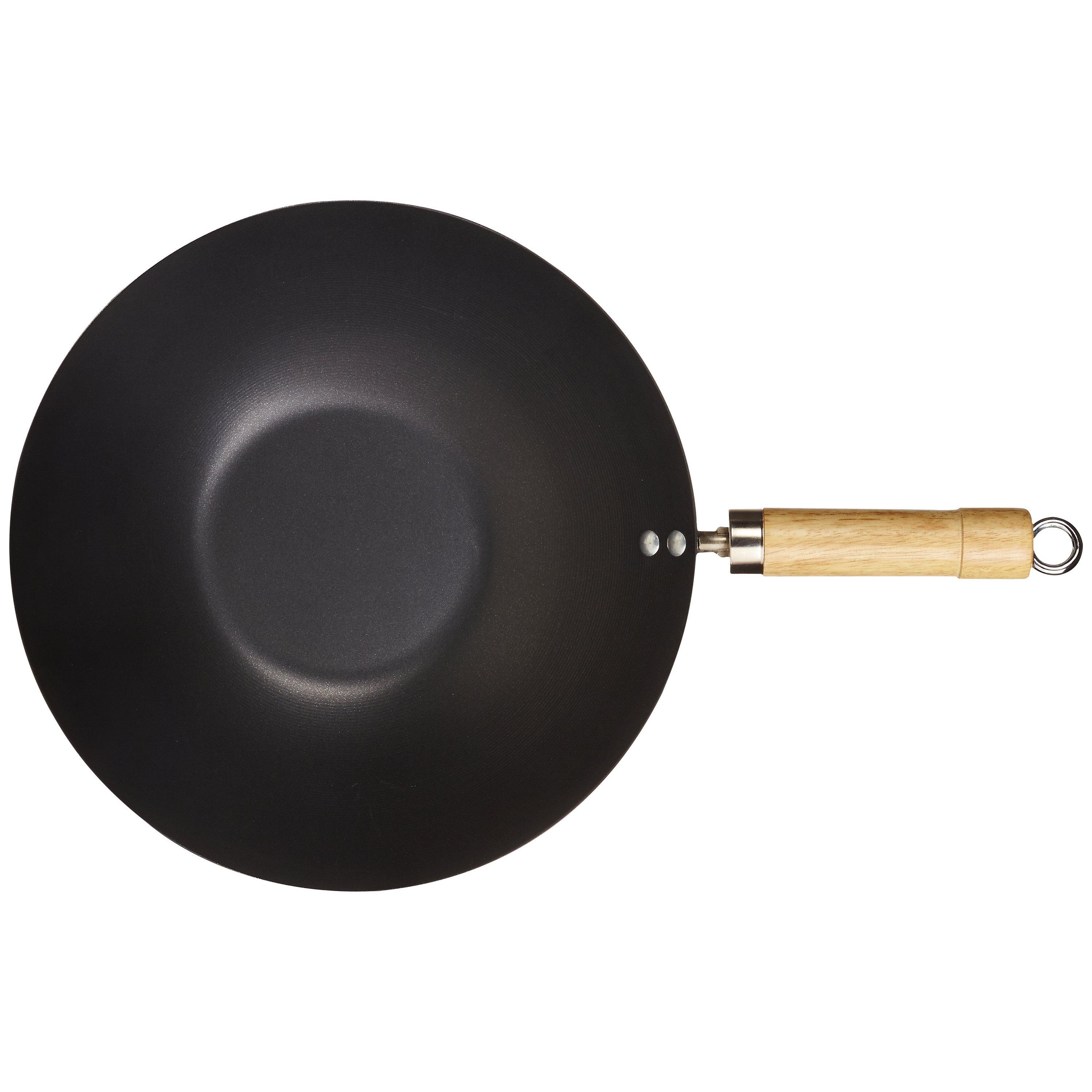 Heavy-gauge carbon steel wok with a non-stick coating. The wok heats up evenly and quickly. The non-stick interior can withstand high heat but for longevity purposes, we recommend using the wok over low to medium heat. Do not use with metal utensils.
