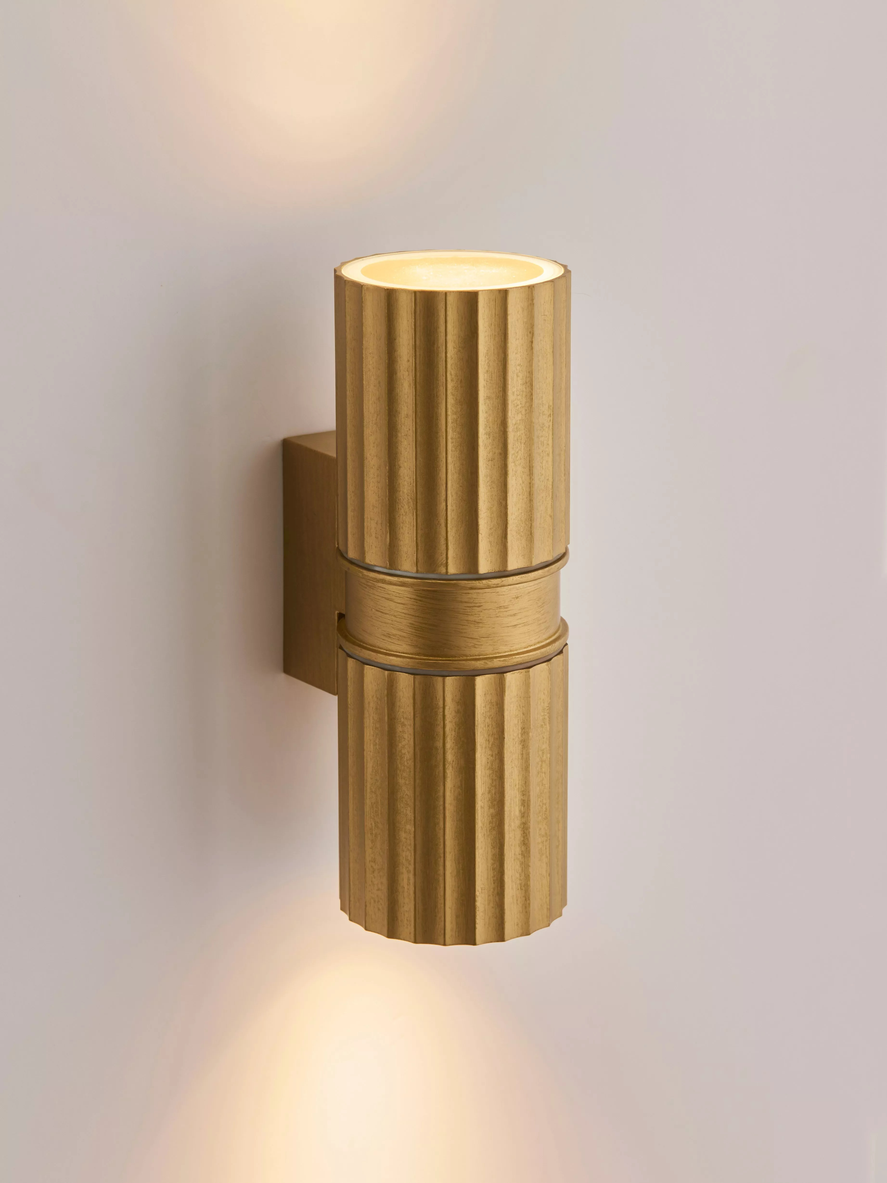Sleek and sophisticated, the Carlo outdoor wall light provides both upward and downward illumination, casting a captivating effect on your home's exterior. This modern and textured fixture is ideal for enhancing porches, garages or other outdoor facias. It has an IP44 rating, making it suitable for outdoor use.