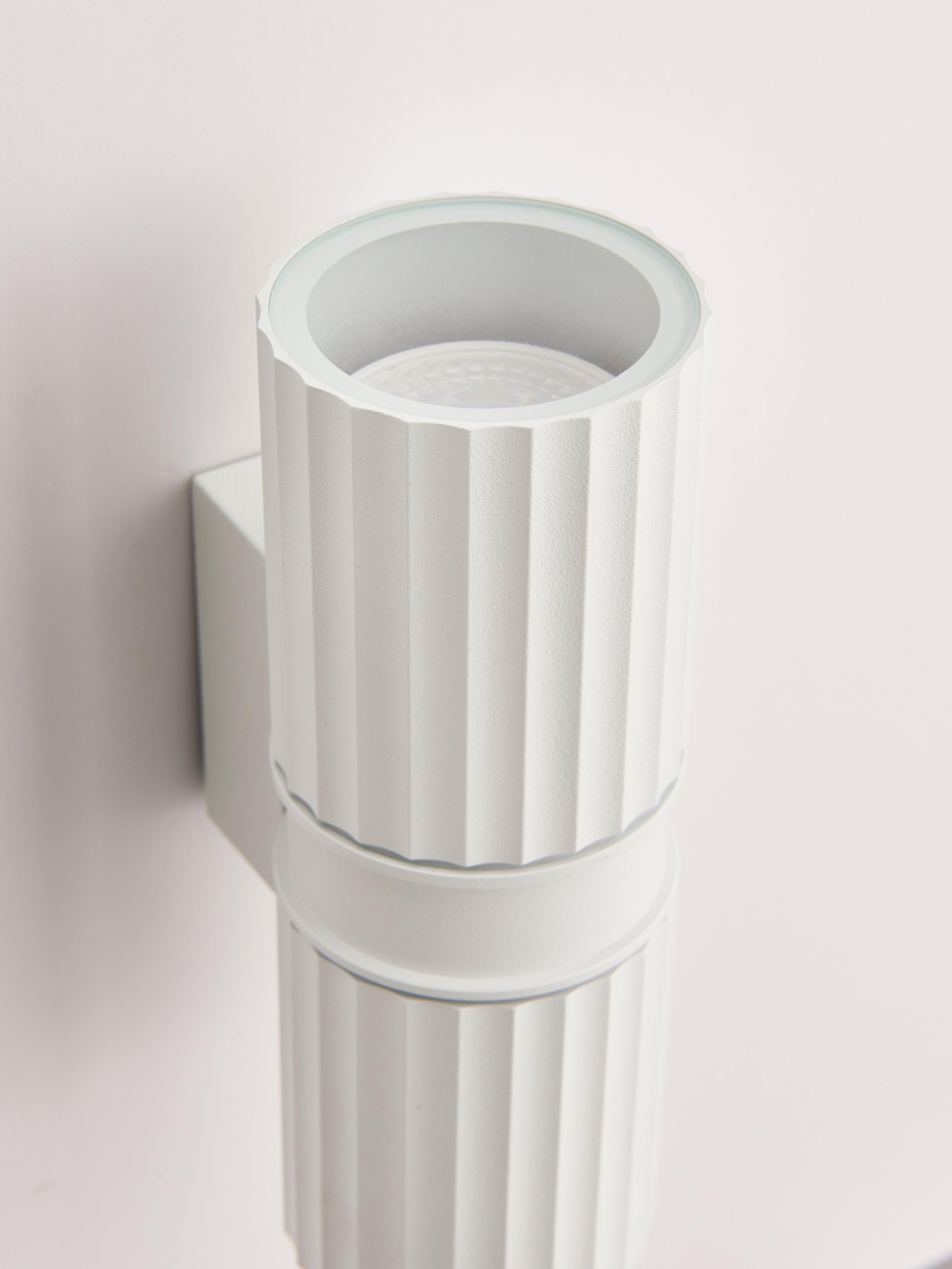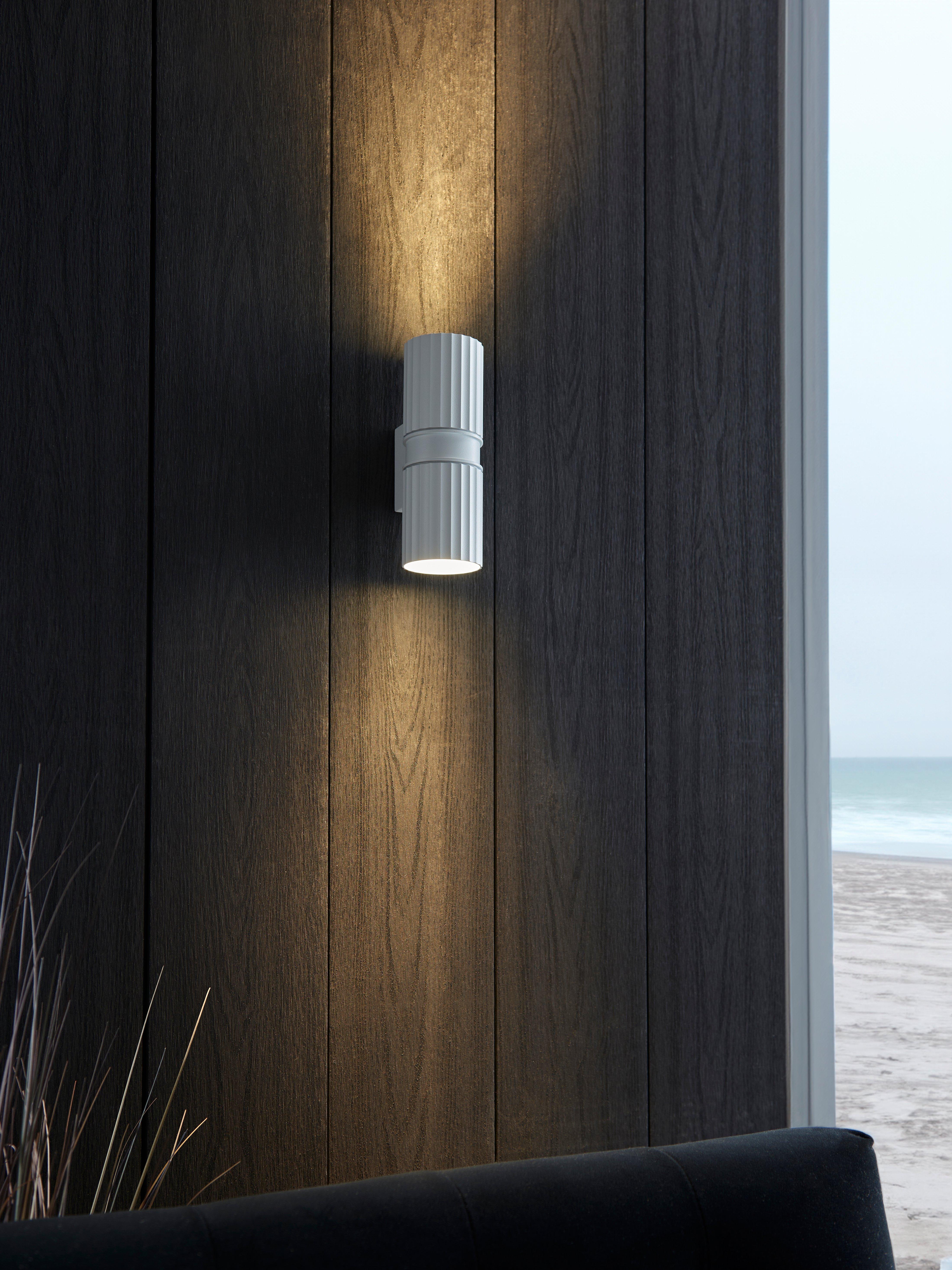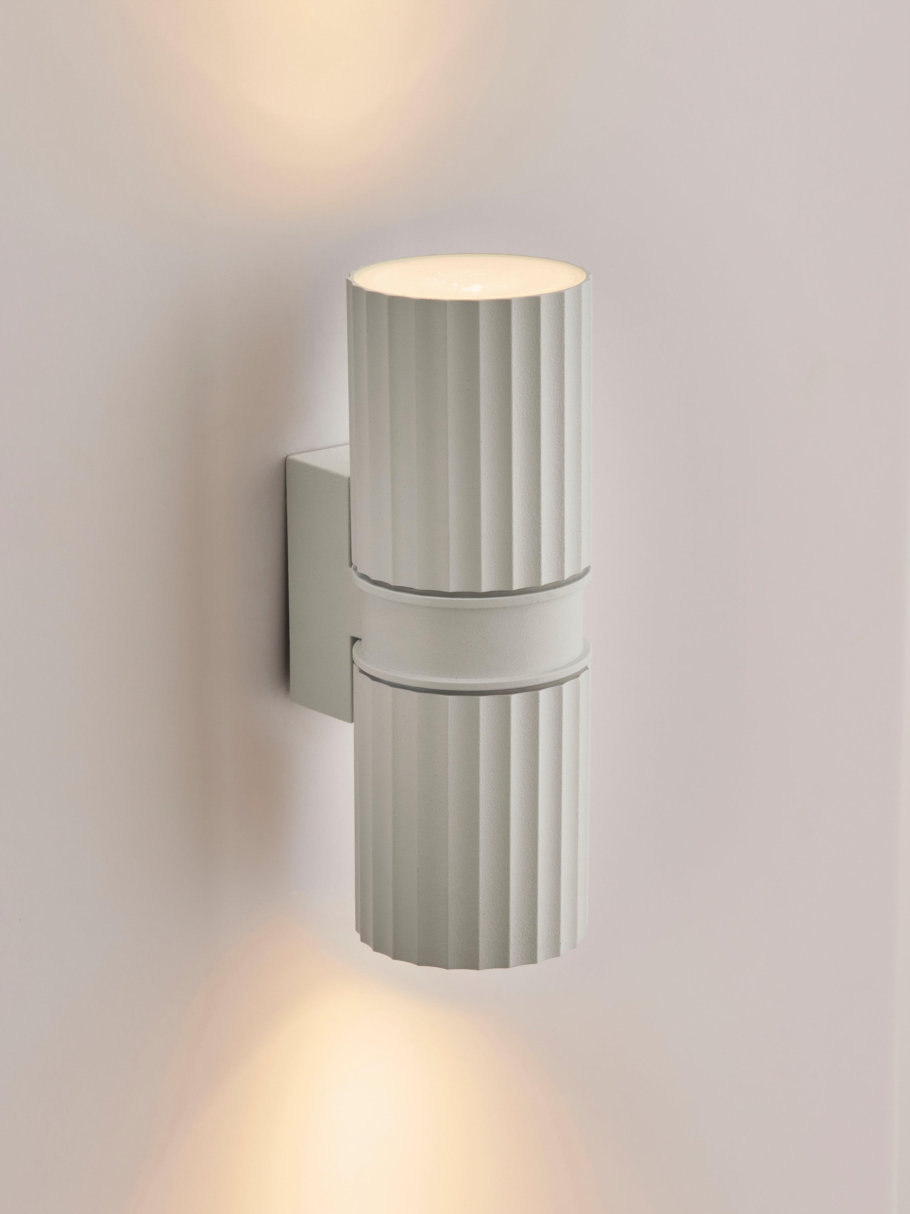 Sleek and sophisticated, the Carlo outdoor wall light provides both upward and downward illumination, casting a captivating effect on your home's exterior. This modern and textured fixture is ideal for enhancing porches, garages or other outdoor facias. It has an IP44 rating, making it suitable for outdoor use.