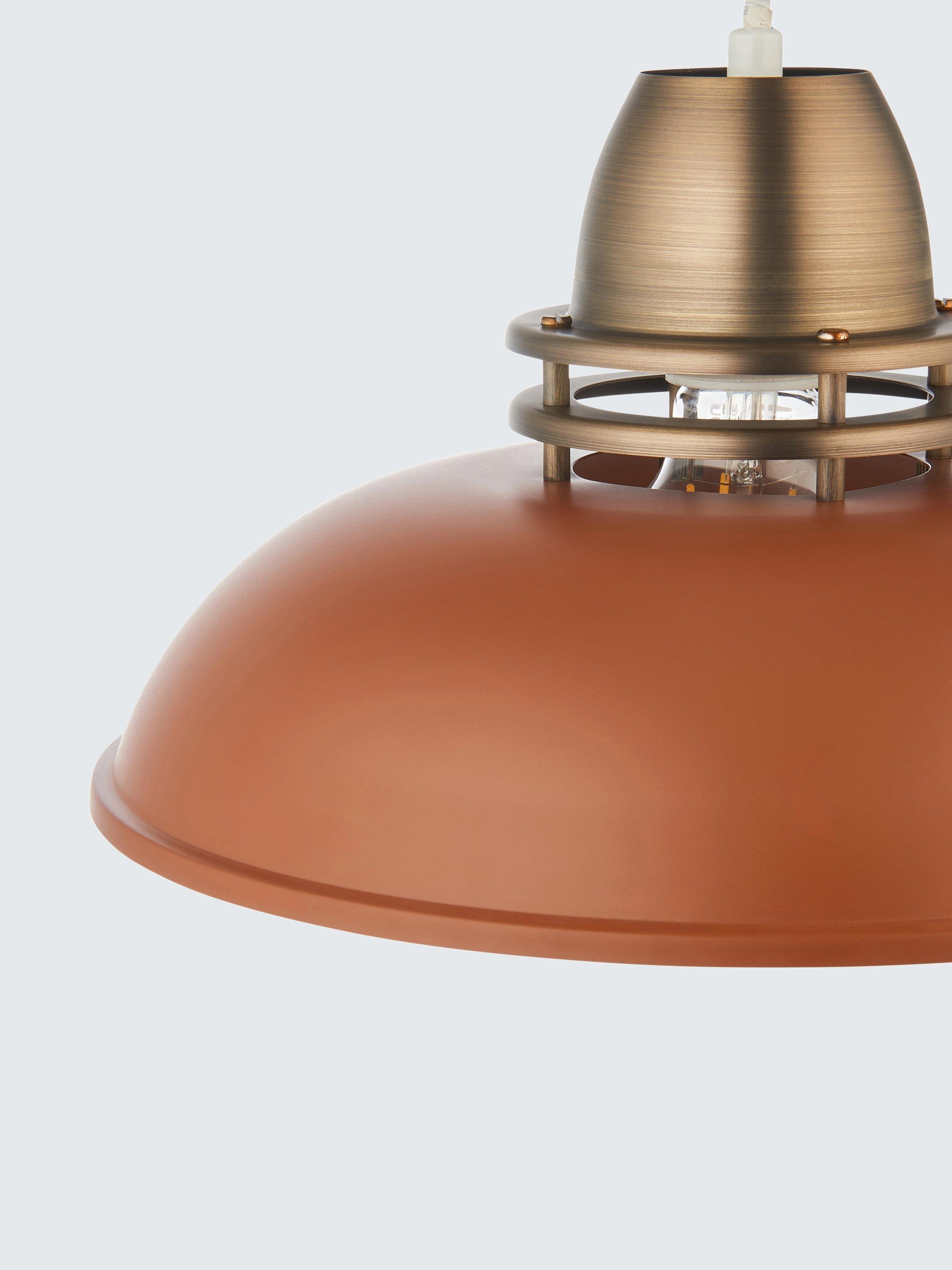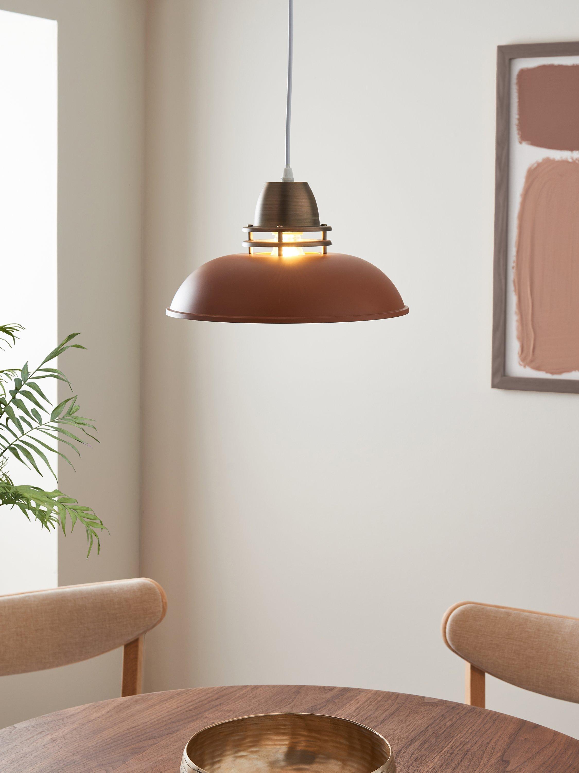 This ceiling shade is made from sturdy steel and simply attaches to your existing ceiling fitting for an instant room refresh. Available with a painted, metallic or antique finish, its narrow, domed shape takes its cues from industrial-inspired design and its cap allows light to spill from the top. Plus, thanks to a wide brim, it spreads a wide wash of light.