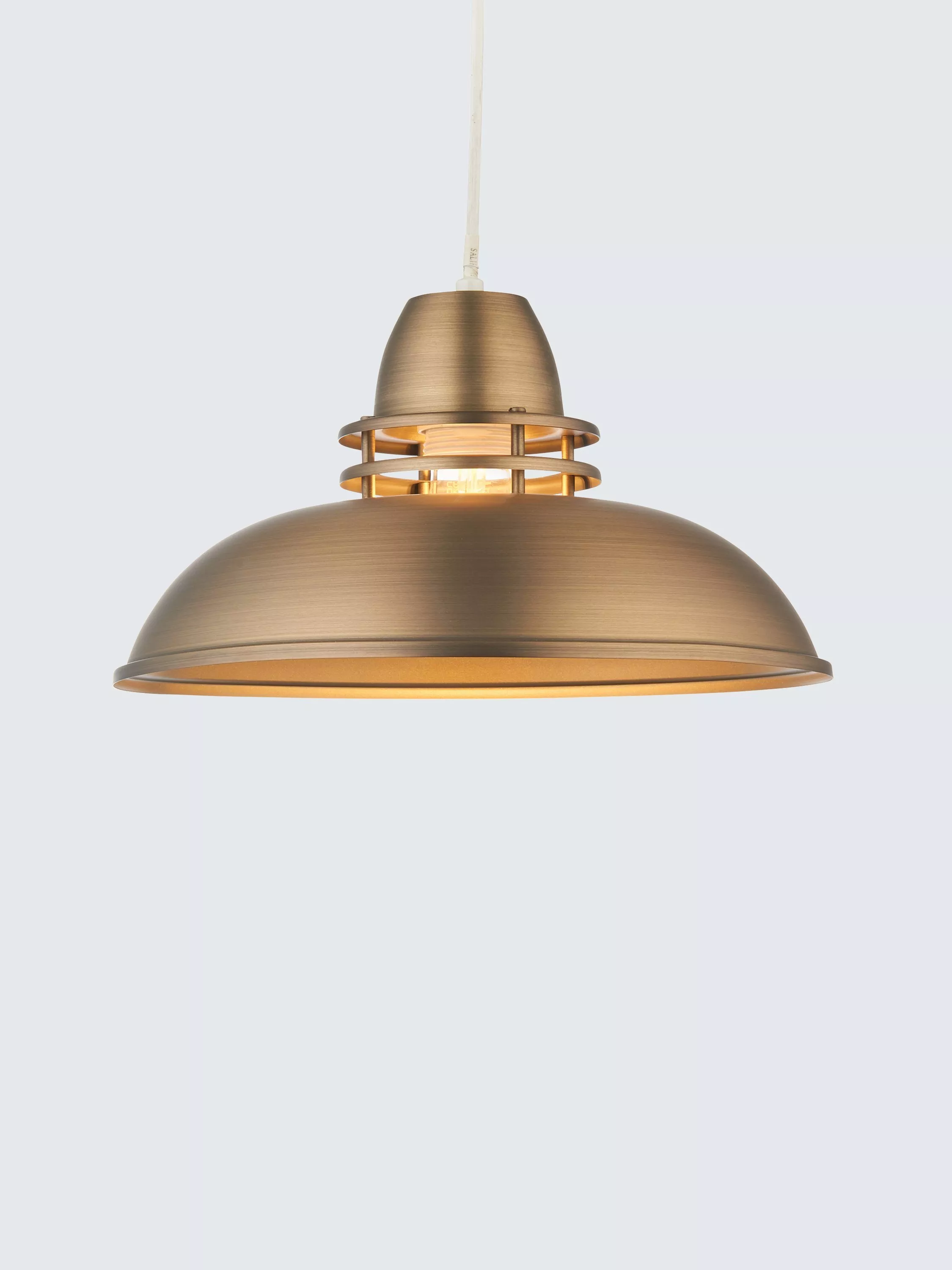 This ceiling shade is made from sturdy steel and simply attaches to your existing ceiling fitting for an instant room refresh. Available with a painted, metallic or antique finish, its narrow, domed shape takes its cues from industrial-inspired design and its cap allows light to spill from the top. Plus, thanks to a wide brim, it spreads a wide wash of light.