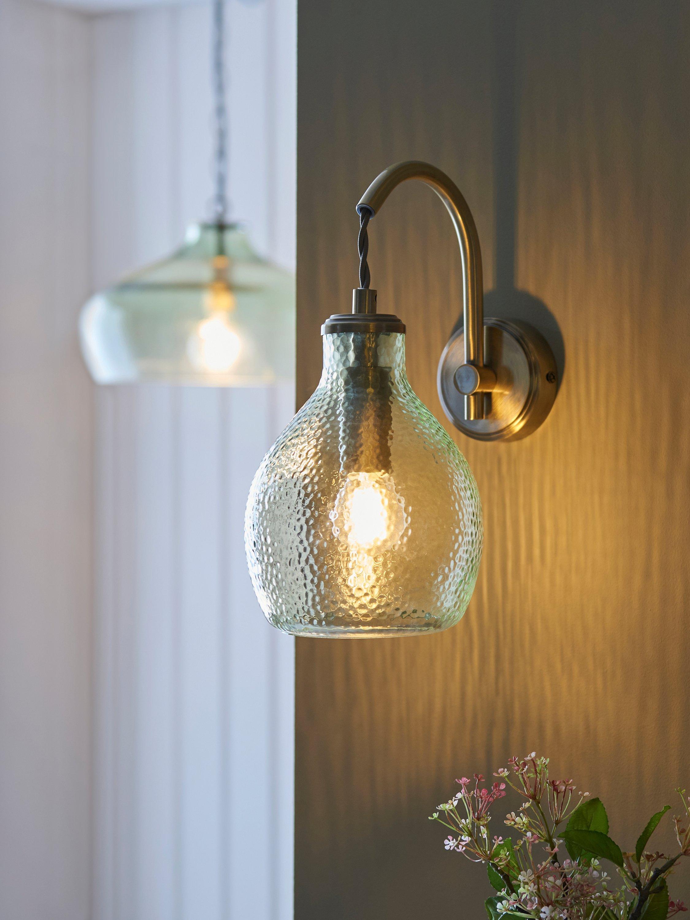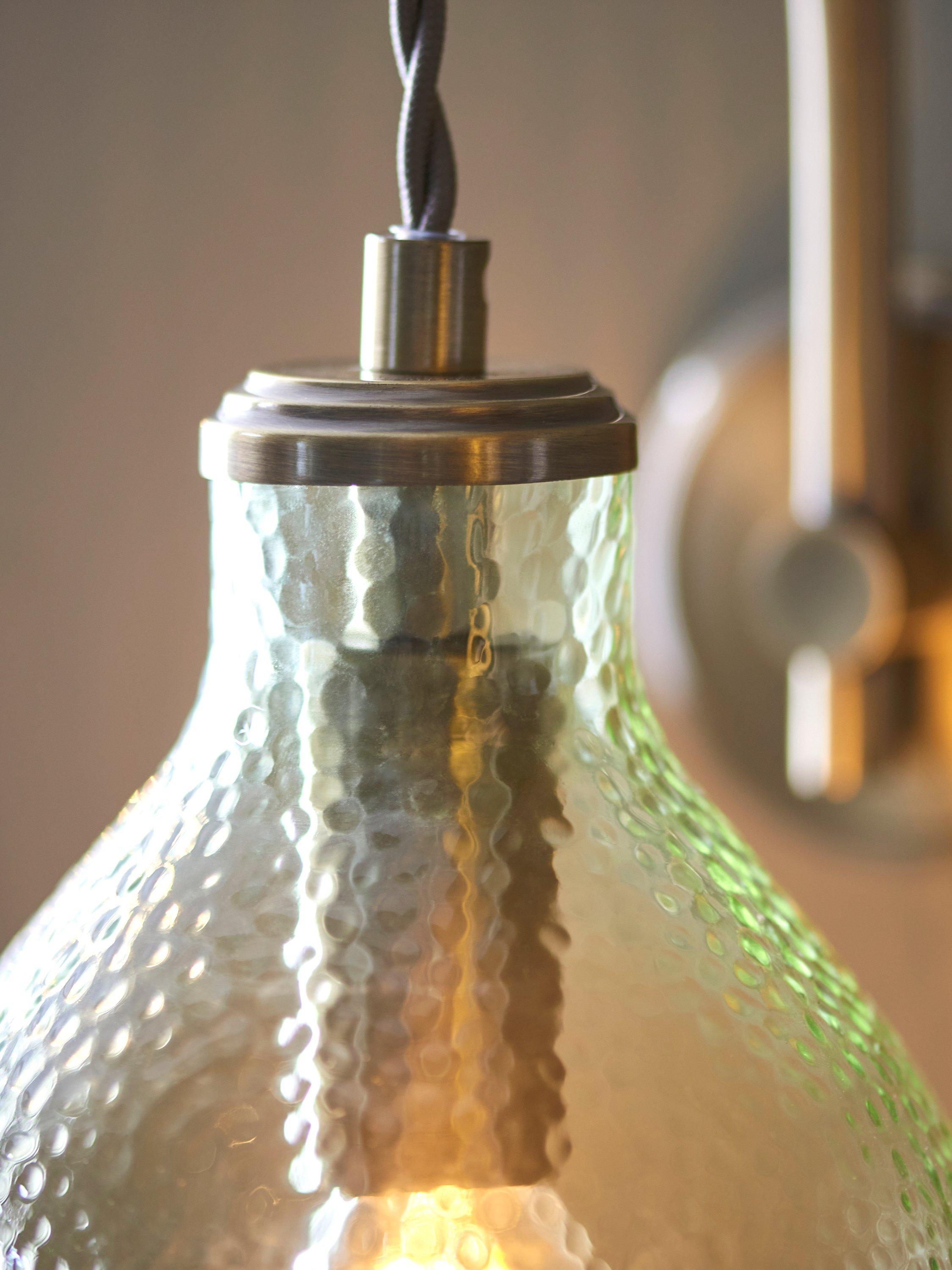 Softly textured glass creates a unique light effect and the hanging shade is an eye-catching feature for any home. Complete with heritage style and a twisted fabric cord.