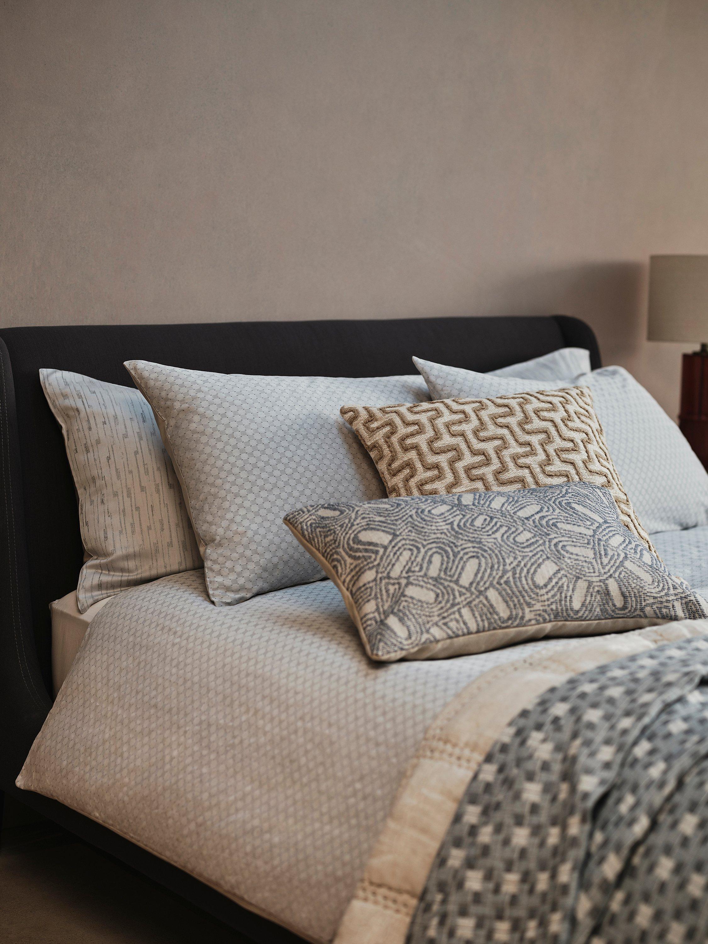 A geometric loop design snakes its way across this cushion. Woven from a mix of fibres, including linen, it will add subtle texture to a plain, fabric-covered sofa.