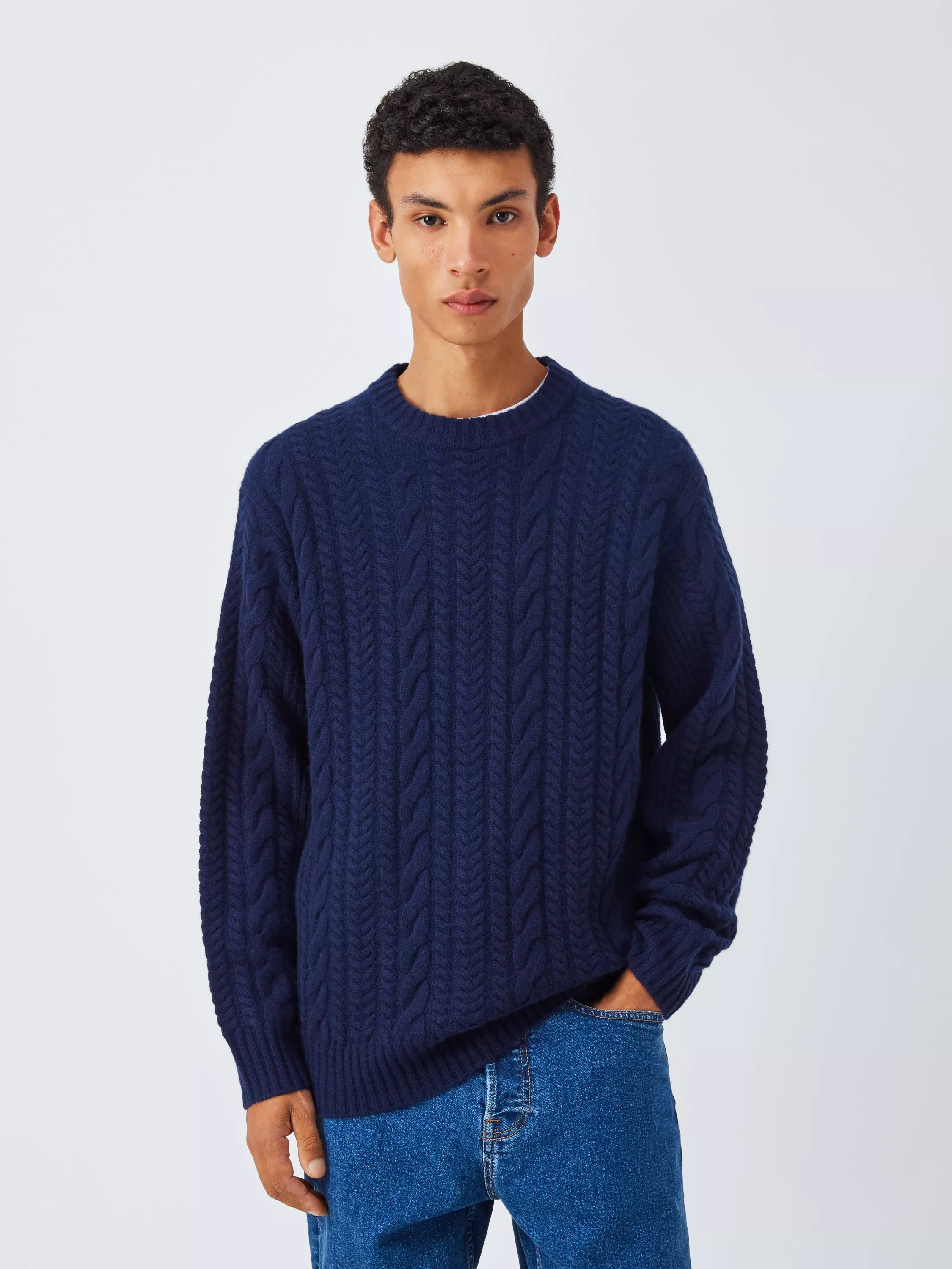 A classic cable knit jumper made from soft and luxurious cashmere with ribbed knit detailing at the crew neckline, hem and cuffs.
