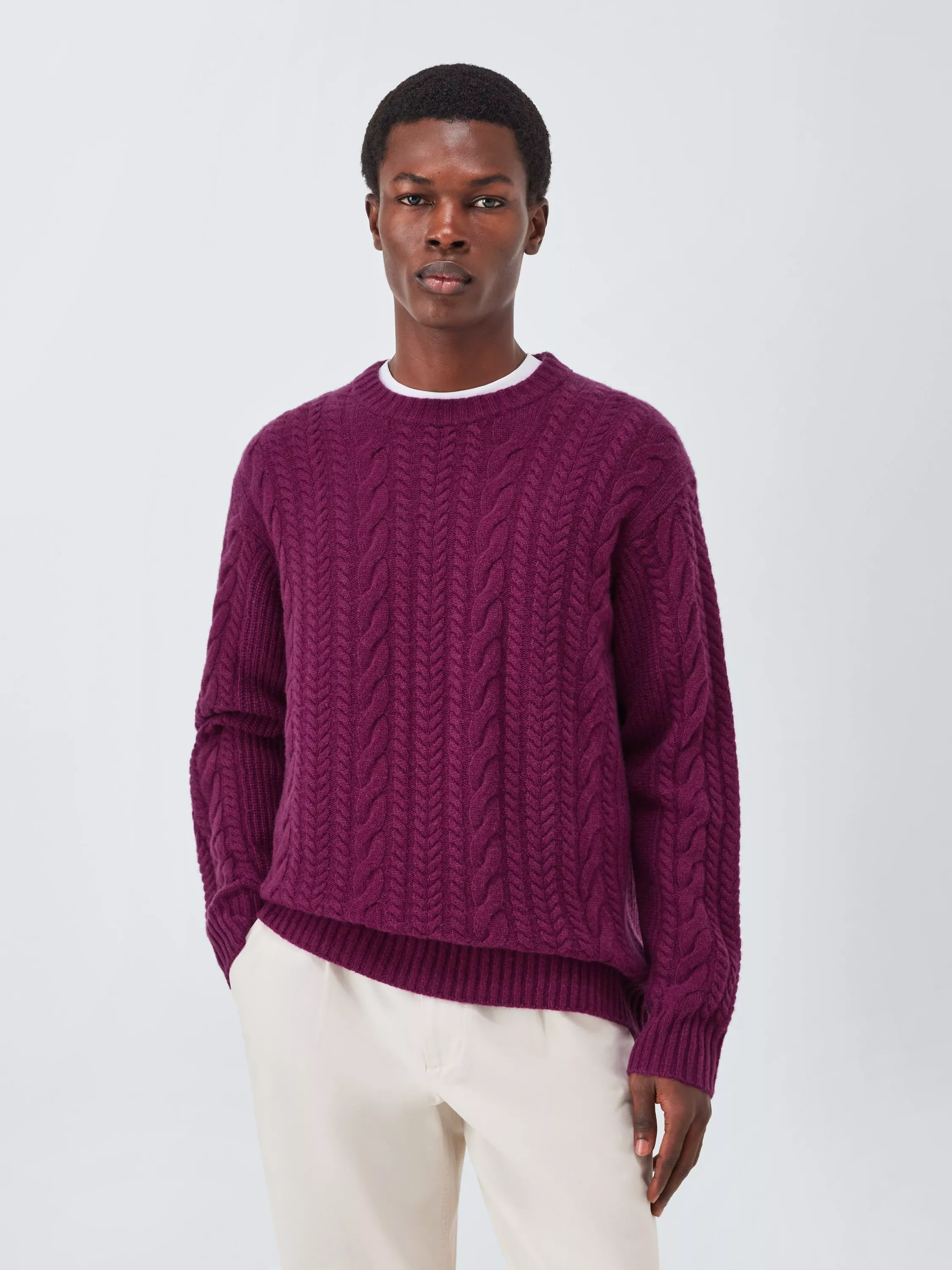 A classic cable knit jumper made from soft and luxurious cashmere with ribbed knit detailing at the crew neckline, hem and cuffs.