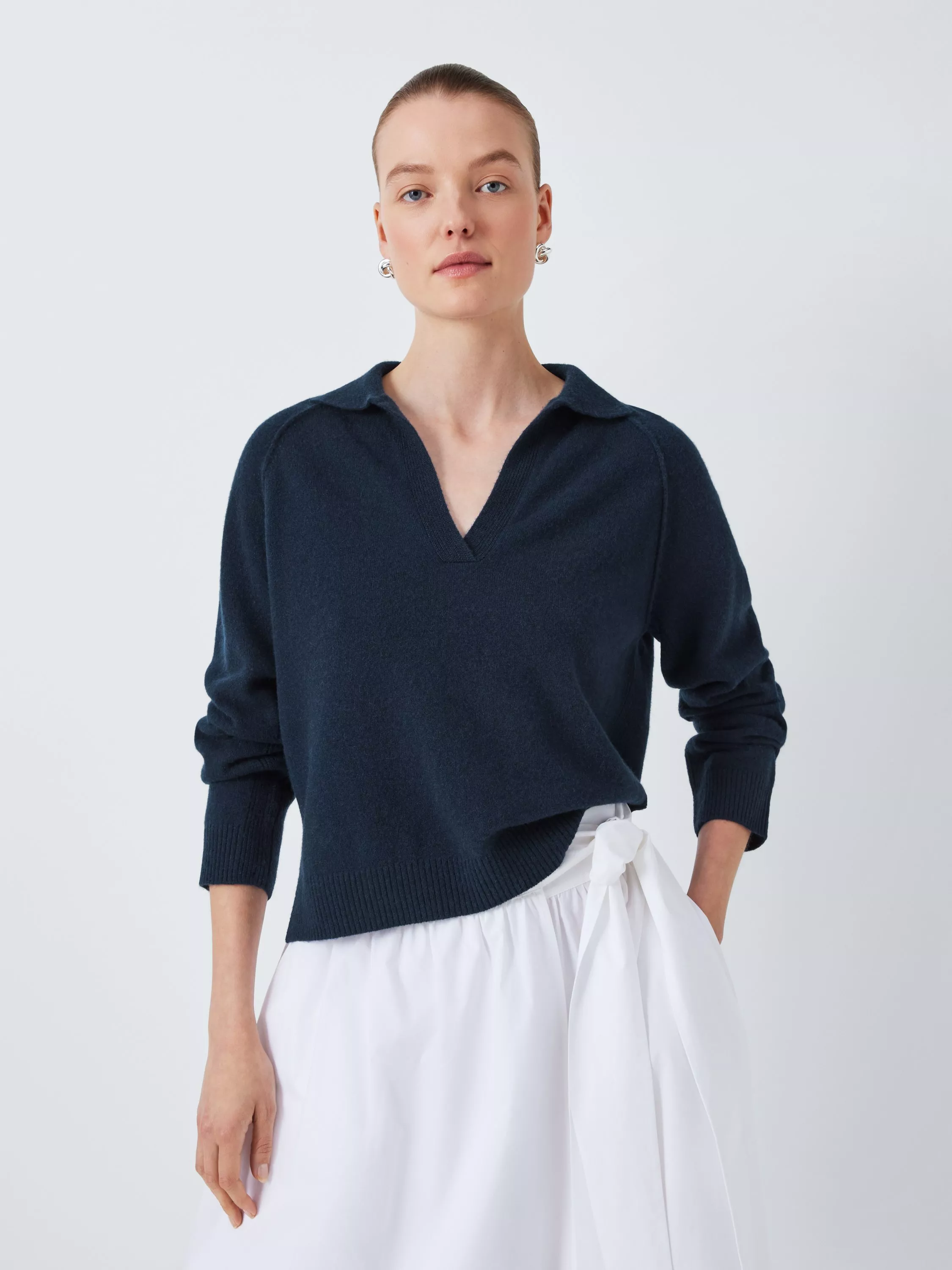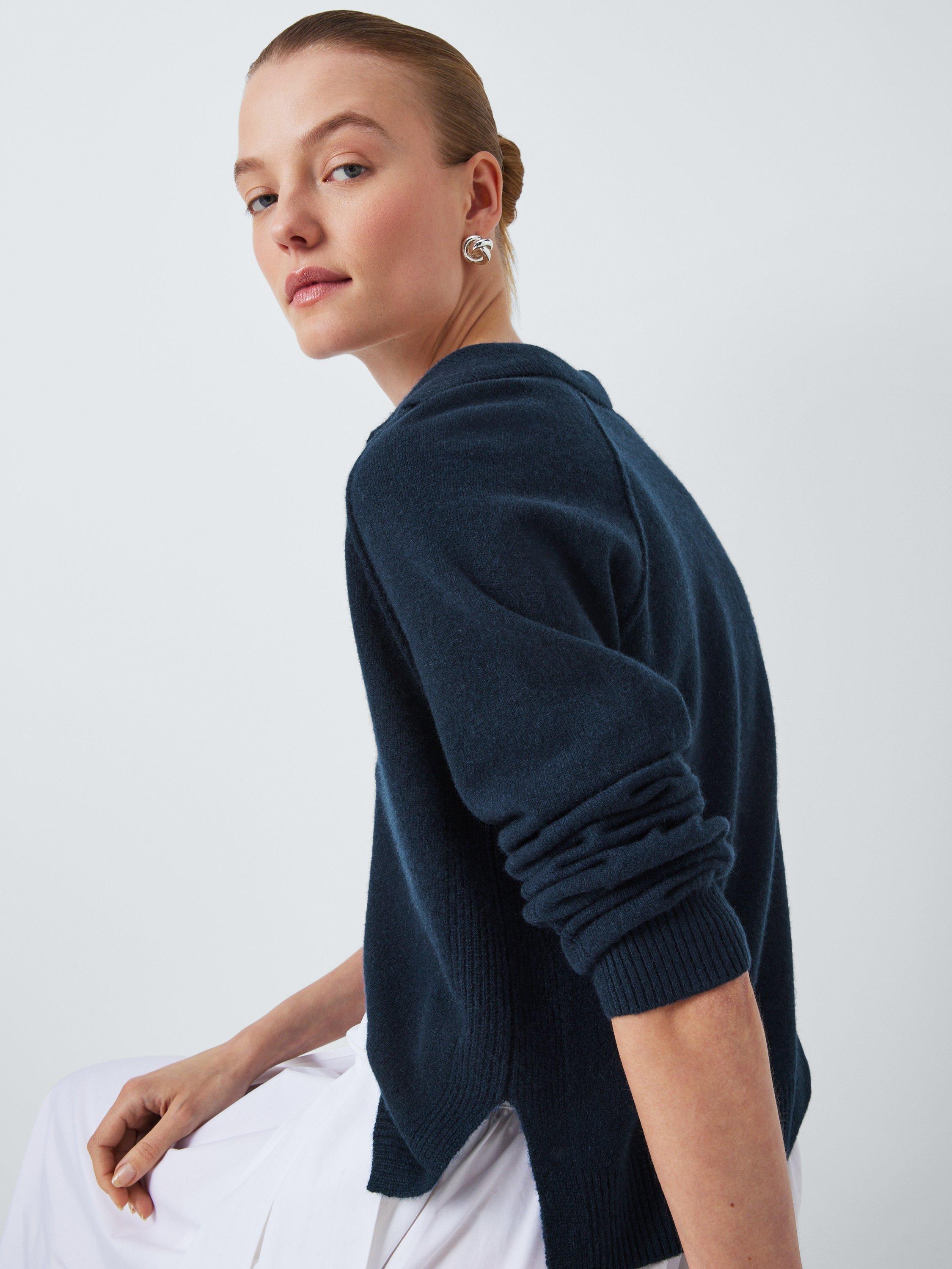 A luxe layer for your wardrobe. Made of pure cashmere for warmth and softness with wide ribbing on the cuffs, hem, v-neckline and collar.