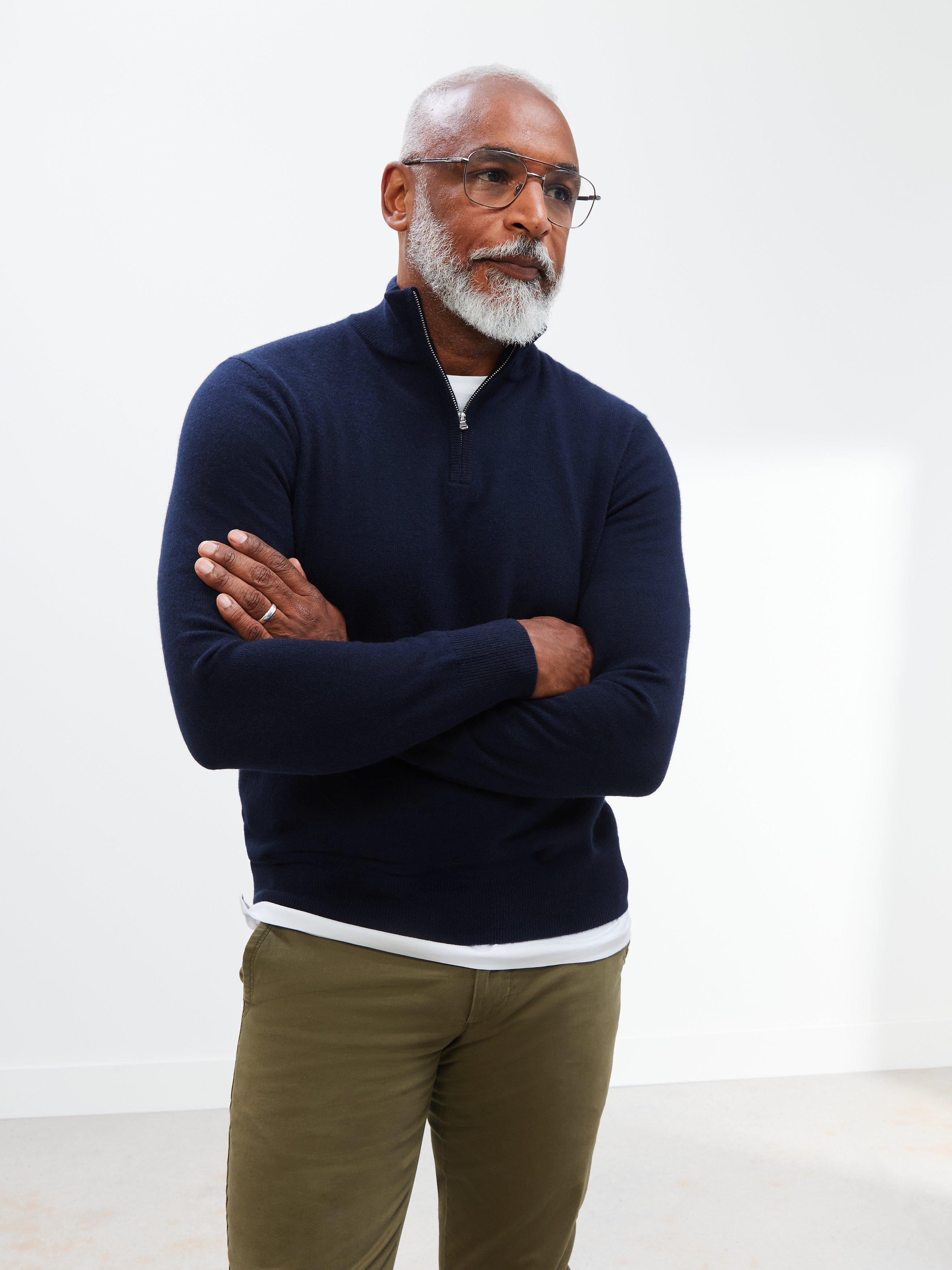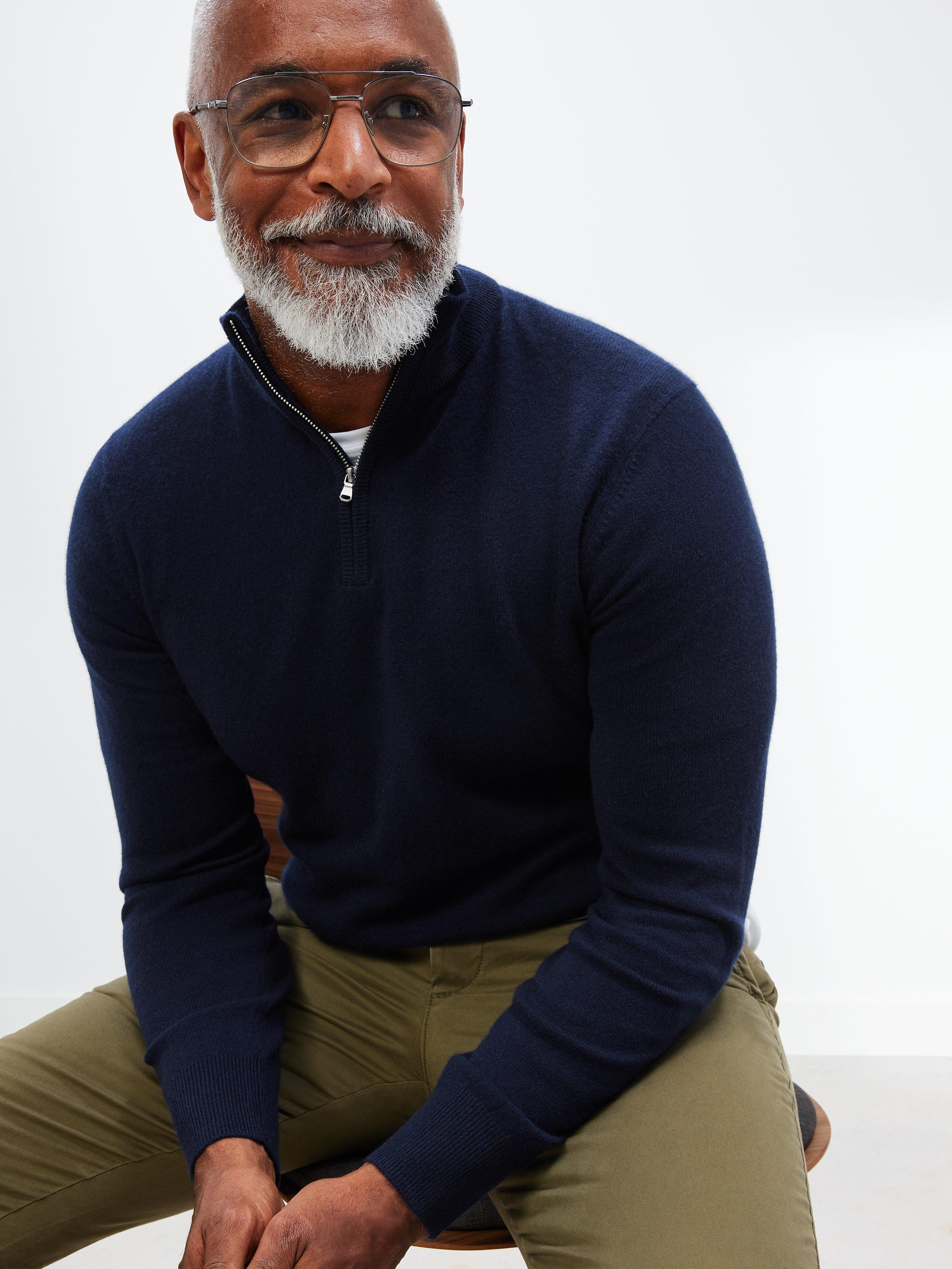 A luxe take on a comfortable casual style, this knit is detailed with a half-zip front and will combine neatly with anything from joggers to denim.