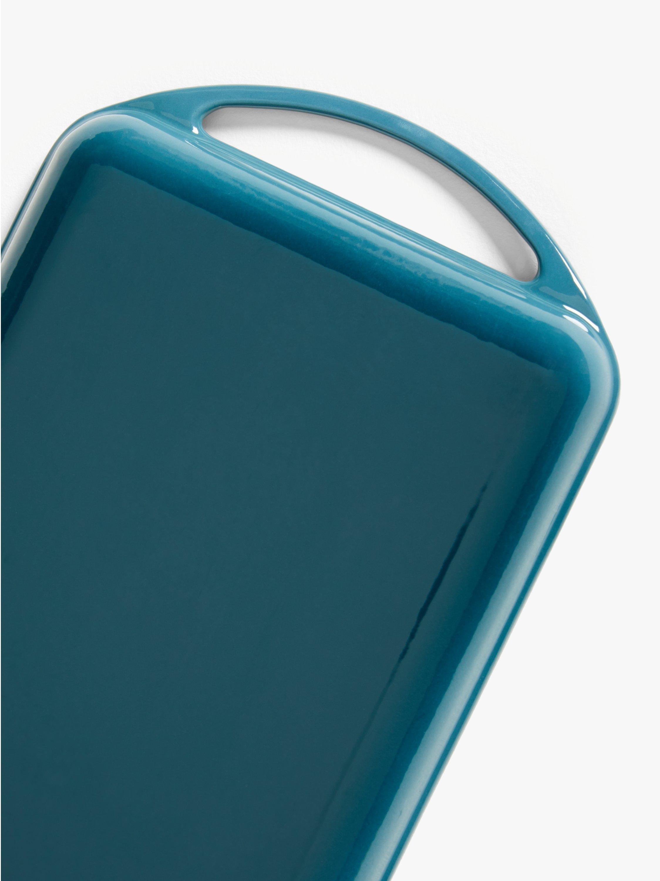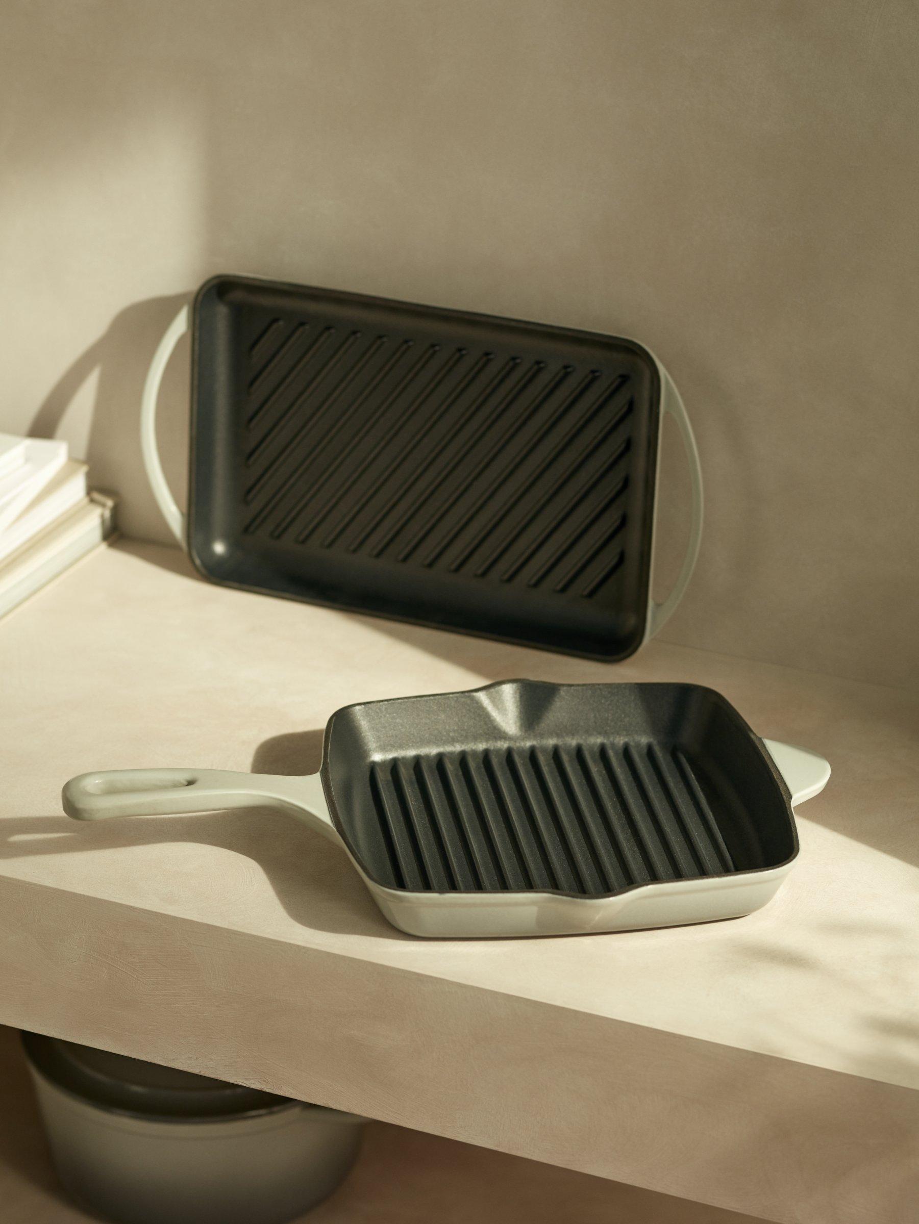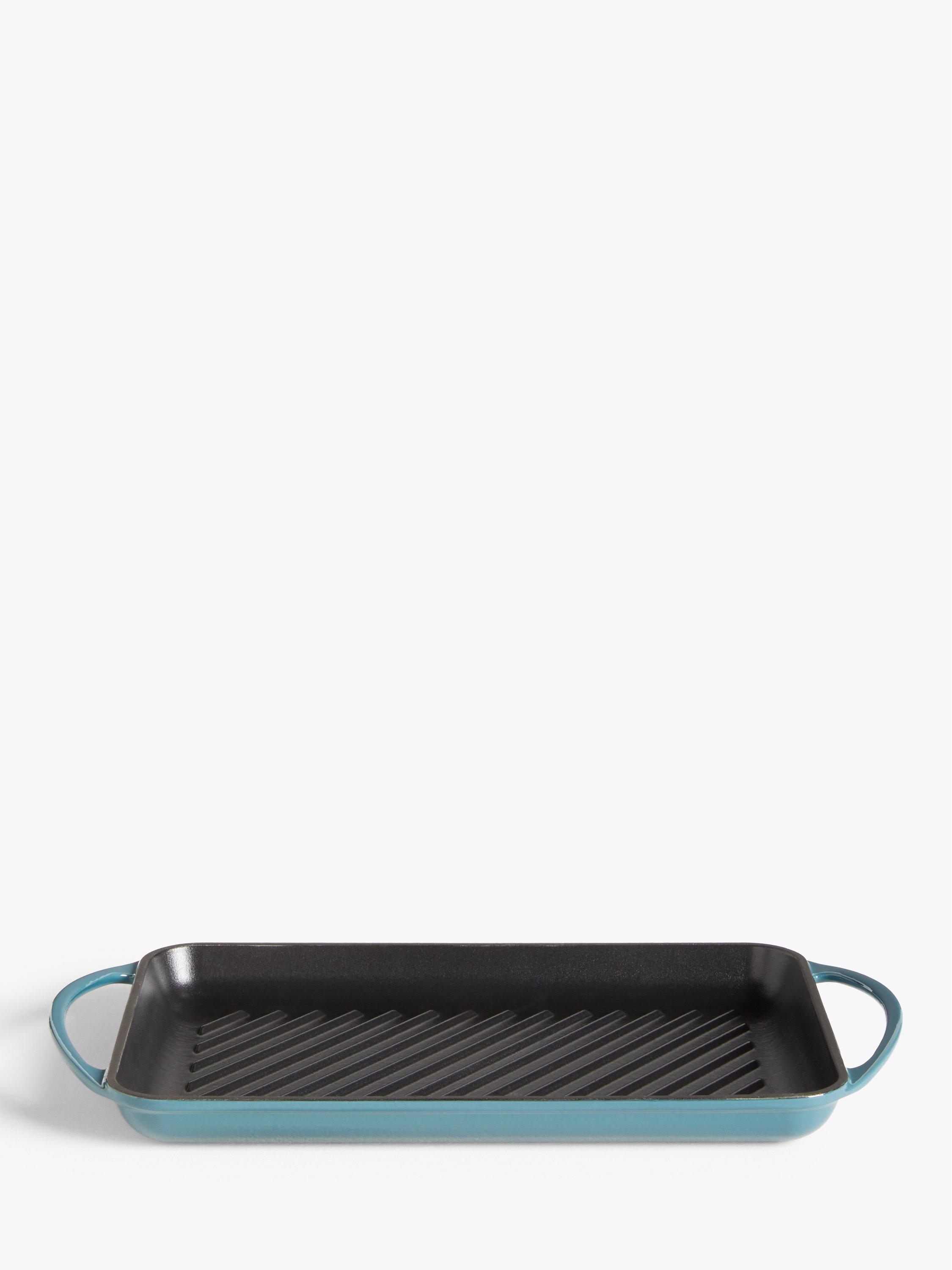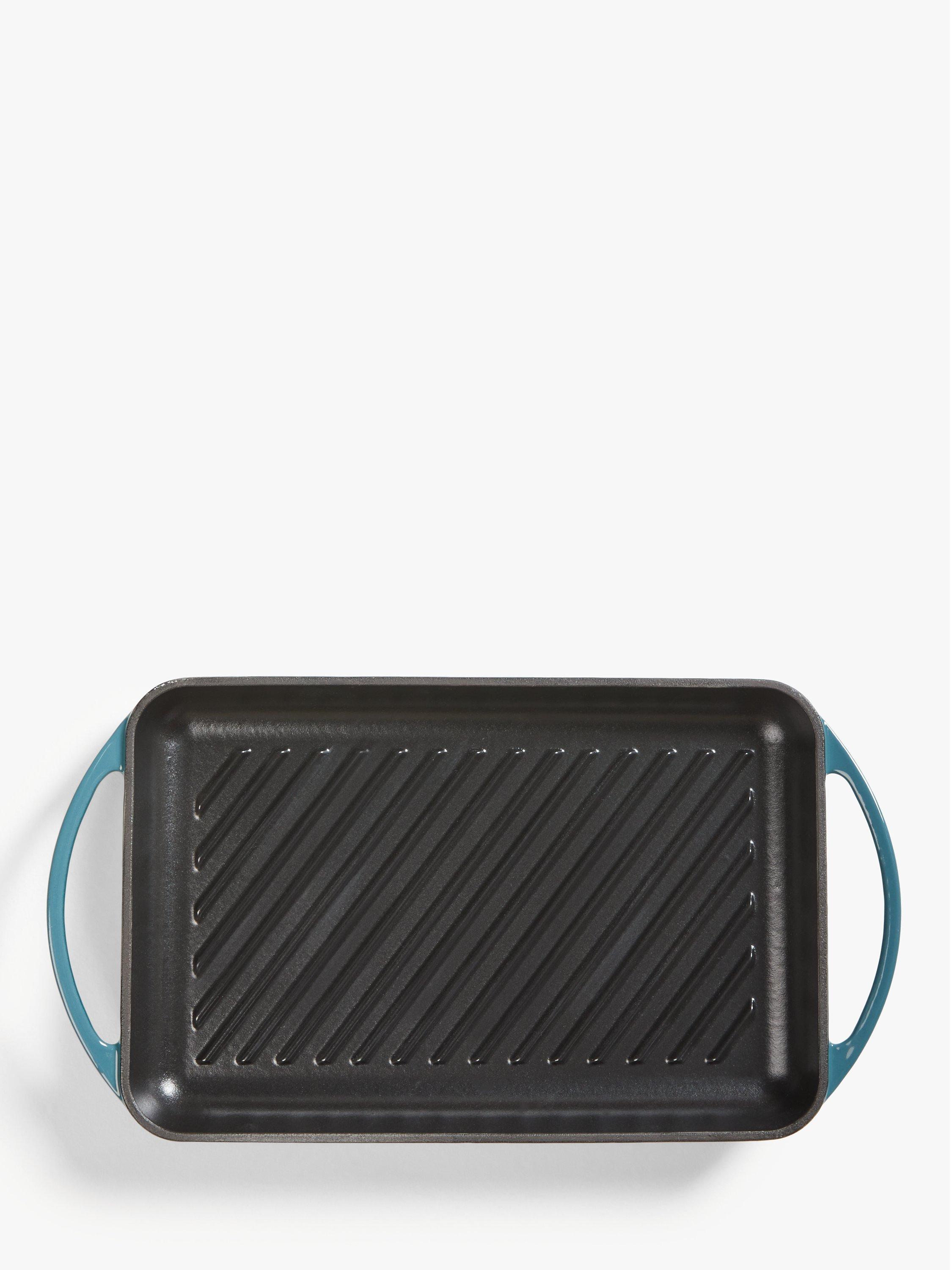 This rectangular grill pan has a smooth, porcelain enamel exterior that's durable, keeps its colour and is easy to clean. Grooves sear meat, fish and vegetables for barbecue-style grilling and they drain off liquids and fat for healthier cooking.