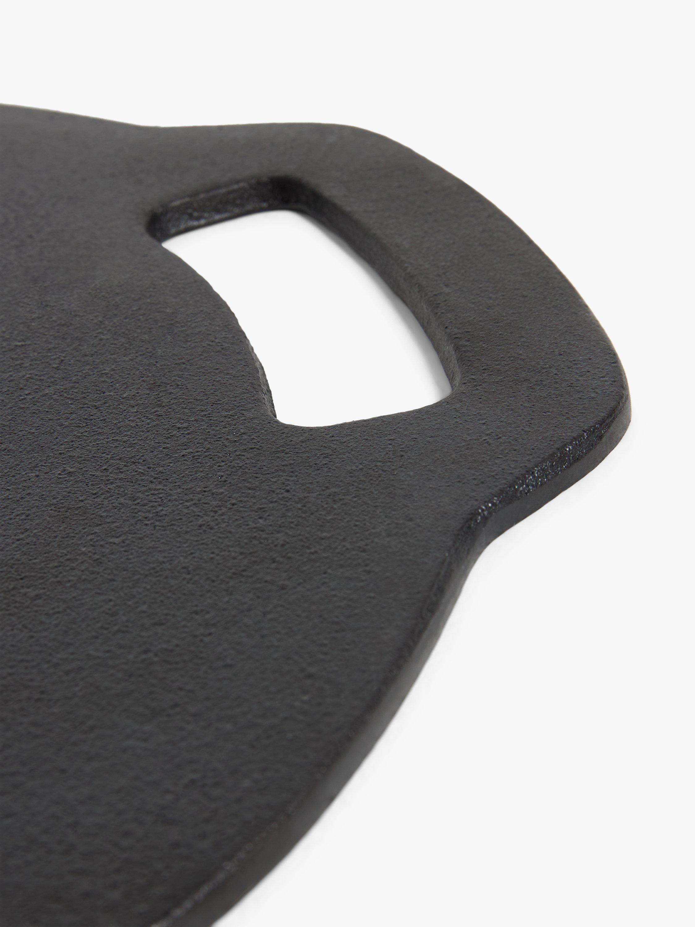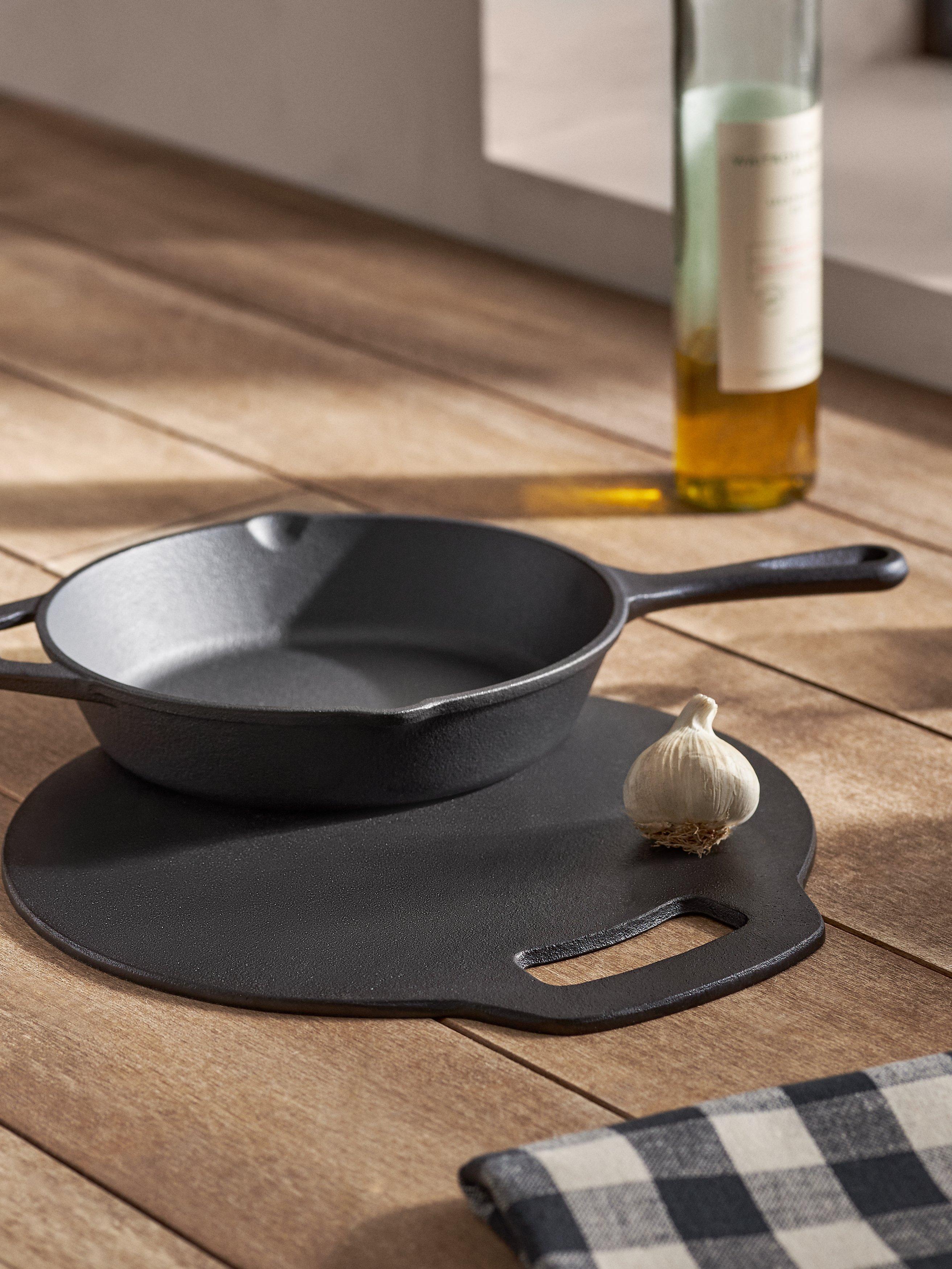 - Robust, heat-retaining round cast iron baking stone