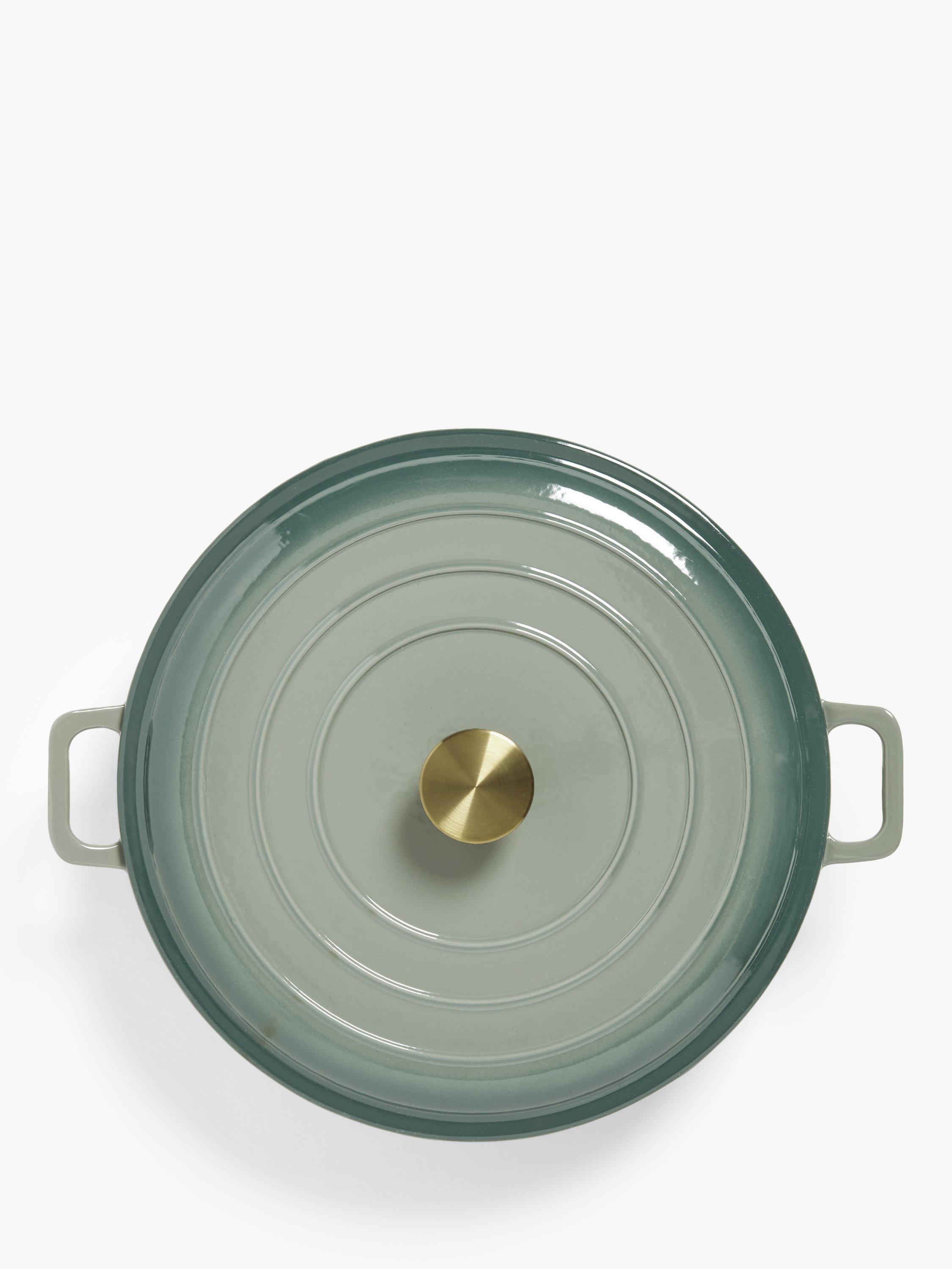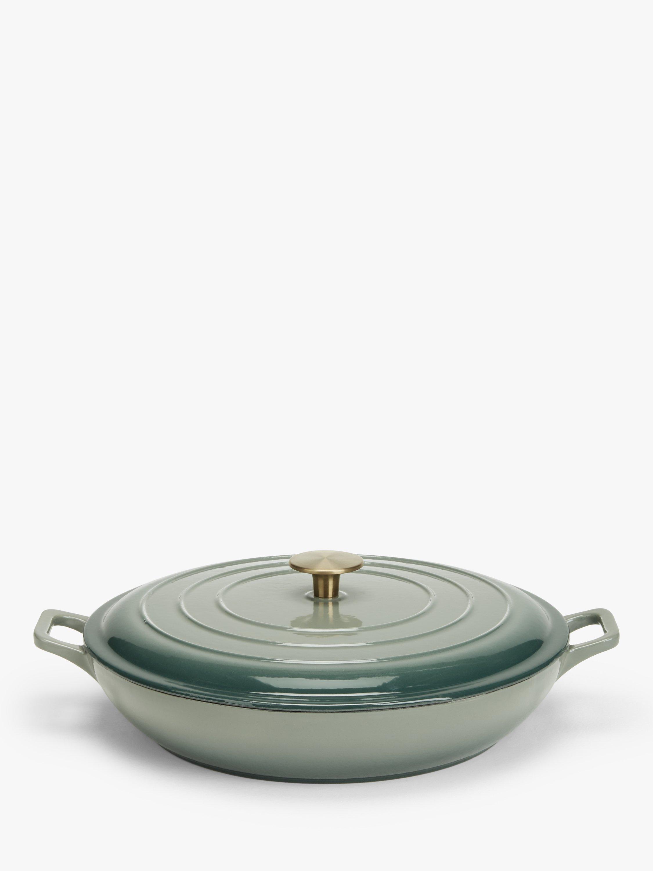 John LewisCast Iron Shallow Casserole, 31cm, Ombre Green