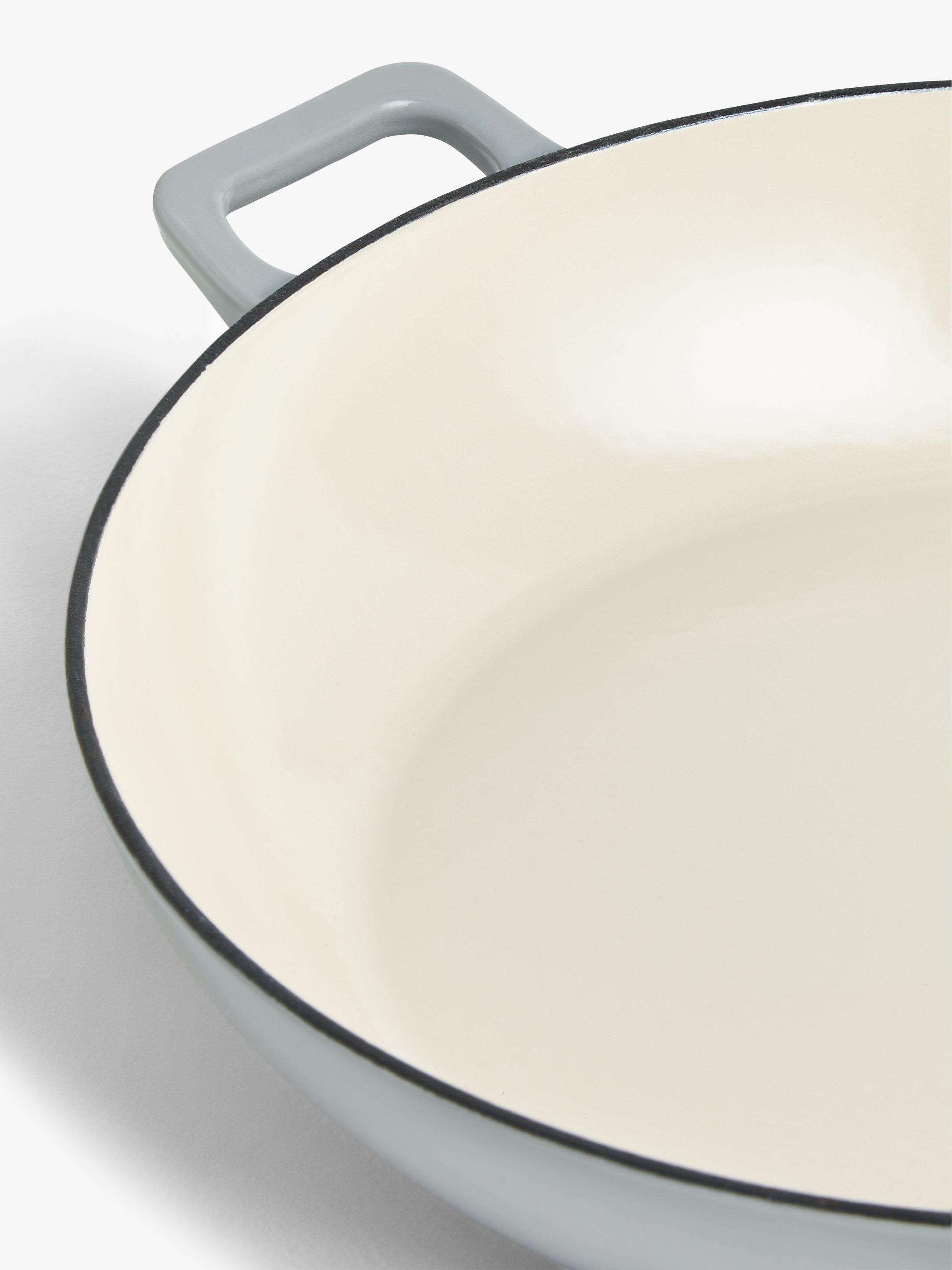 The smooth, porcelain enamel exterior is durable, keeps its colour and is easy to clean. The neatly fitting domed lid has moisture-collecting nodules on the inside to keep food succulent and better tasting. Turn off the heat and close the lid to steam-cook rice, after boiling away the water, for fluffier results. With just a little water or oil added to the casserole pot, when the lid is on, it can steam vegetables or sweat onions to retain flavour and improve your cooking. The shallow casserole shape particularly suits fish and lamb dishes, making paella and serving it in all style at the table.