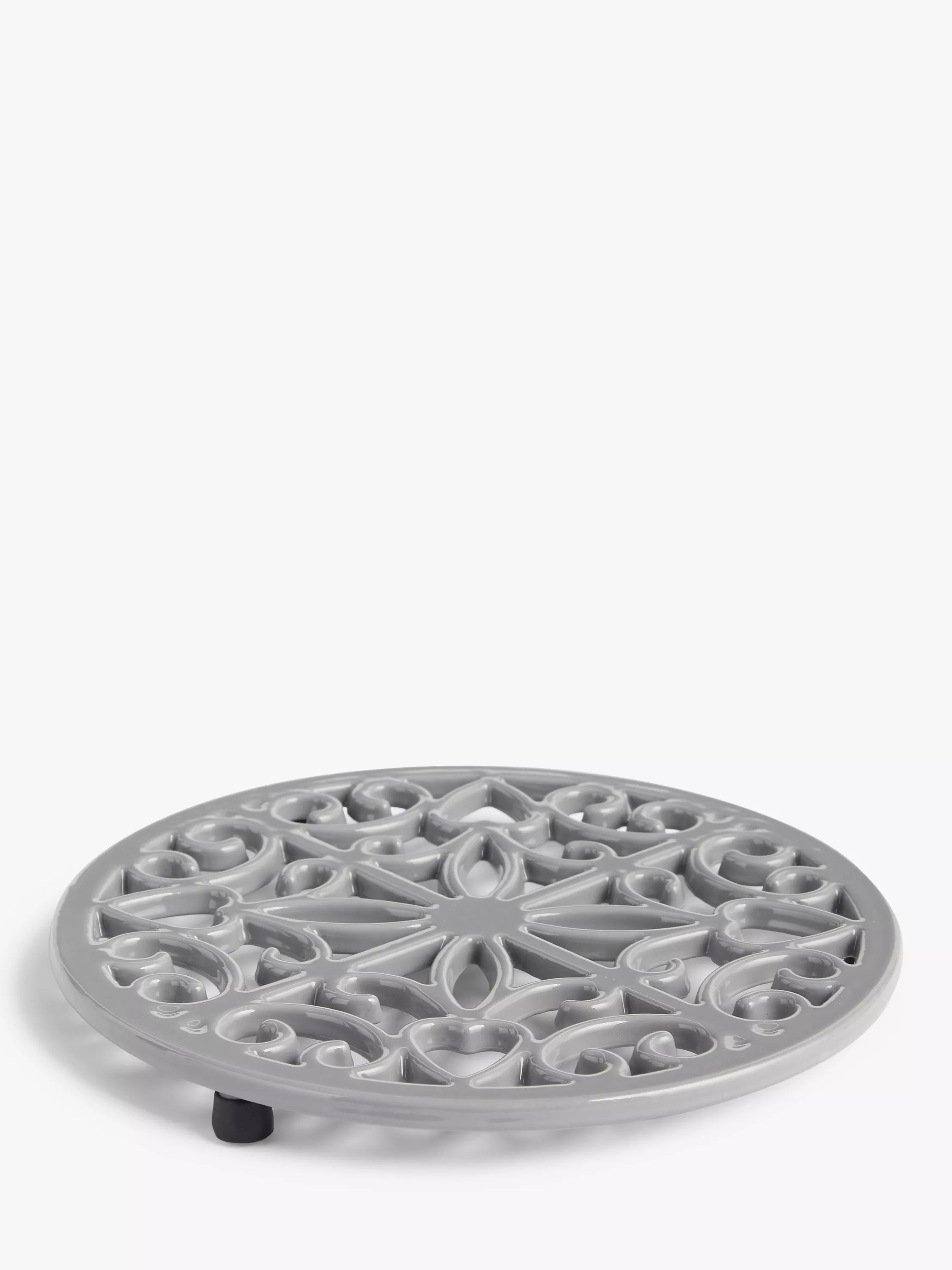 Protect your table or kitchen countertop with this ornate trivet. Ideal for hot dishes straight from the hob or oven, this trivet is solid in design and made of weighty cast iron to keep it sturdy. It prevents casseroles, pots and pans from slipping and from burning surfaces. We've added rubber feet to prevent scratches and slips.