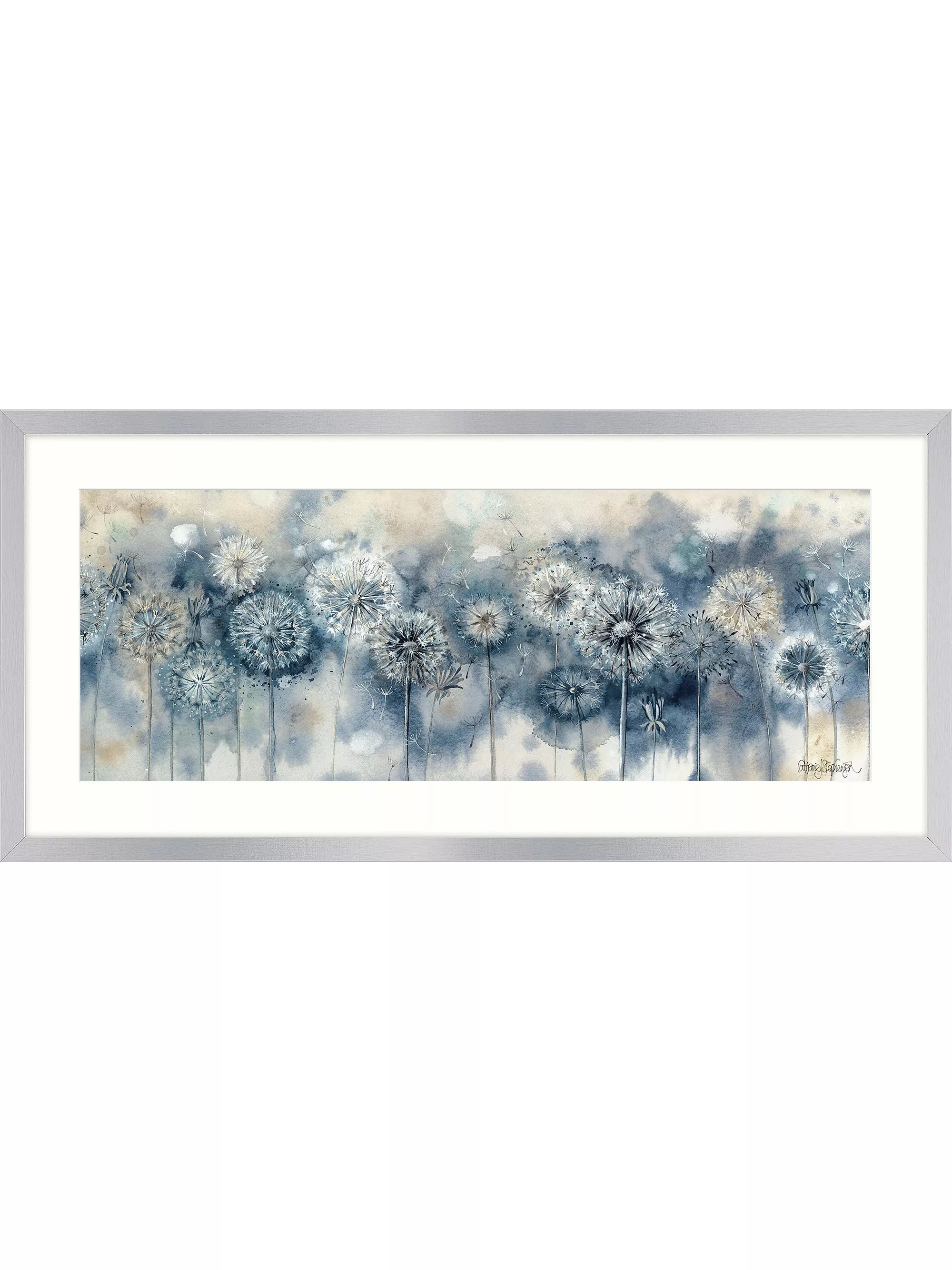 Dandelions blow in the wind in this work by Catherine Stephenson, mounted in a wood-effect frame.
