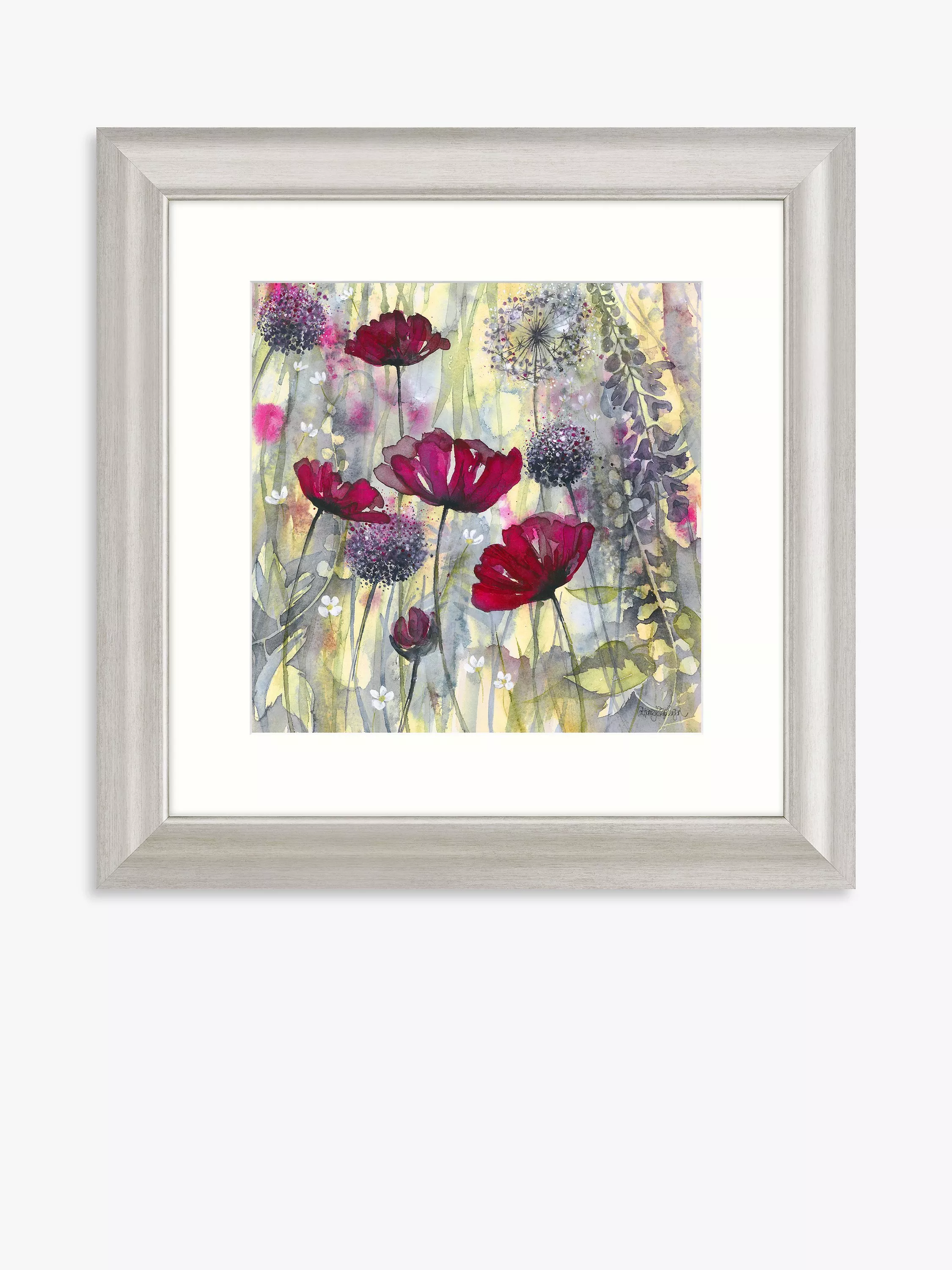 Poppies take centre stage in this watercolour image of meadow flowers by artist Catherine Stephenson, mounted in a champagne wood-effect frame. Made in the UK, this framed print is ready to hang on your wall.