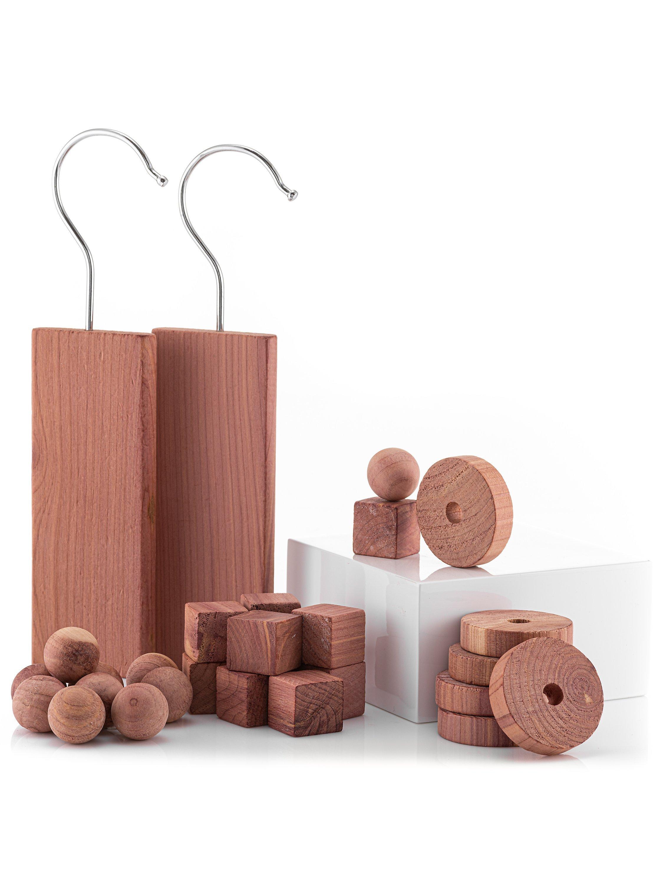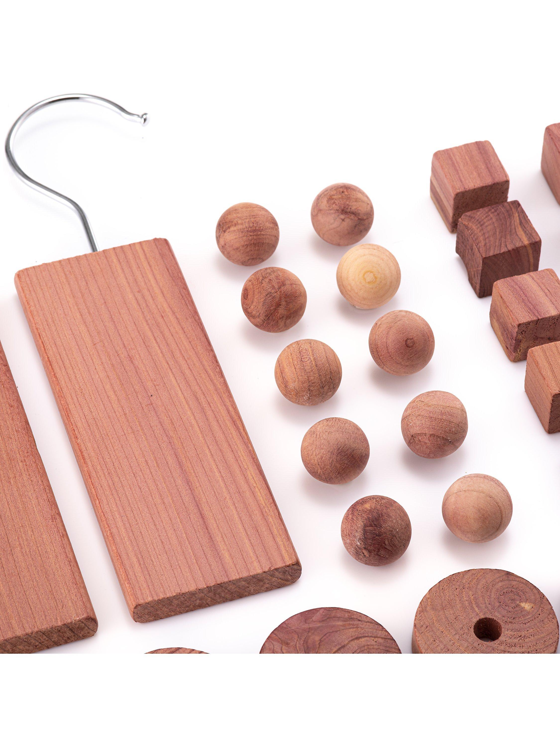 A whole variety of cedar wood drawer and wardrobe accessories, traditionally used to keep moths away.