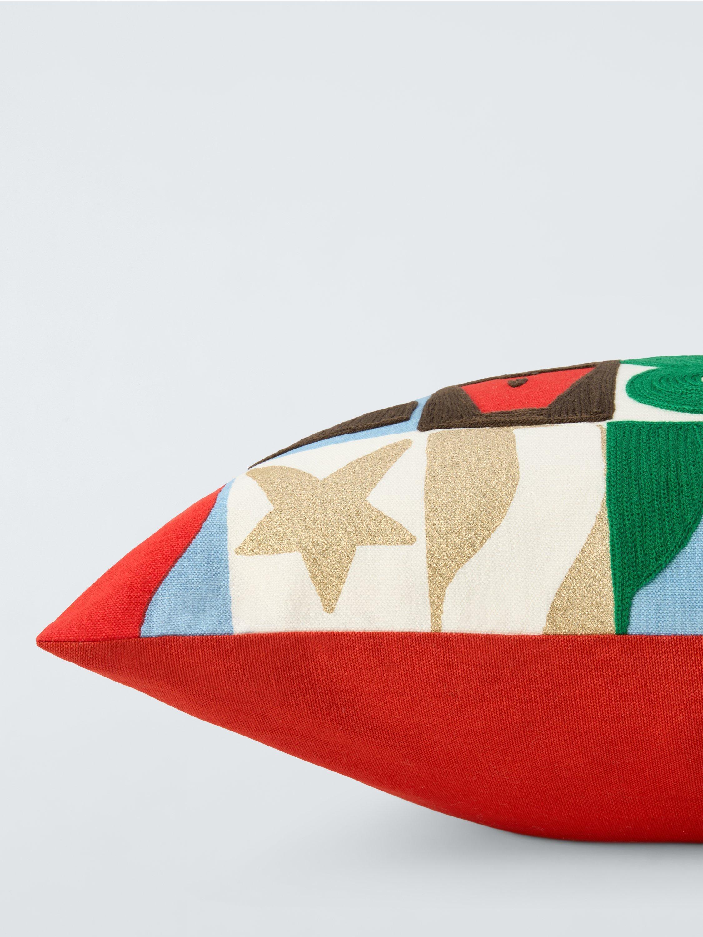 A colourful printed and embroidered graphic cushion to celebrate the season.