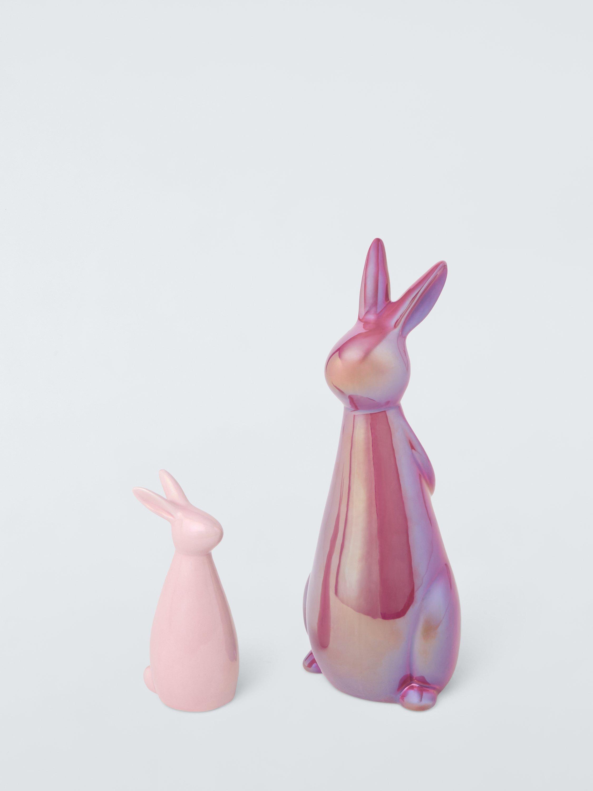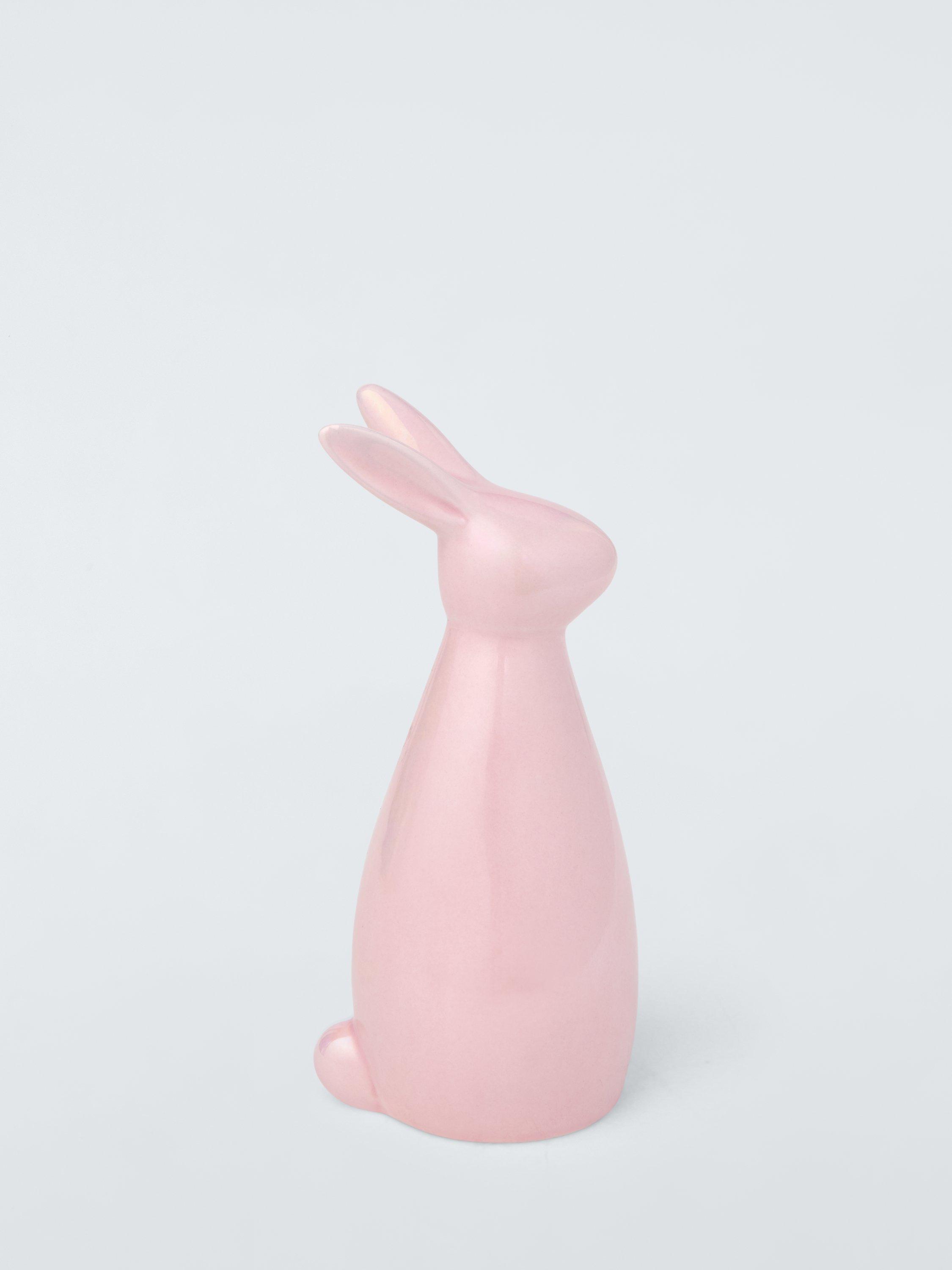 Simply-shaped, yet full of character, this glazed pink bunny makes a charming addition to an Easter display.