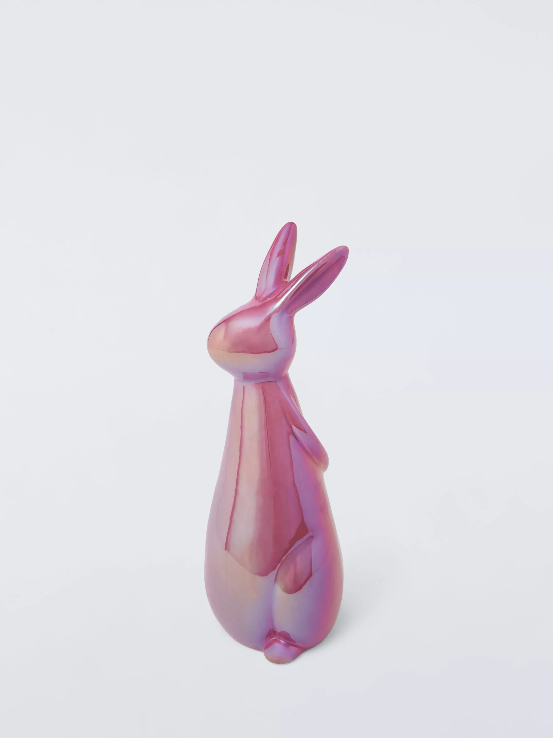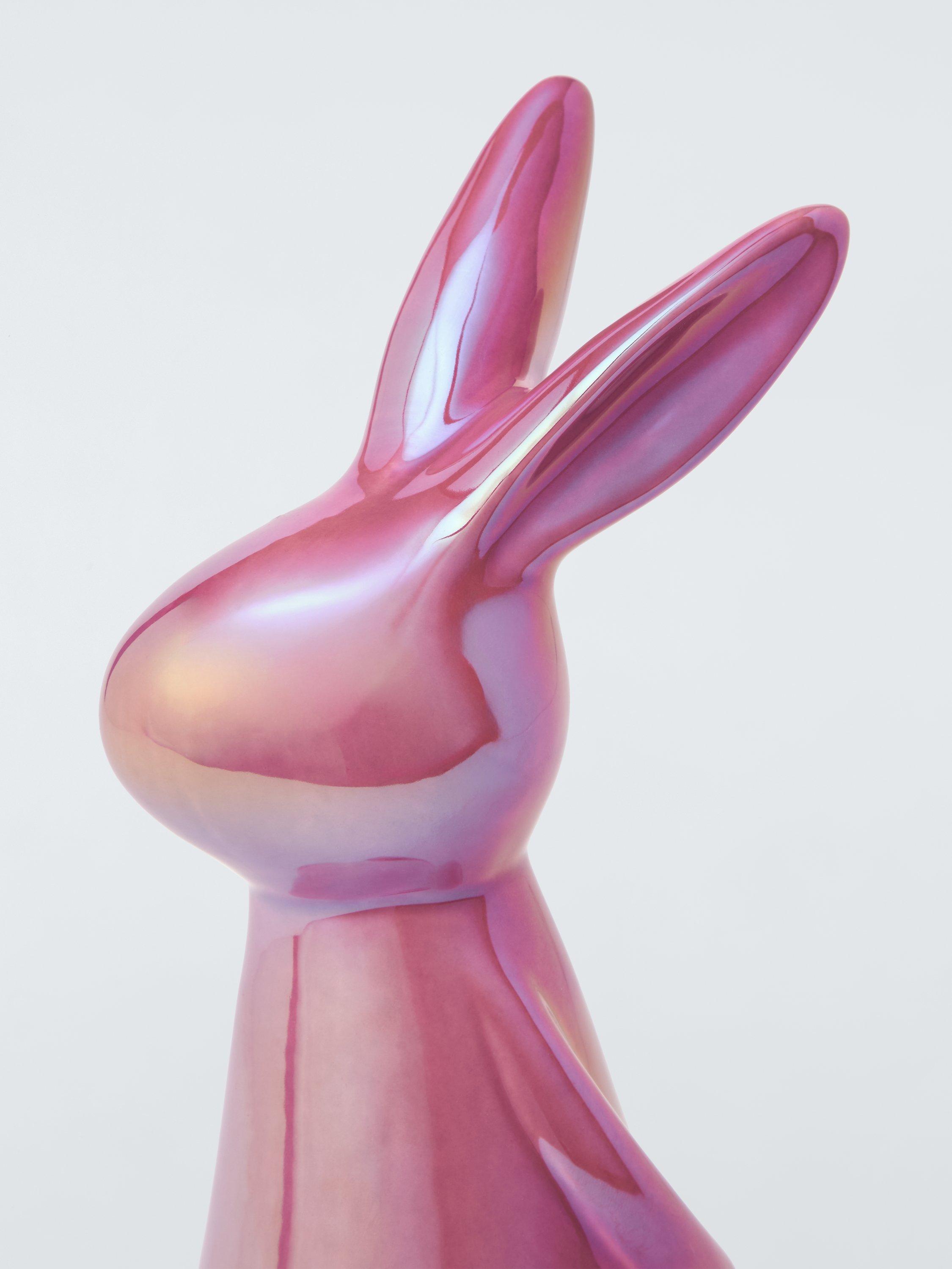 Simply-shaped, yet full of character, this iridescent glazed pink bunny makes a charming addition to an Easter display.