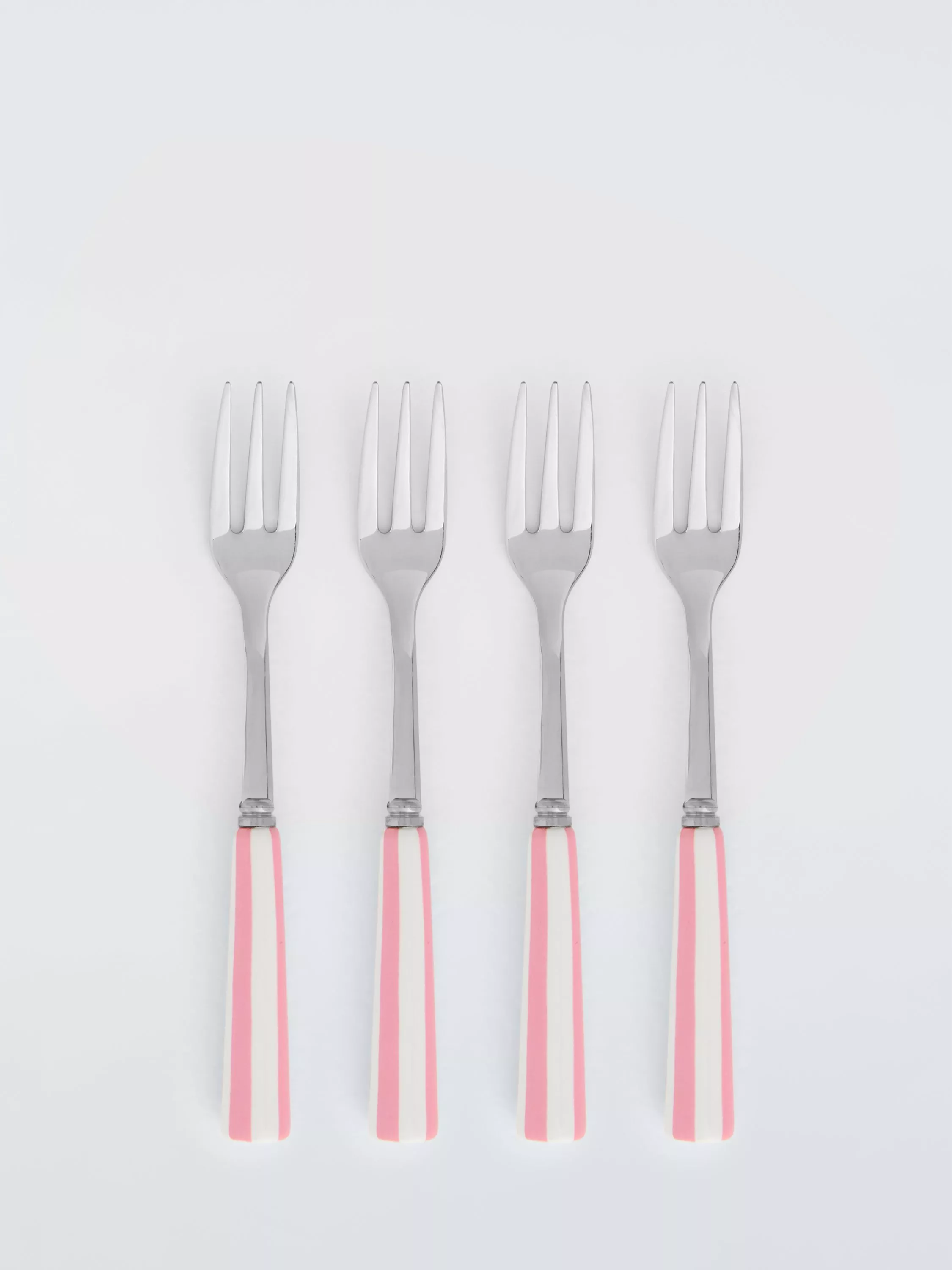 John LewisCeramic Handle Pastry Fork, Set of 4, Pink Stripe