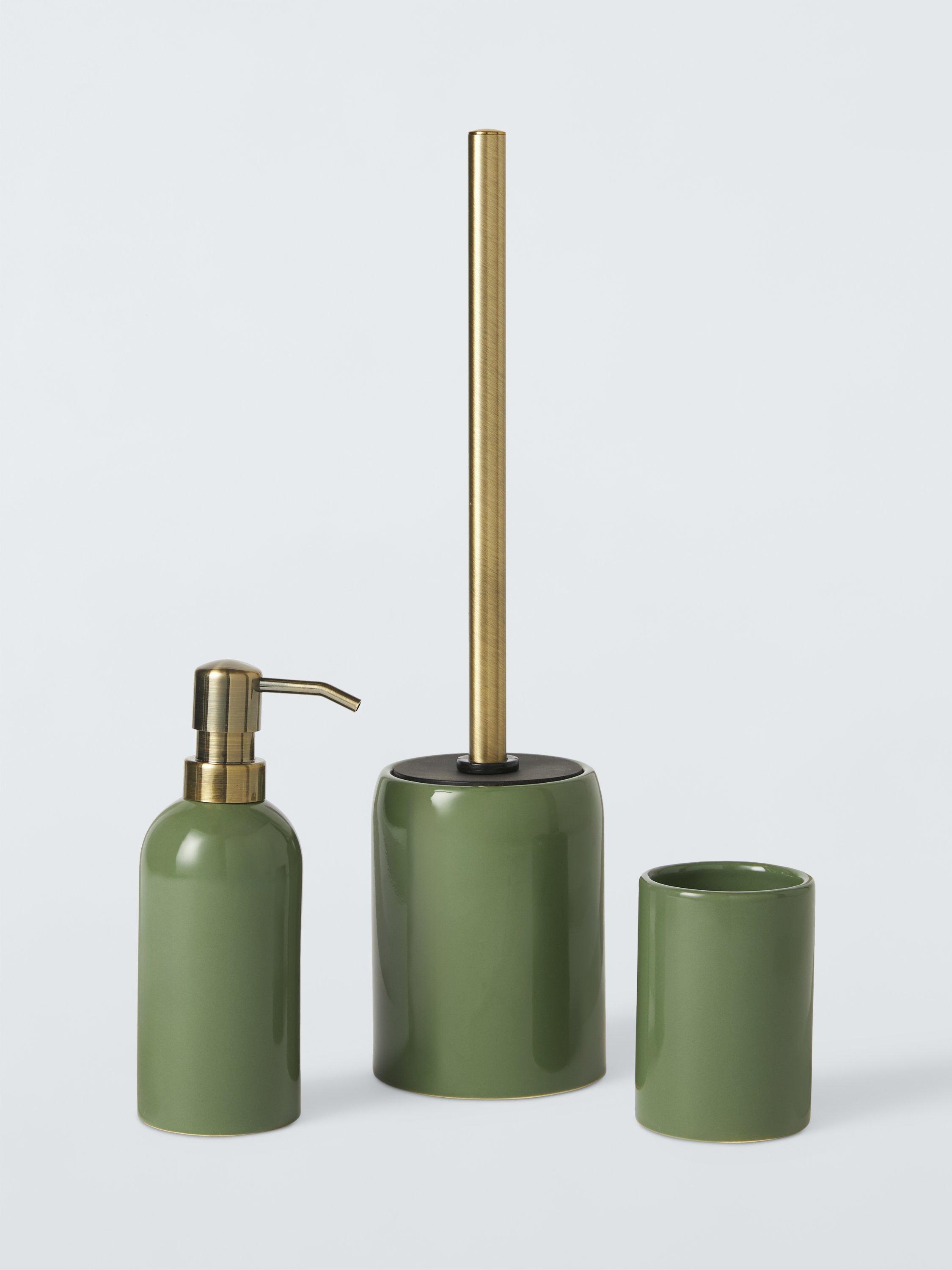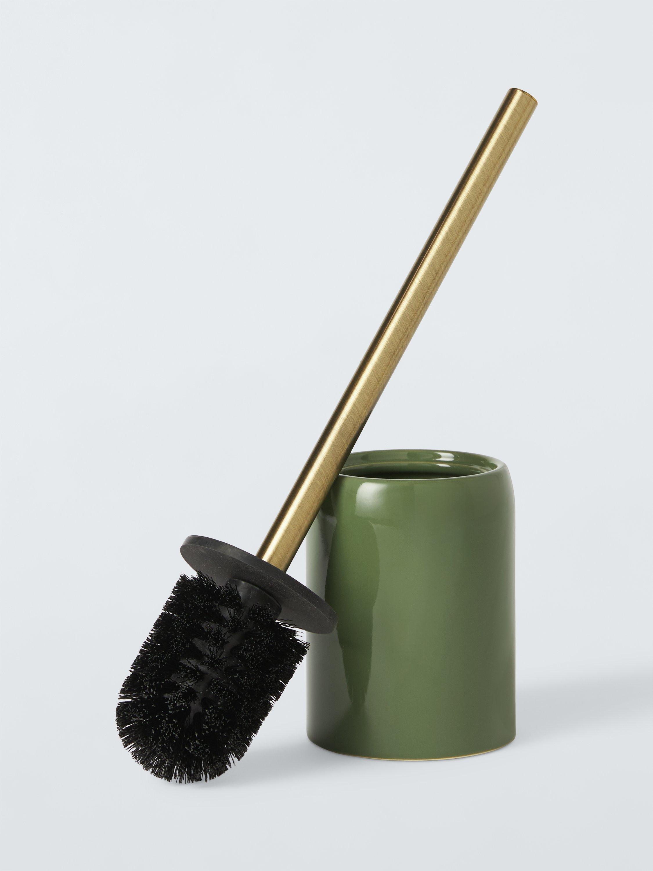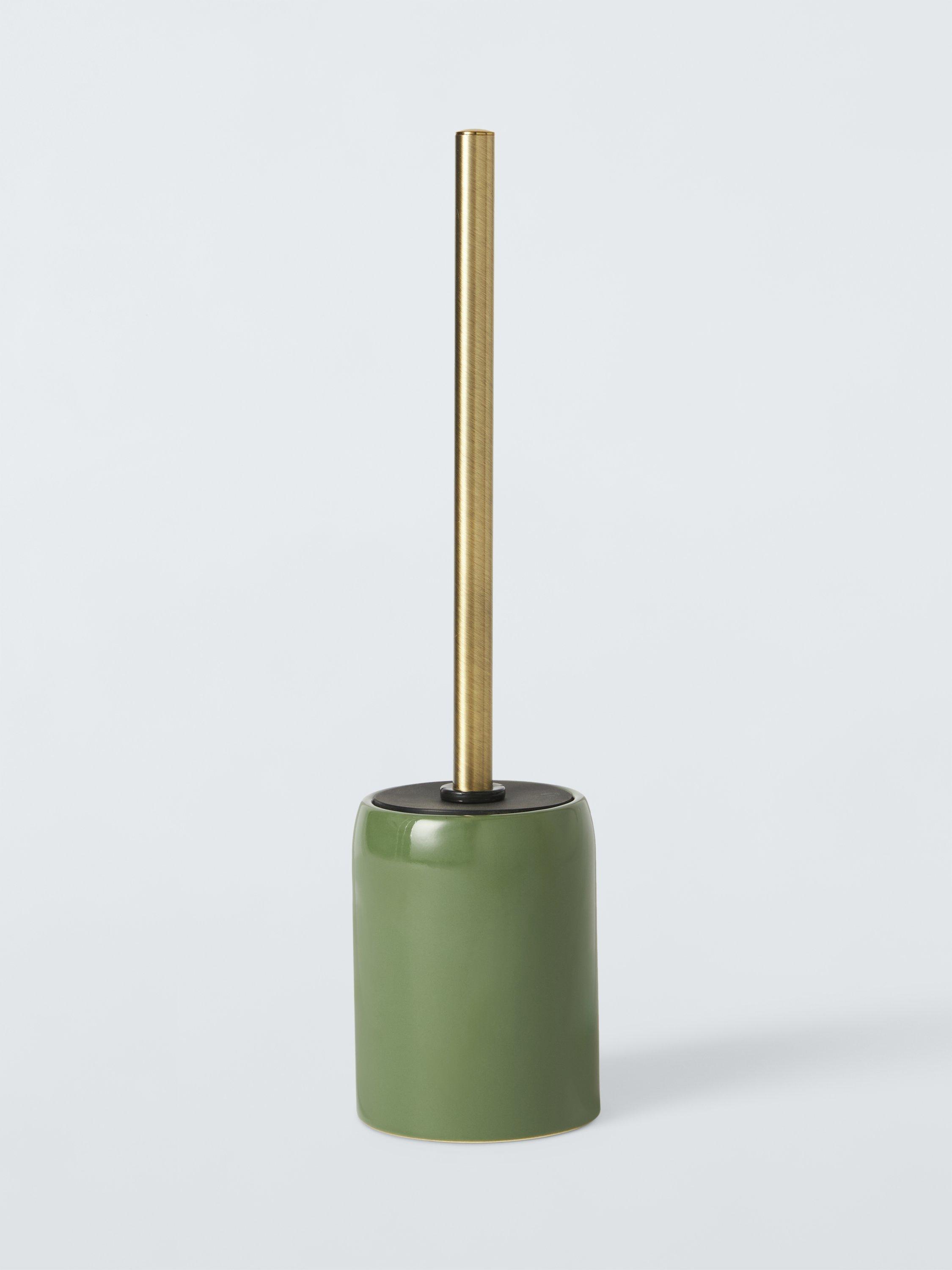 This glazed ceramic toilet brush and holder has a brushed metal handle and comes in a choice of colours.