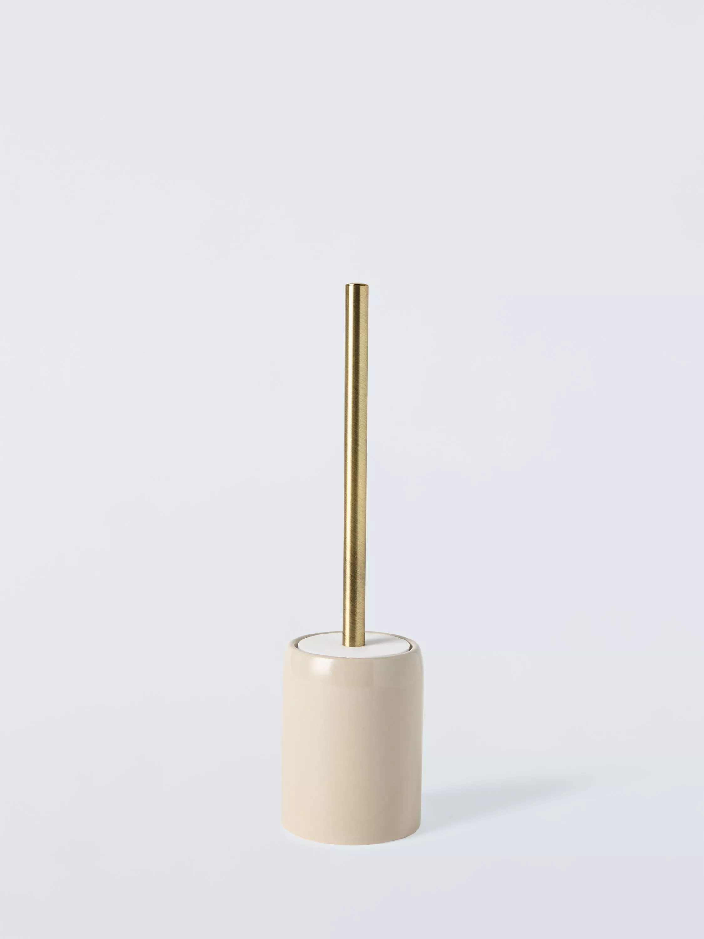 This glazed ceramic toilet brush and holder has a brushed metal handle and comes in a choice of colours.