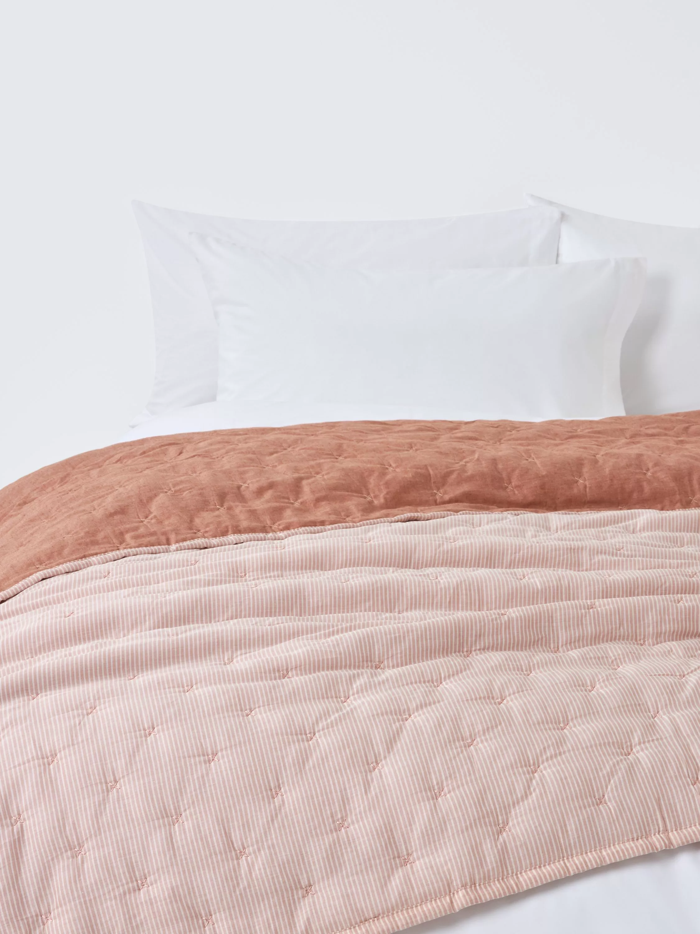 John Lewis ANYDAYJohn Lewis Chambray Stripe Reversible Quilted Bedspread, Tuscan Clay