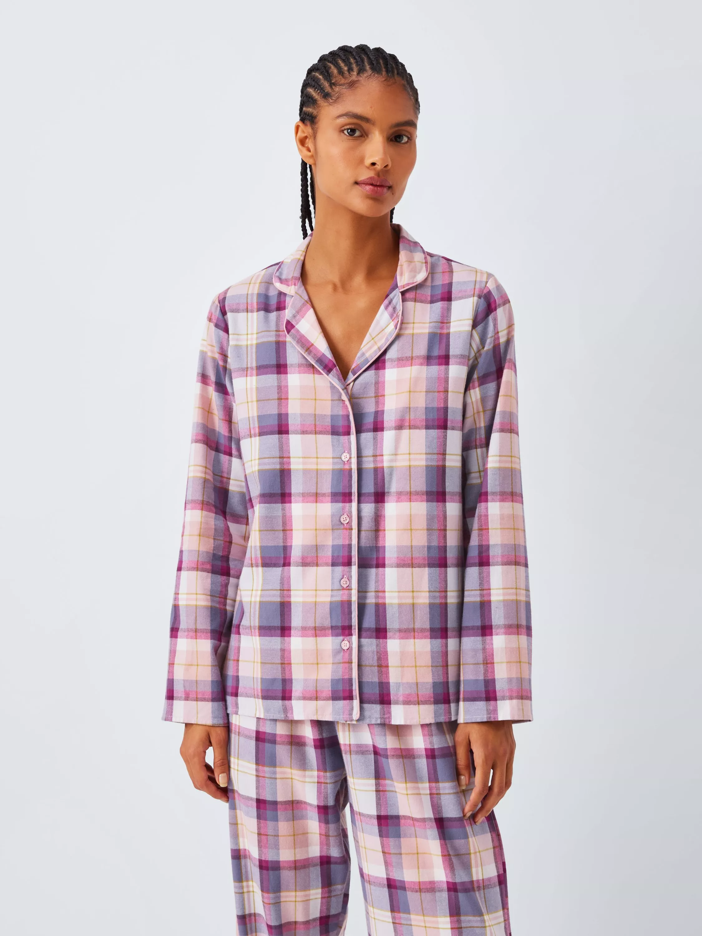 Designed for cosy nights in, this plaid check pyjama set is made from soft and comfy brushed cotton. Contrast piping adds a fun pop of colour.