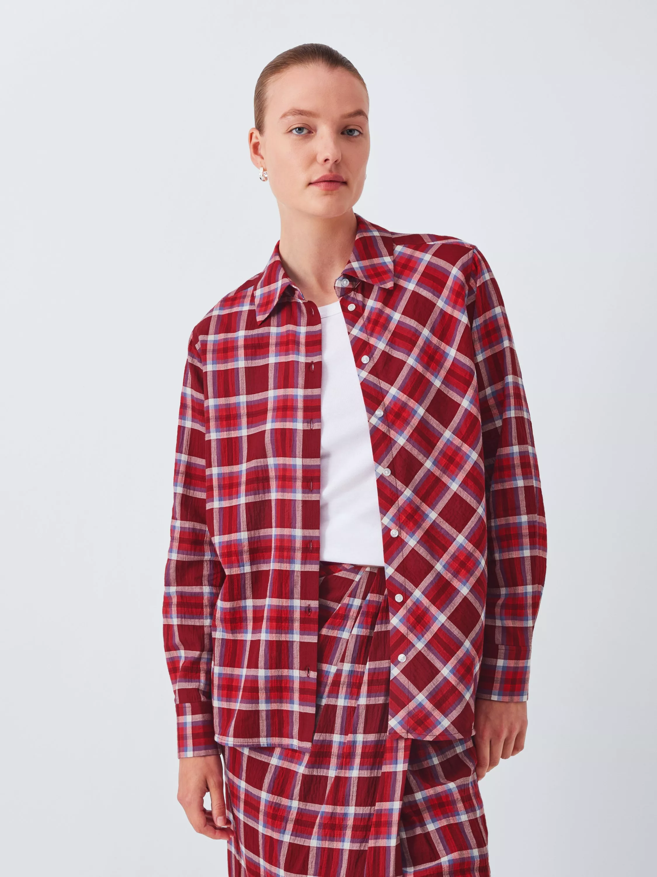 Soft cotton shirt in an updated check pattern with rotated checks in contrast. Styled with a classic button-down front and collar. Pairs perfectly with denim.