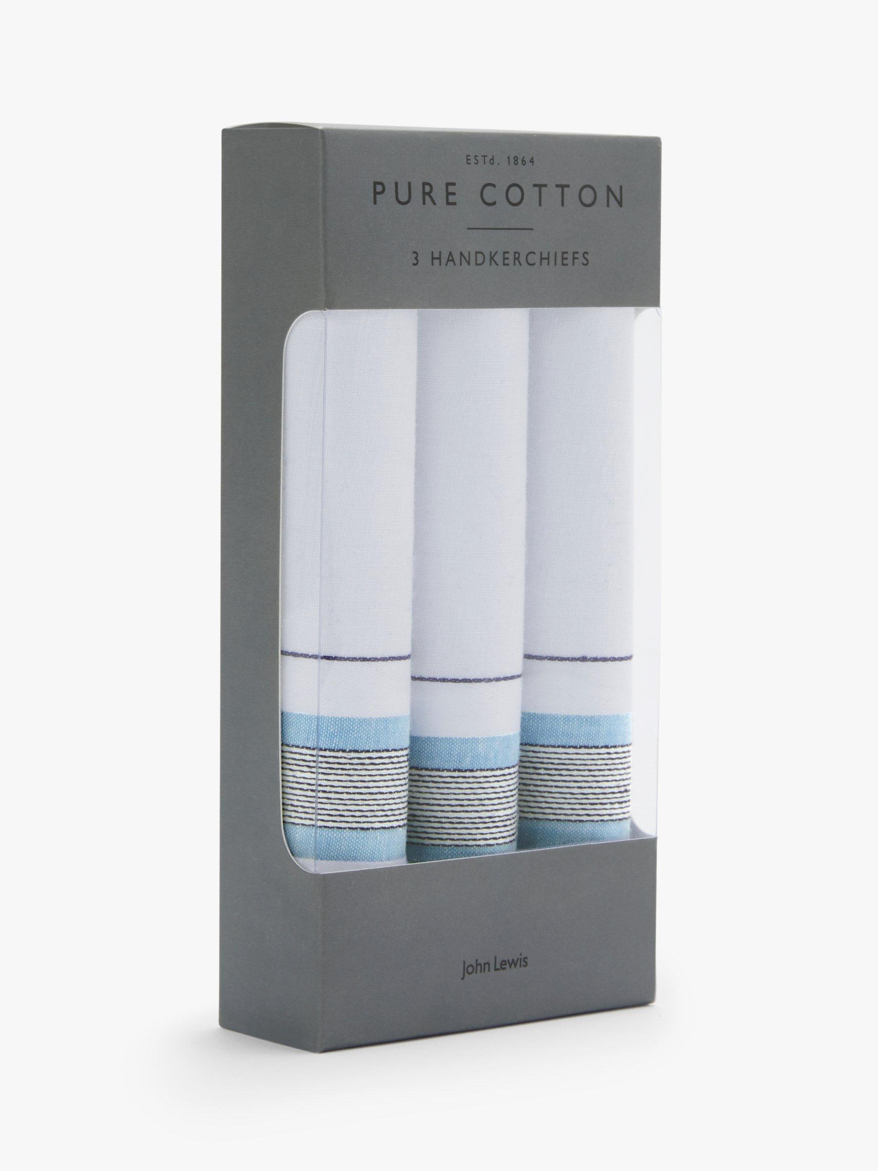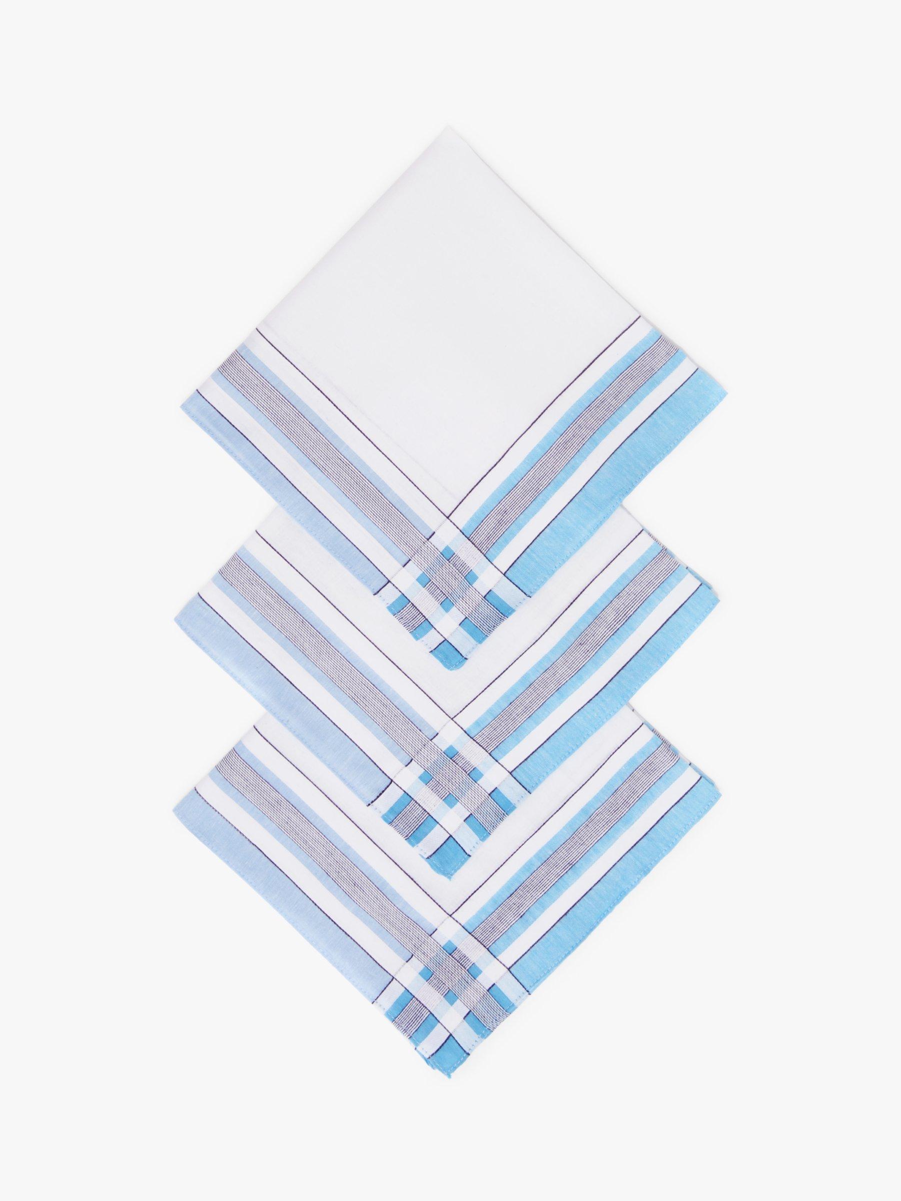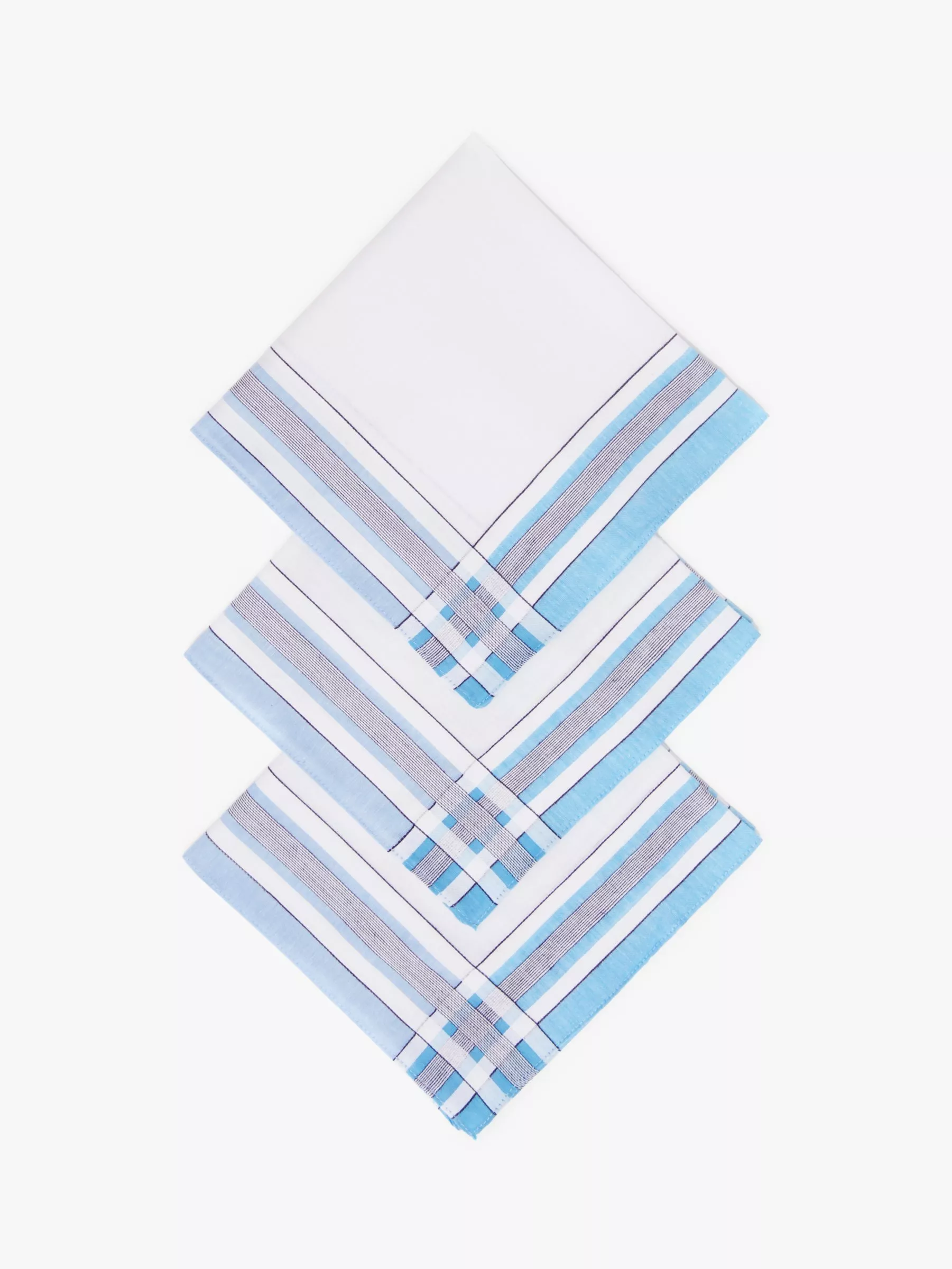 Create a smart and elegant look with this three pack of handkerchiefs. These are made tom 100% woven cotton and feature a contrasting check and stripe pattern border for a little detail.