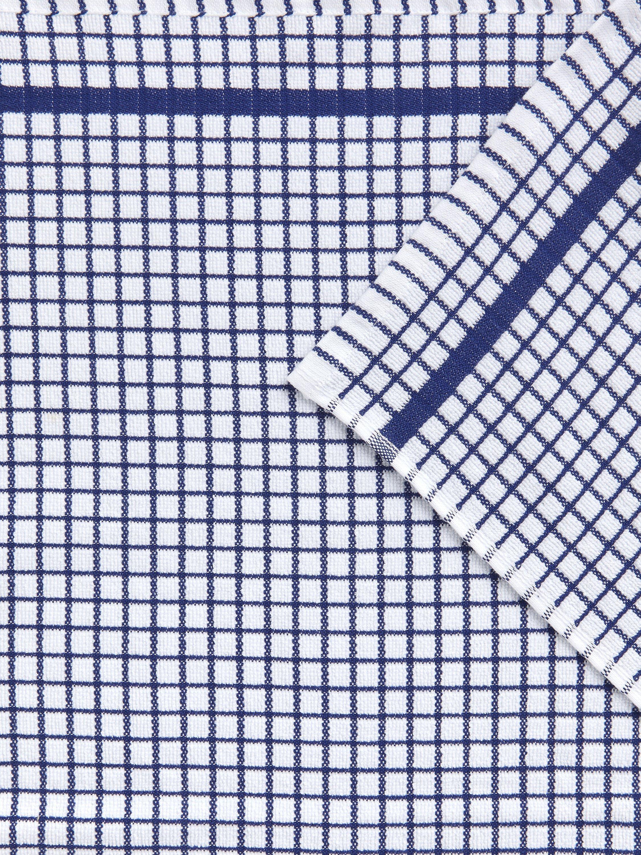 A true kitchen essential, this tea towel is made of soft and absorbent terry cotton. Featuring a check design with double border stripes, it's machine washable for everyday use.