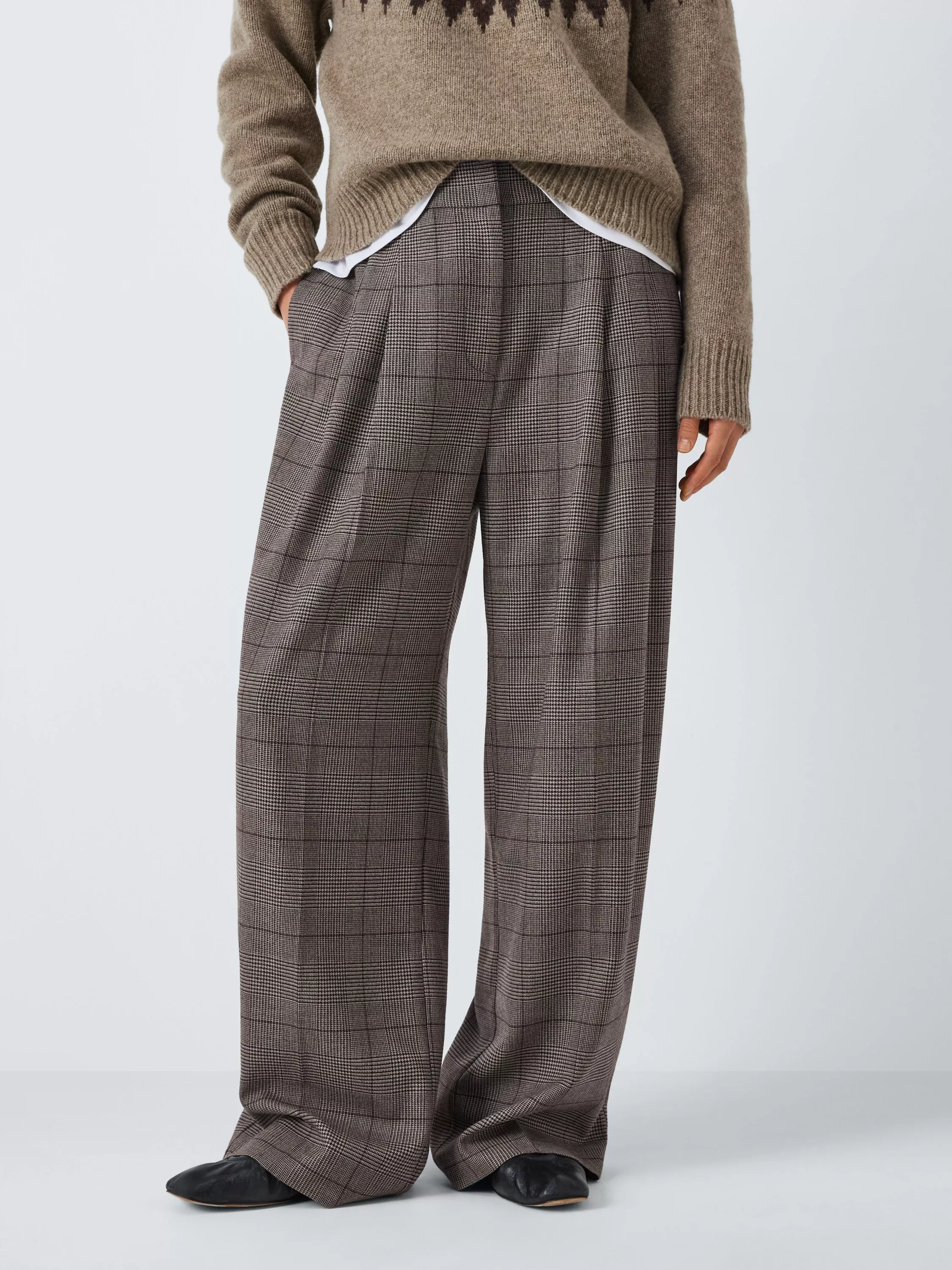 Tailored check trousers made from a wool blend fabric with a touch of stretch for comfortable wear. Cut in a flattering wide-leg style.