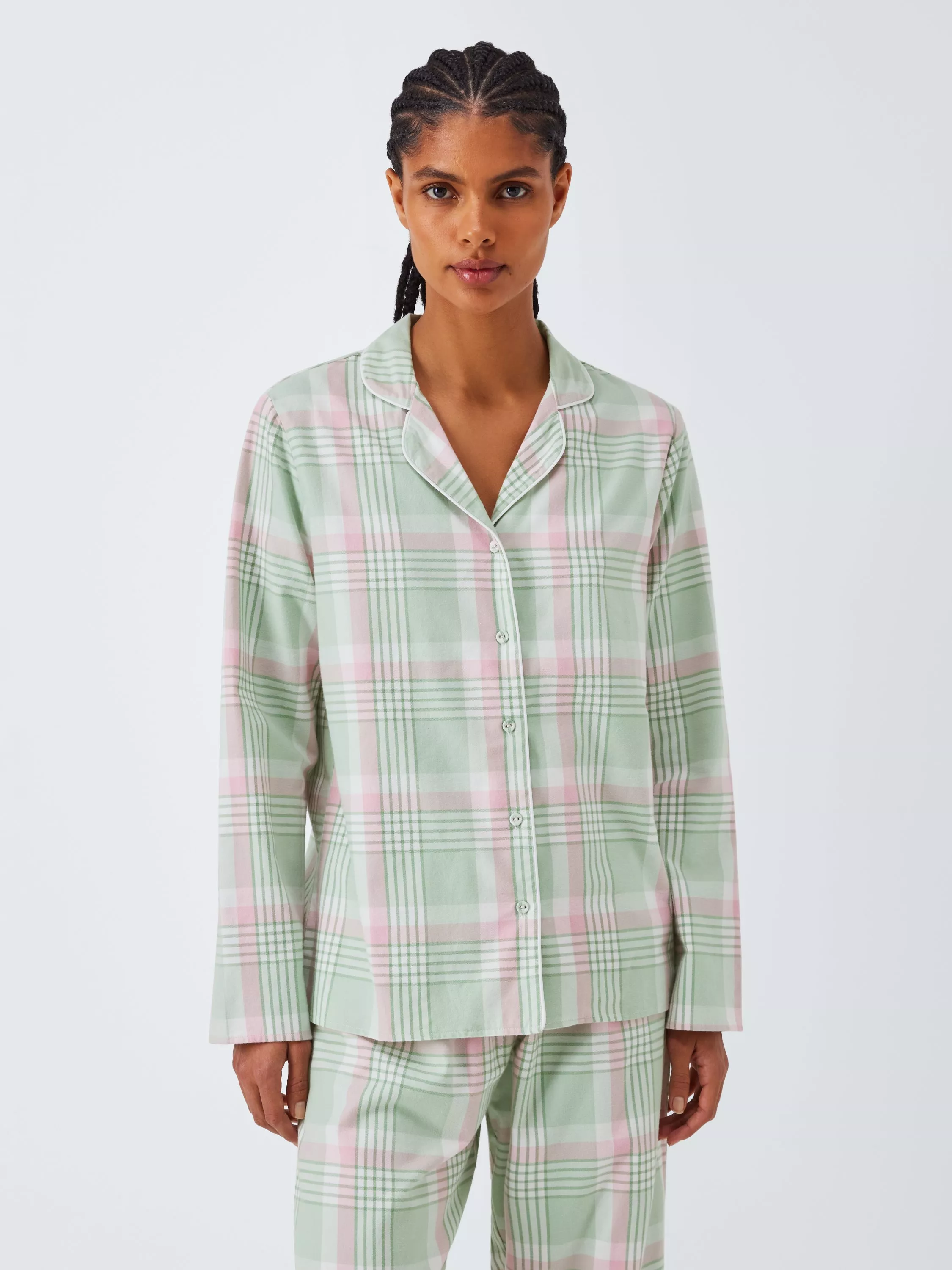 A plaid check pyjama set is super comfy, yarn-dyed cotton. Features contrast binding for a pop of colou,r and the bottoms have a fully elasticated waistband.