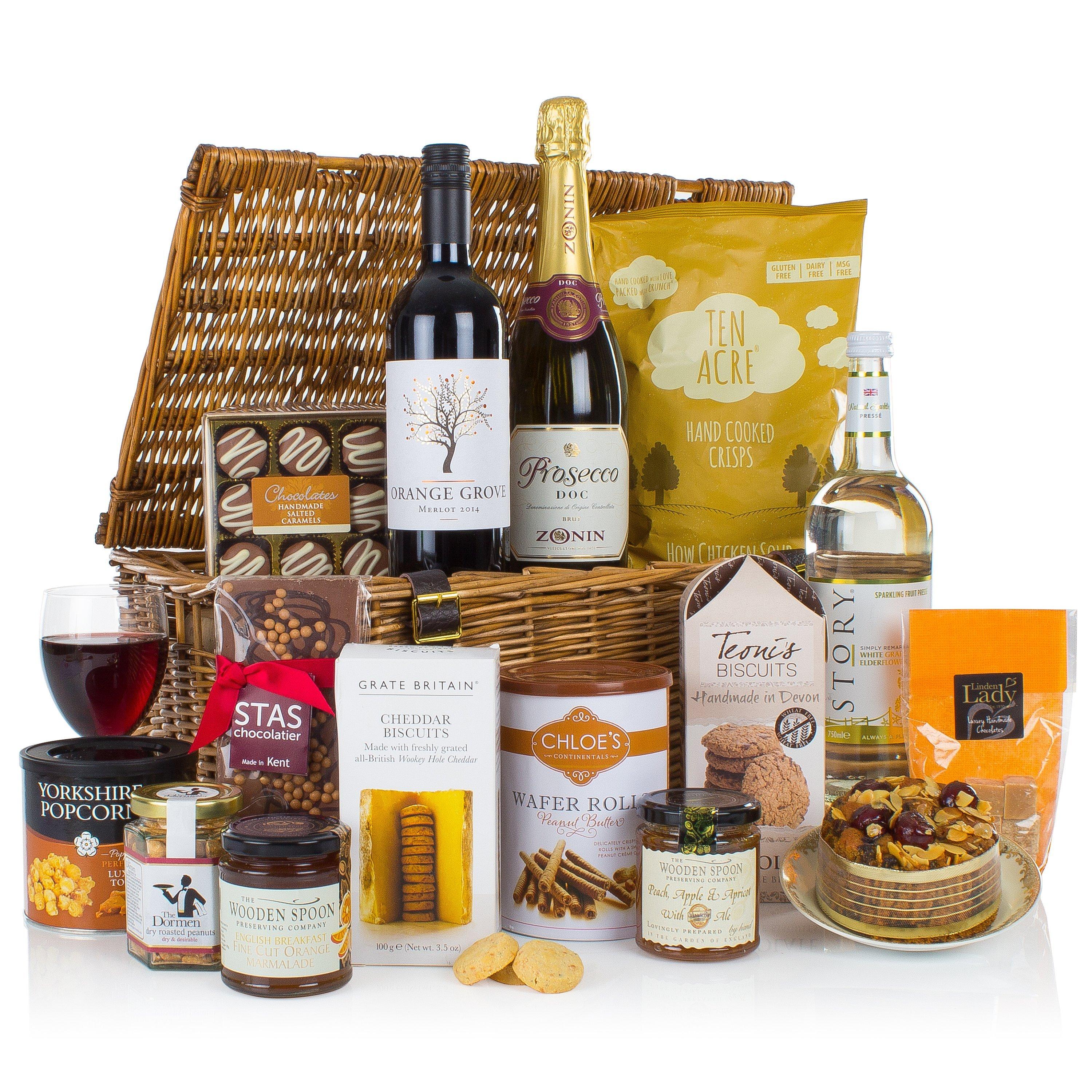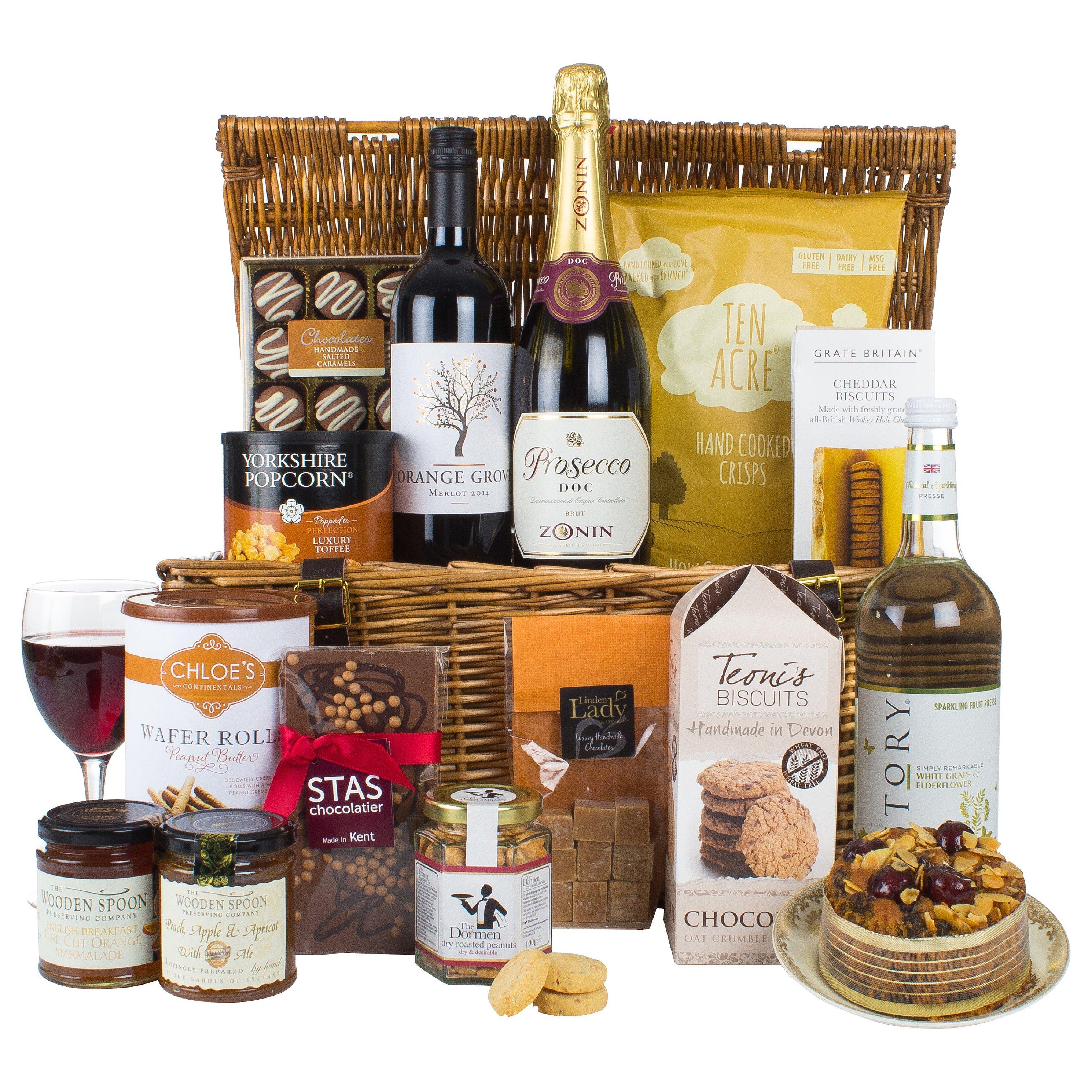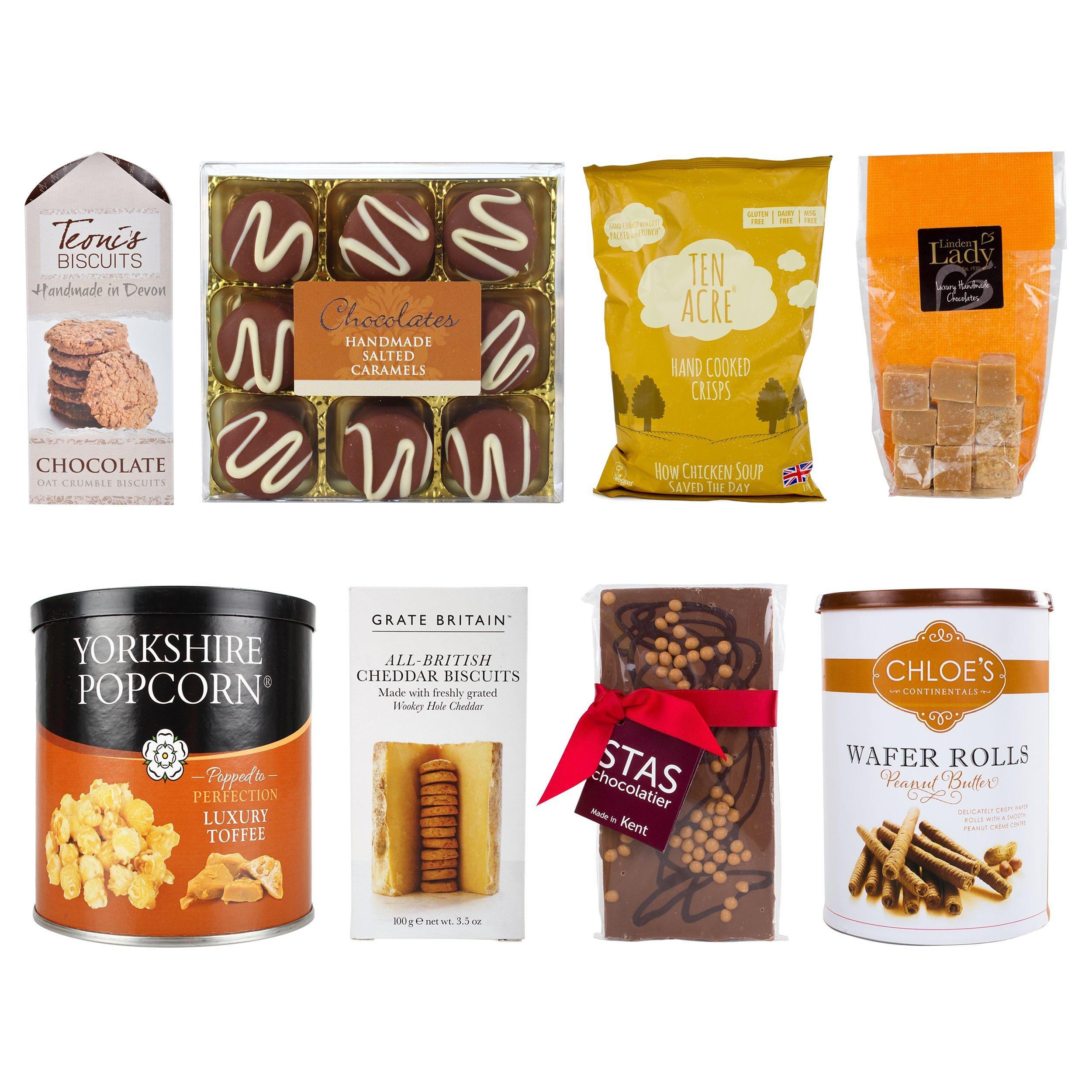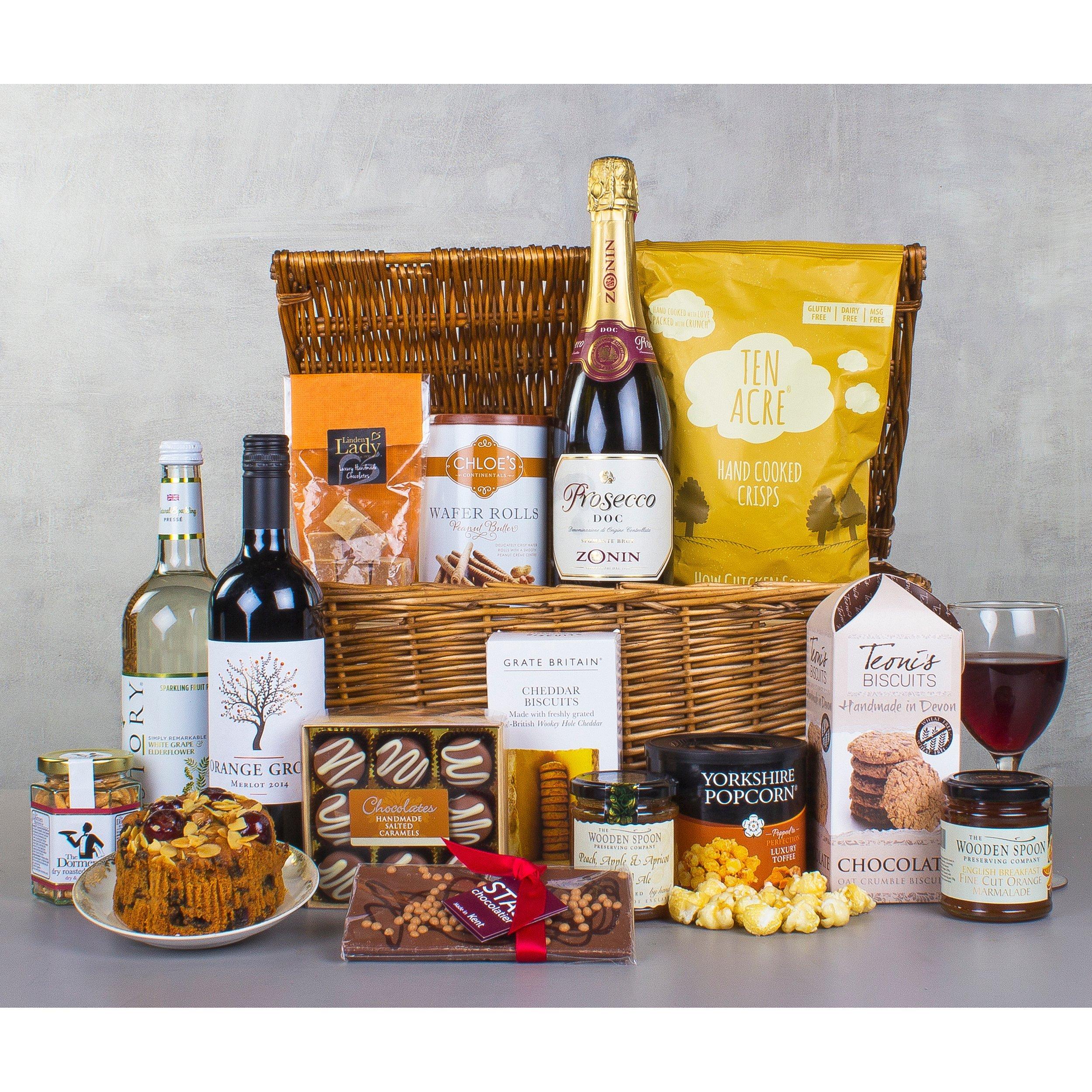 This hamper is packed with tasty treats which can be enjoyed throughout the day. Presented in a traditional lidded basket, you're spoilt for choice when deciding between salted caramels or vanilla fudge.