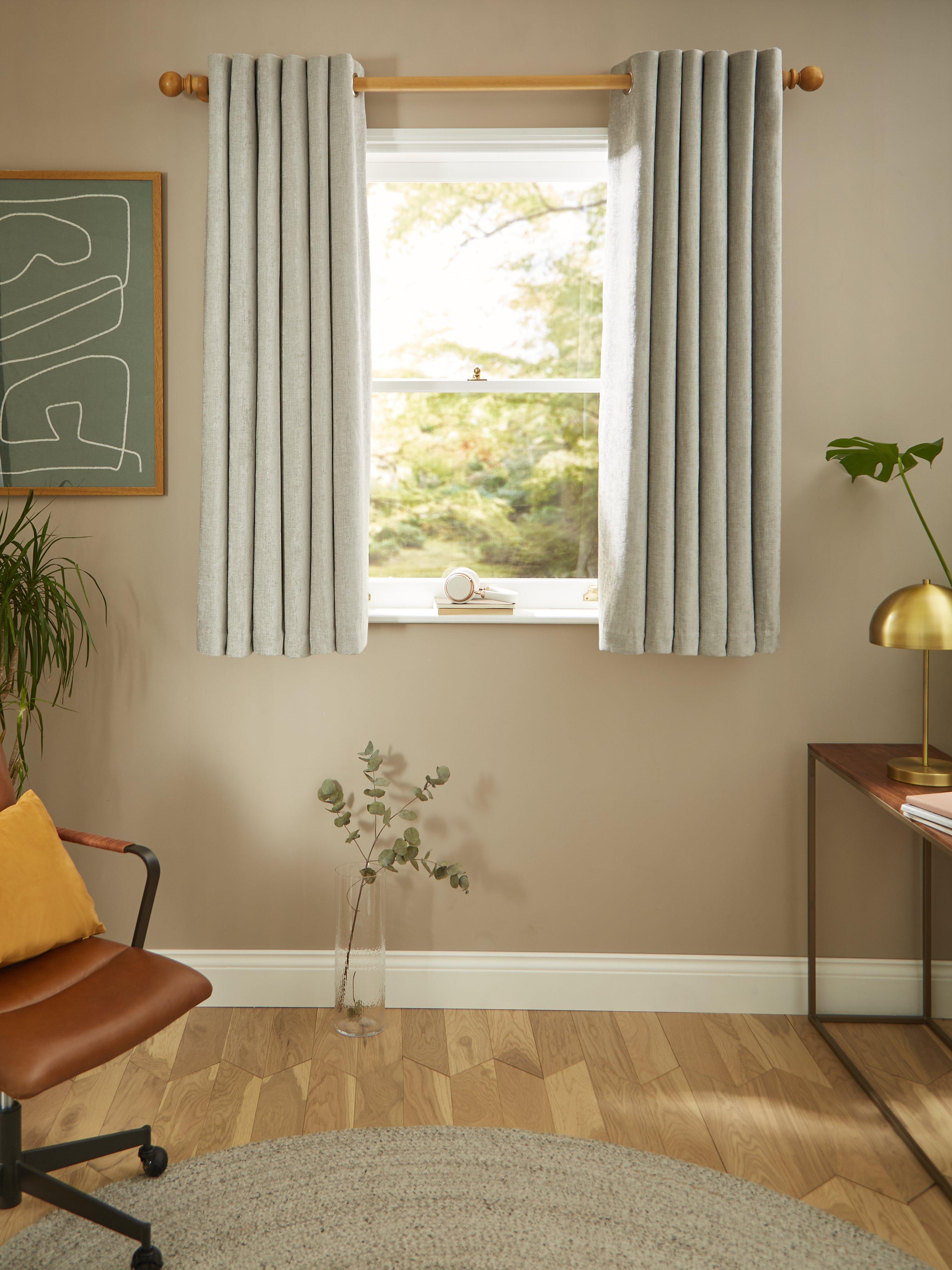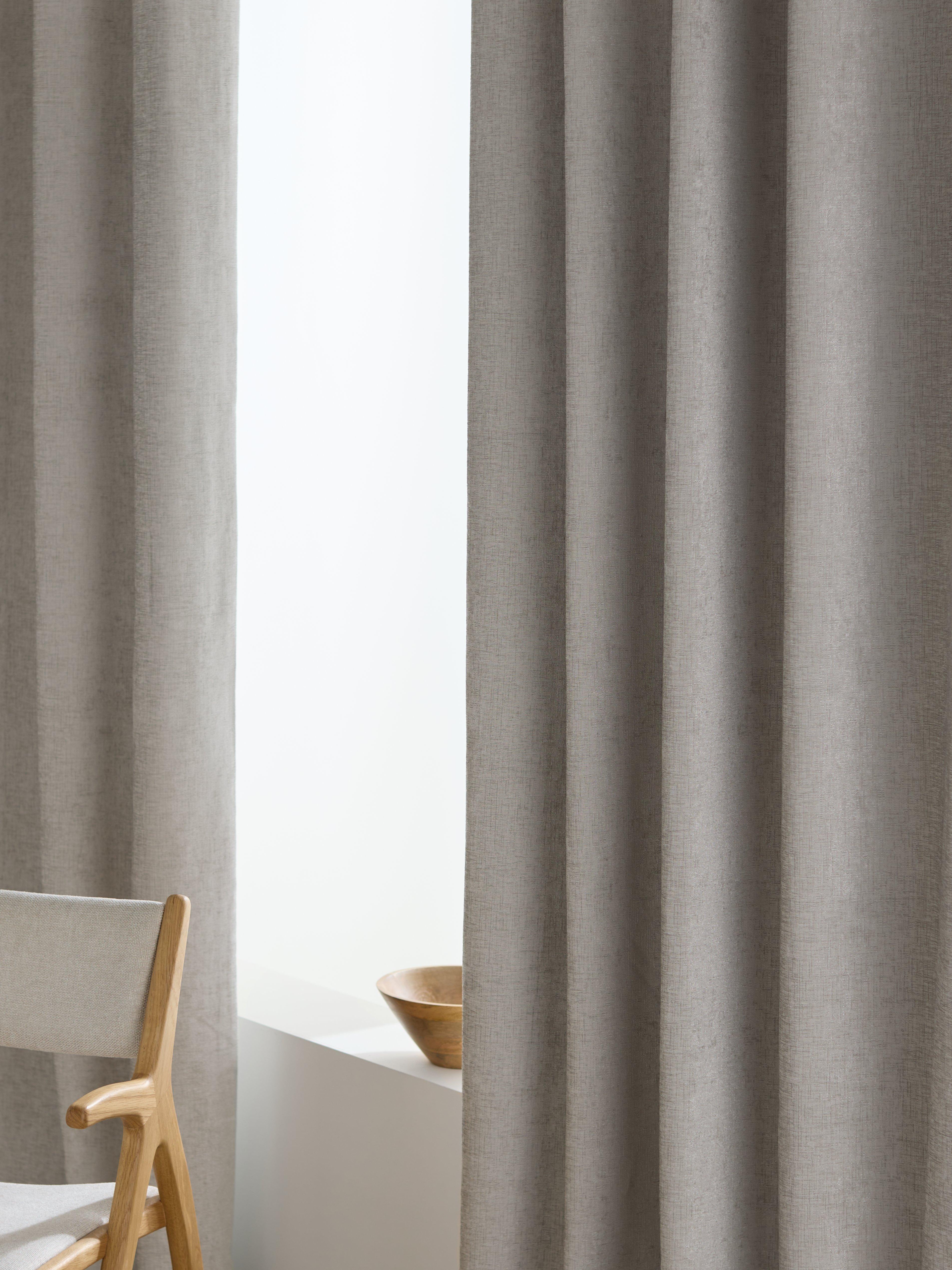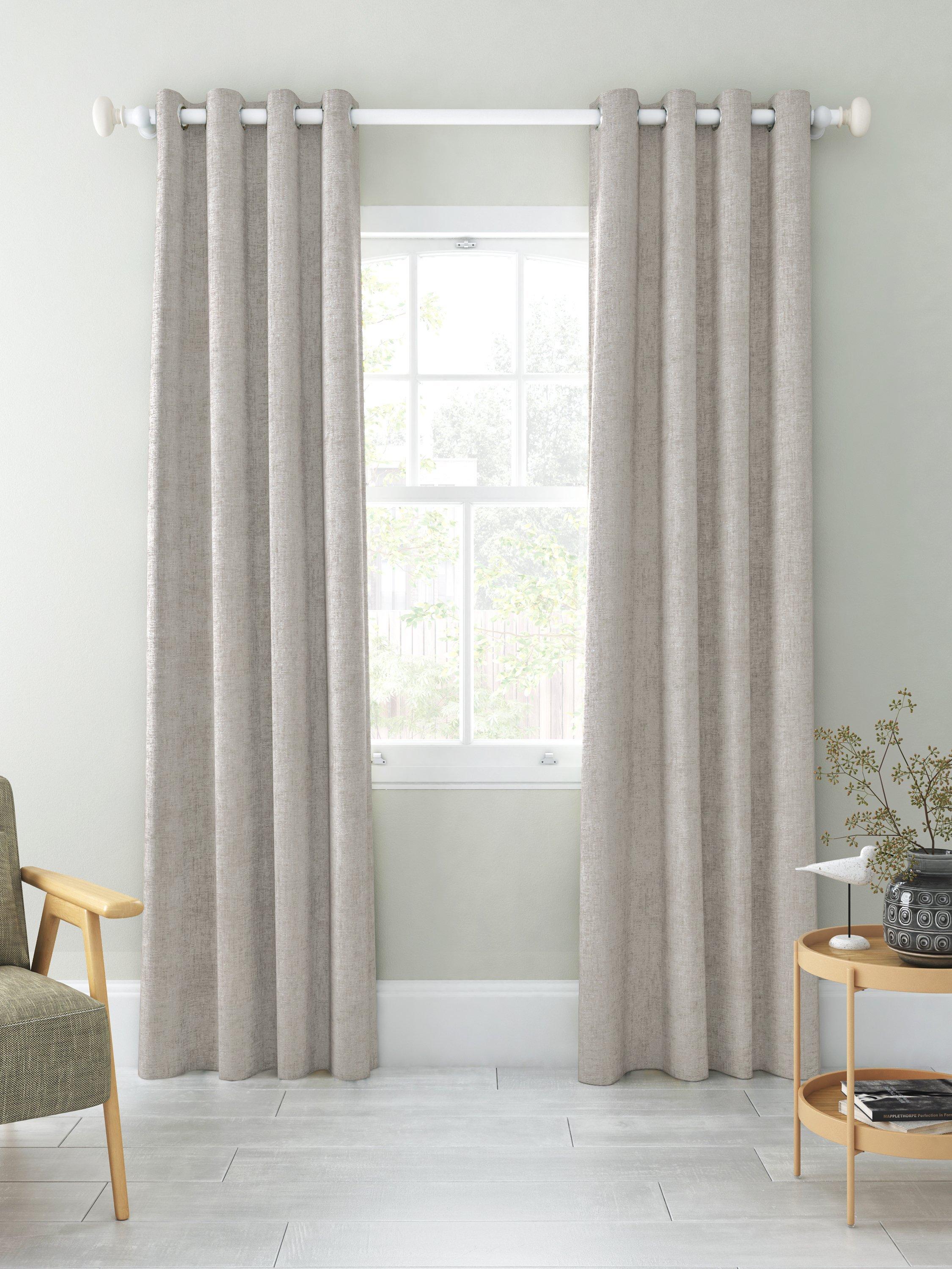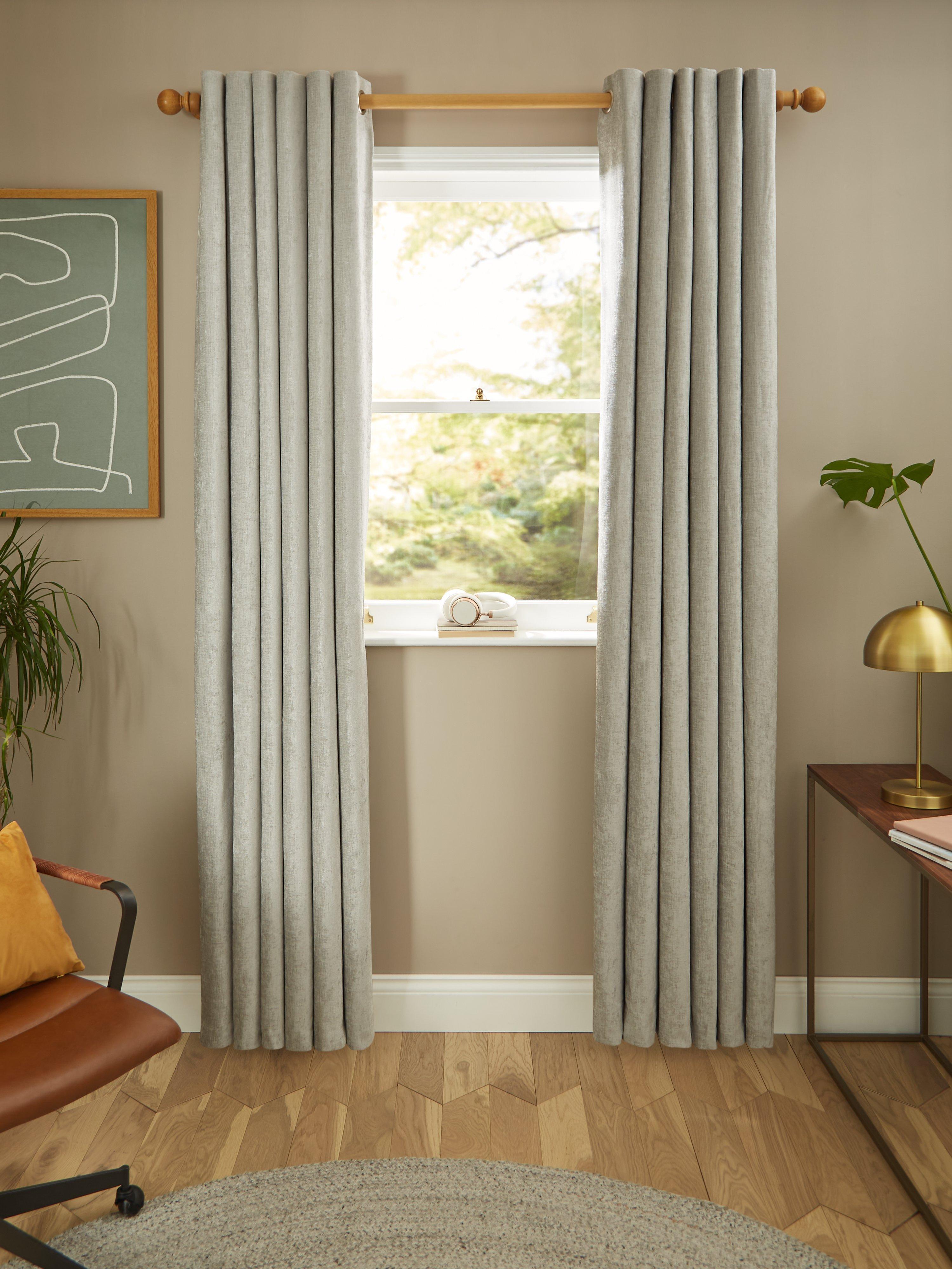 Our plain chenille curtains have an eyelet heading which gives them a contemporary look with large, even folds. The blackout lining eliminates light and lends a full look to the curtain, improving the drape.