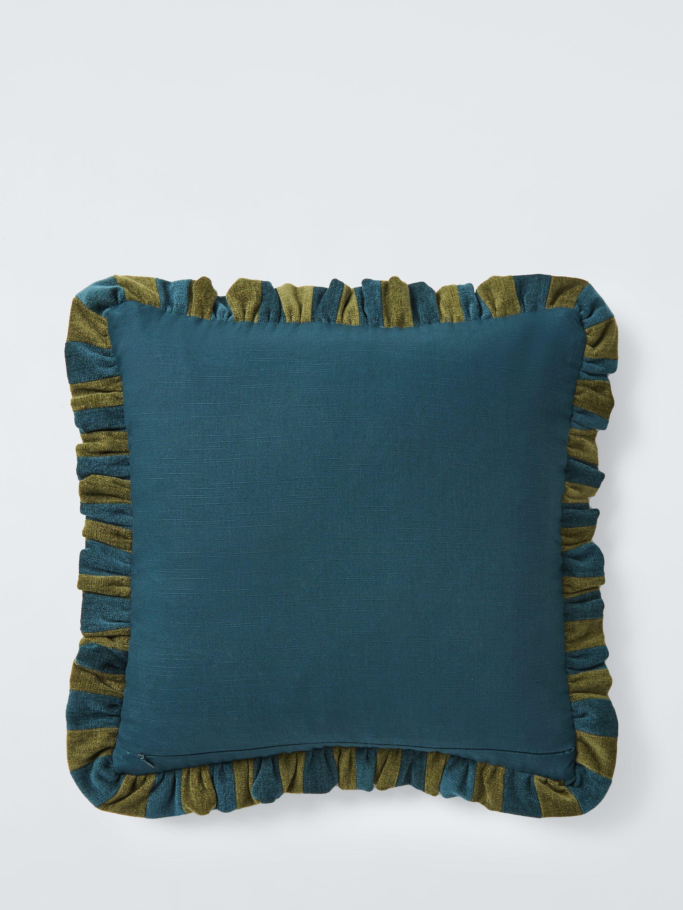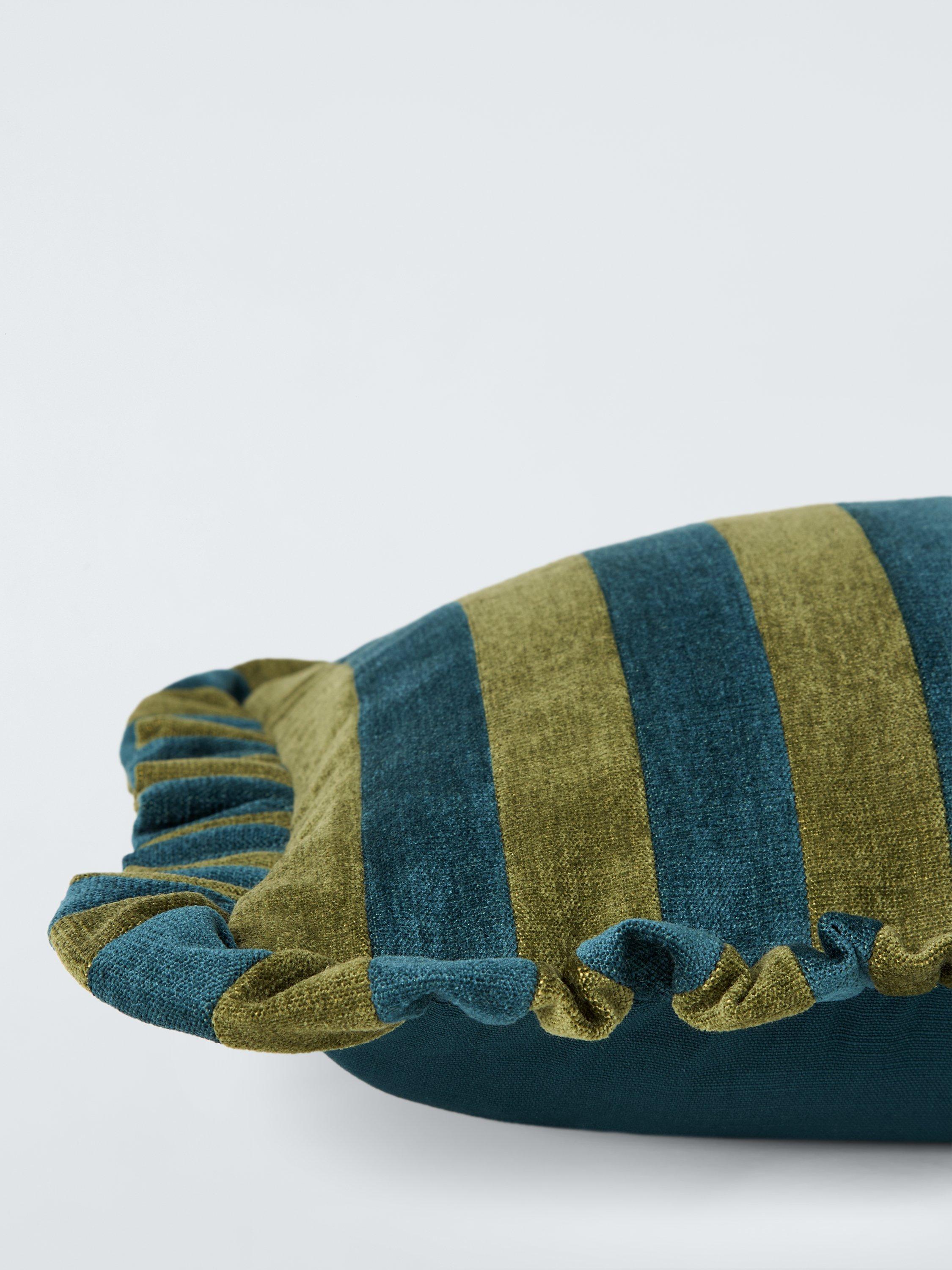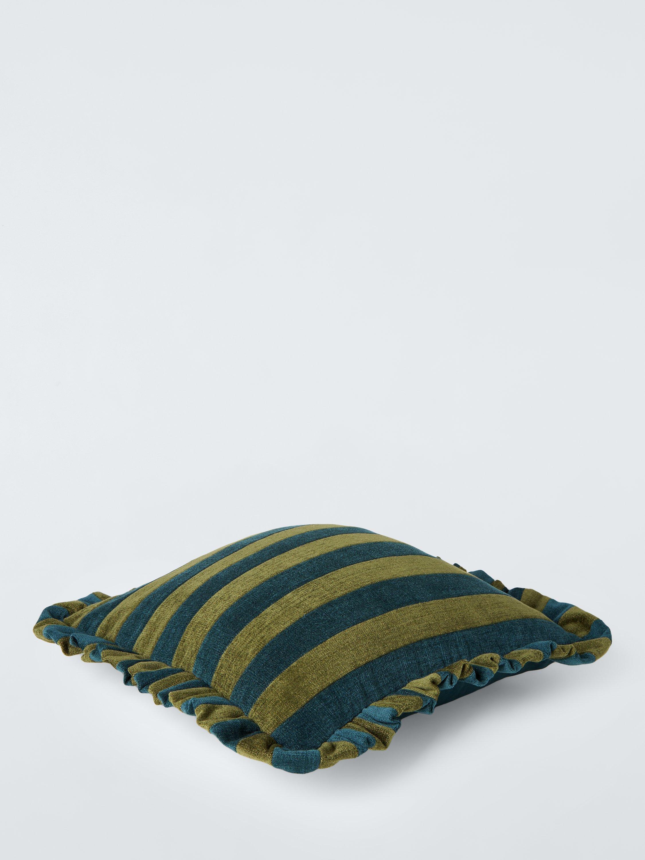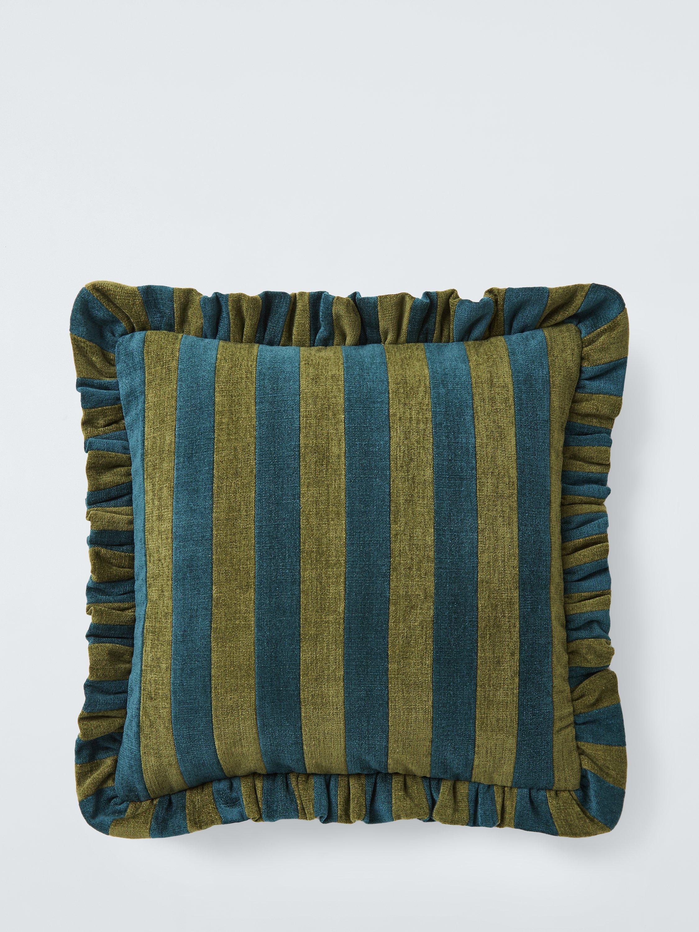 A plump and luxurious chenille stripe cushion with a frilled edge.