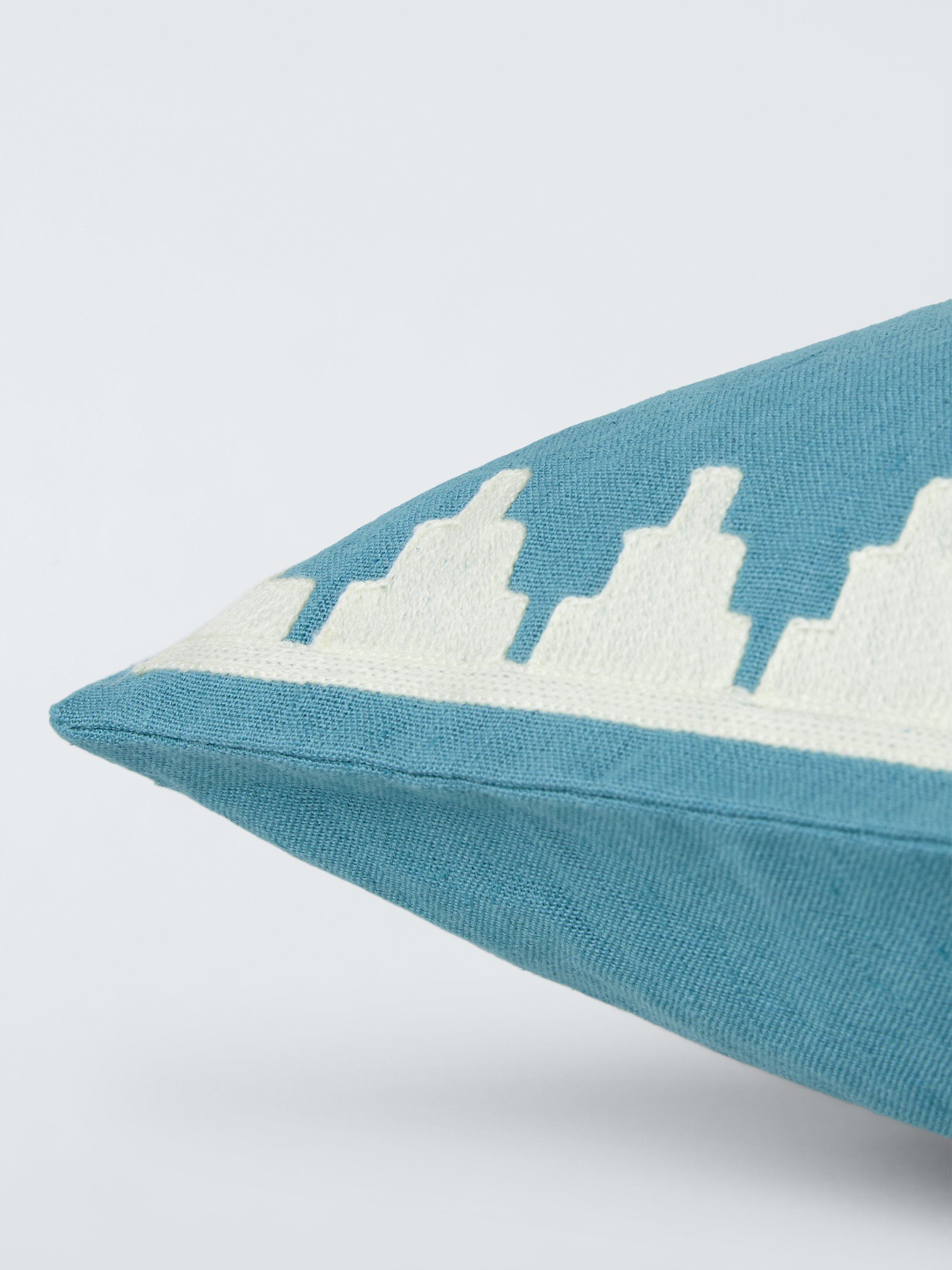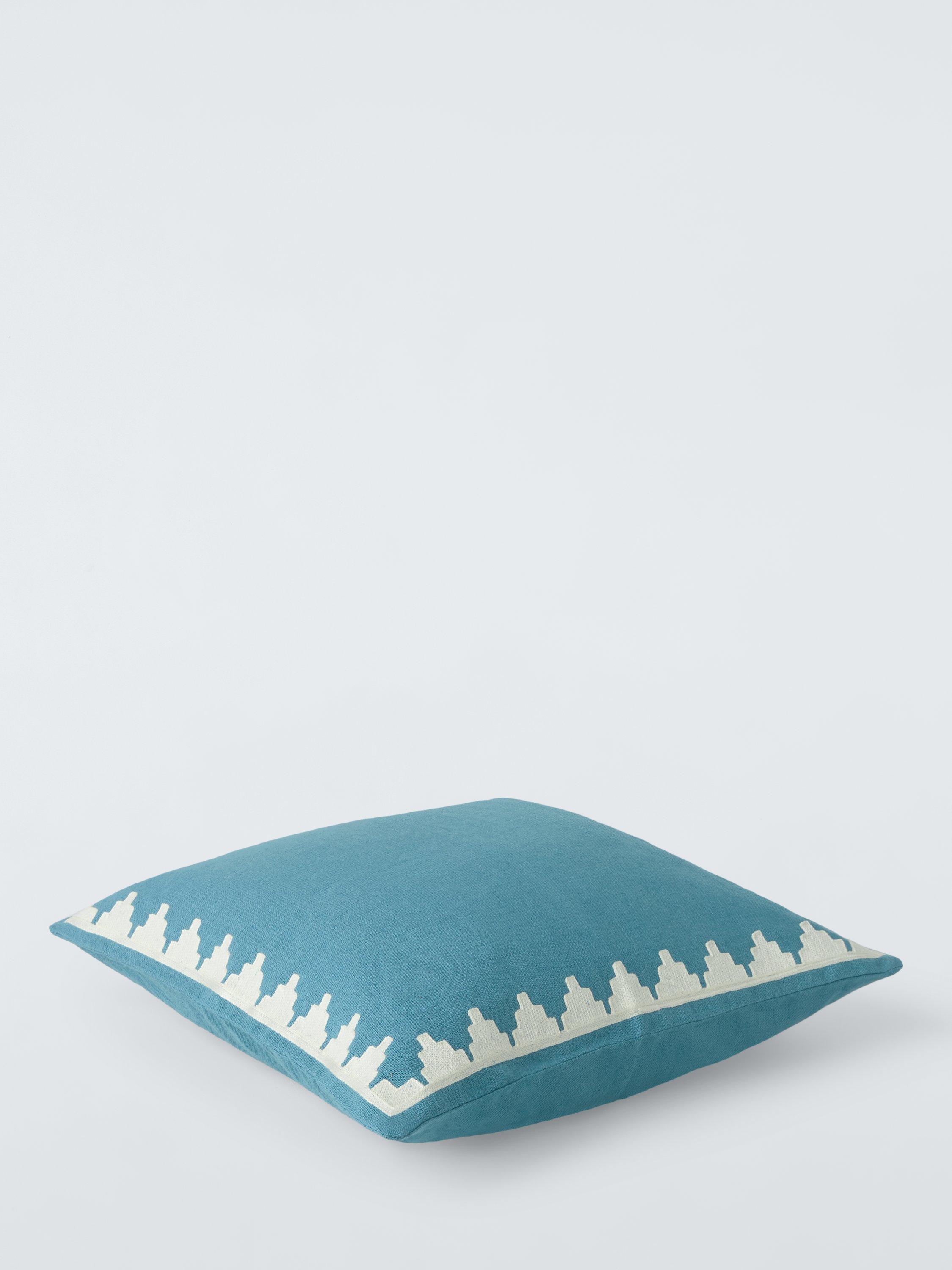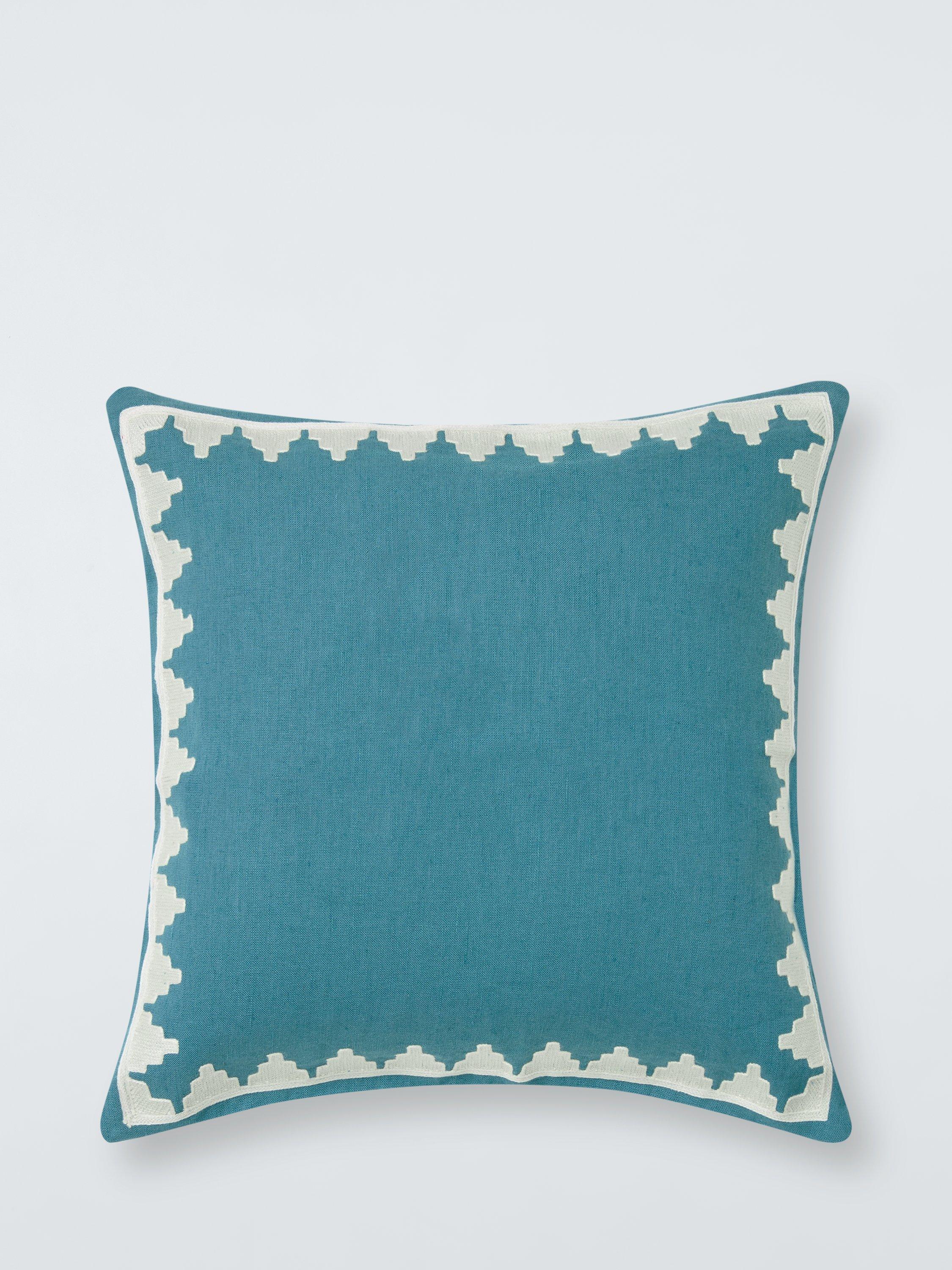 Switch up your living room style for summer with these zesty woven cushions that are finished with an embroidered chevron border.