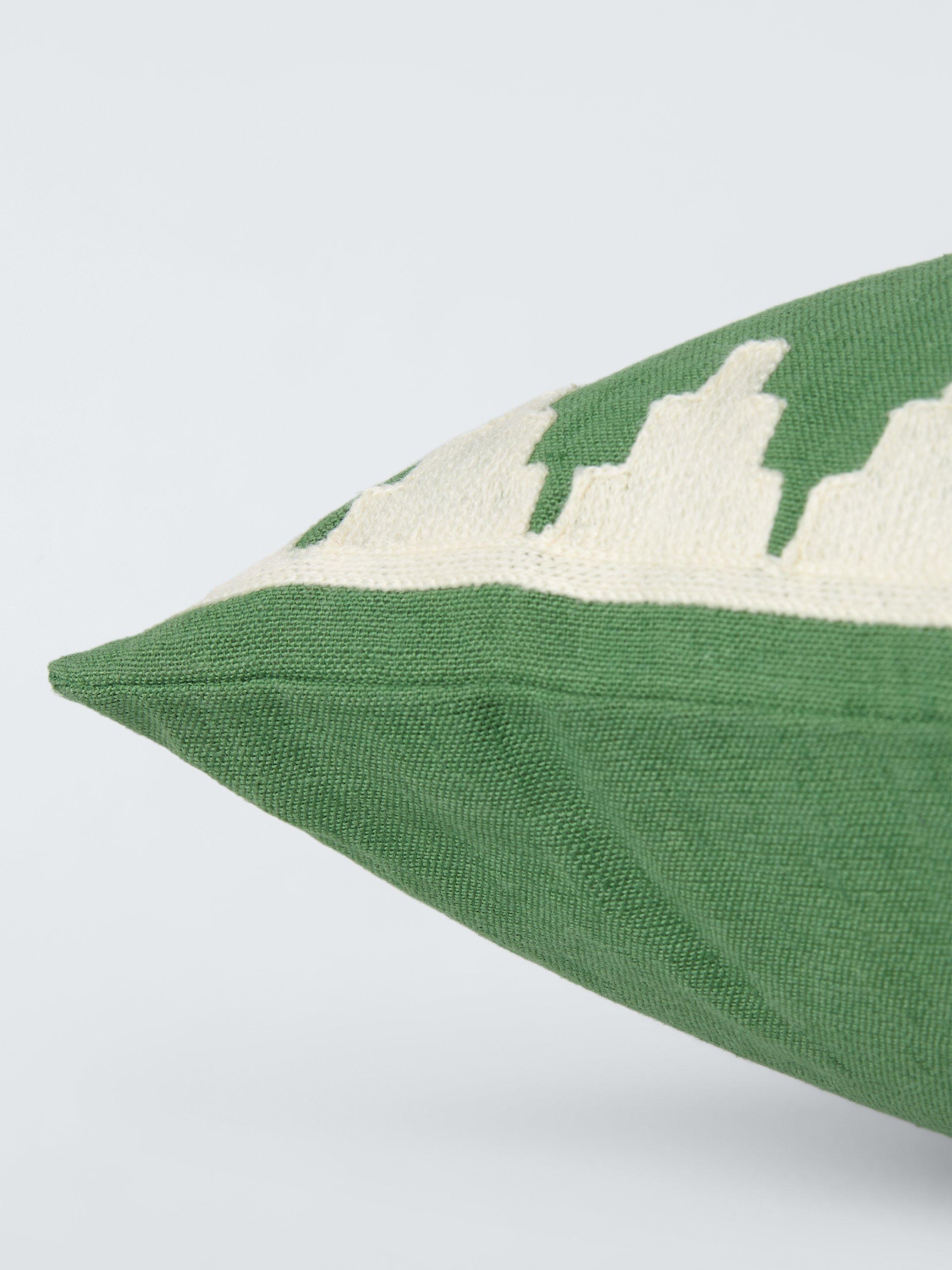 Switch up your living room style for summer with these zesty woven cushions that are finished with an embroidered chevron border.