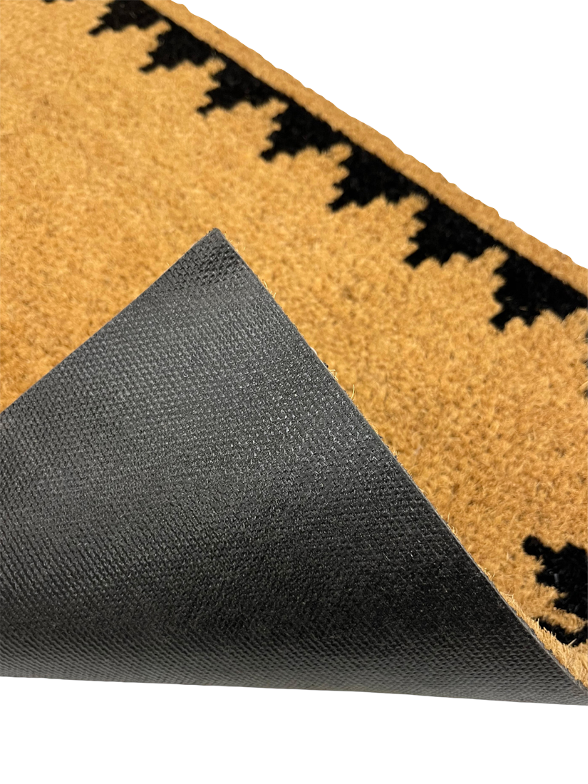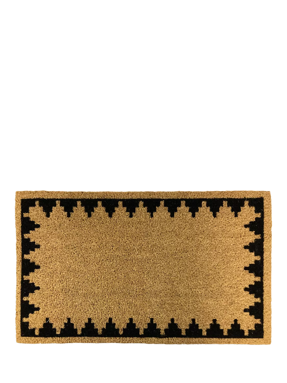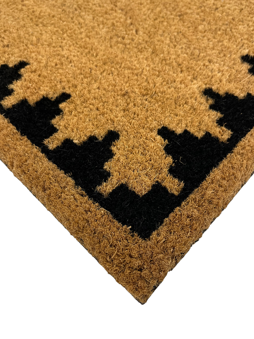 A hard-wearing coir door mat with a simple but elegant chevron border.
