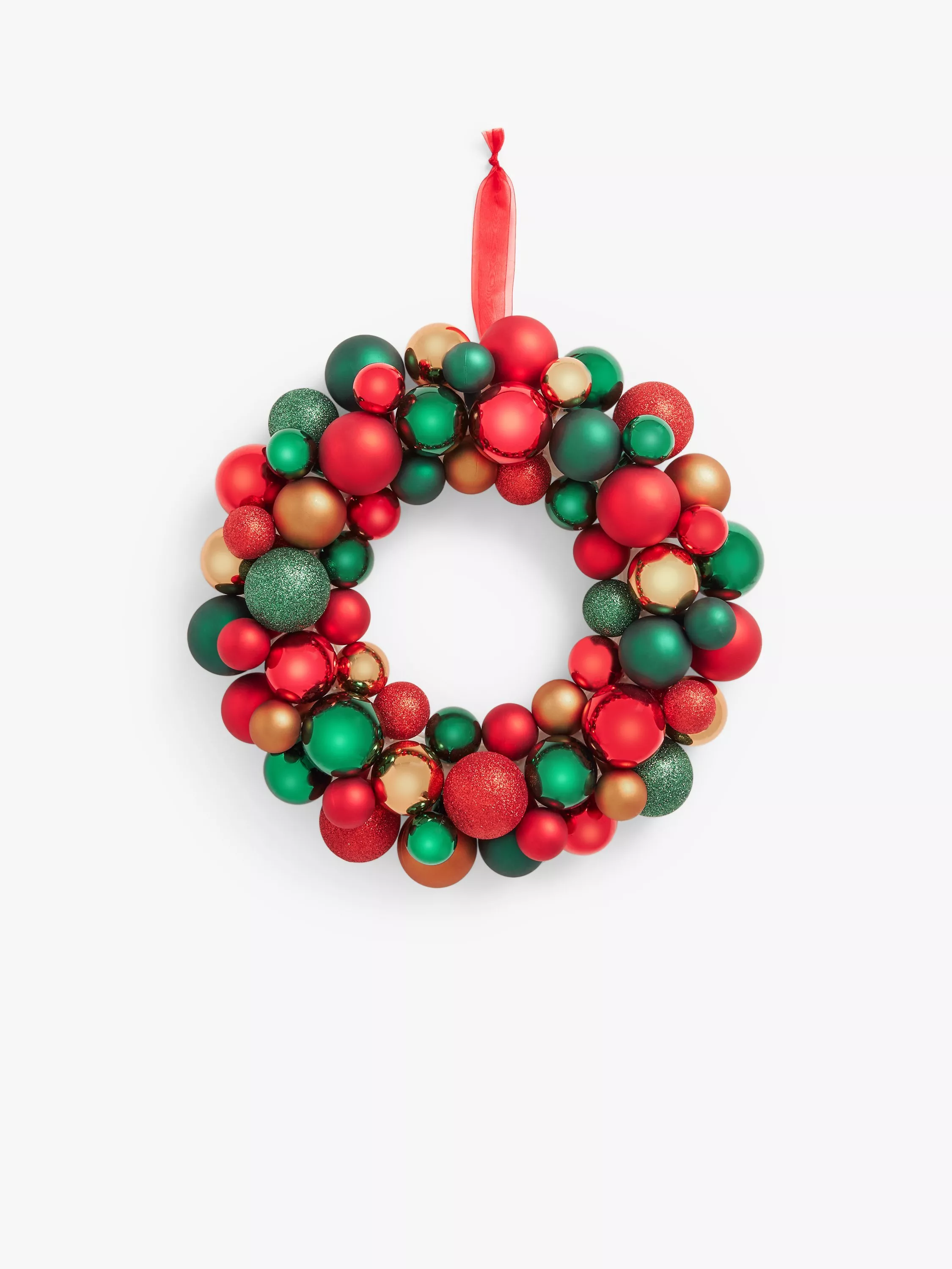 This fabulous wreath is made up of baubles in a range of complementary colours and different sizes and finishes.
