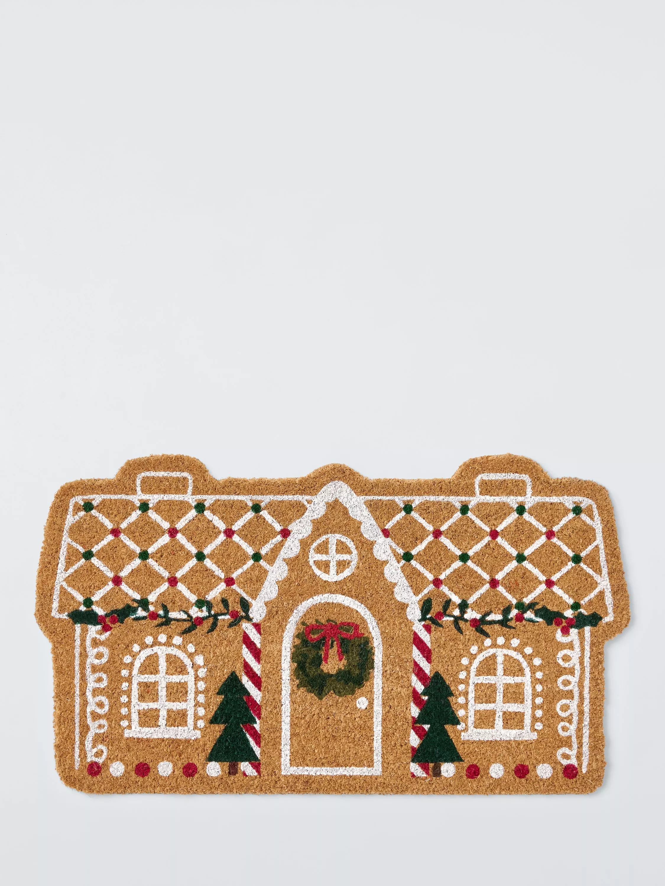 John LewisChristmas Gingerbread House Door Mat, Red/Multi