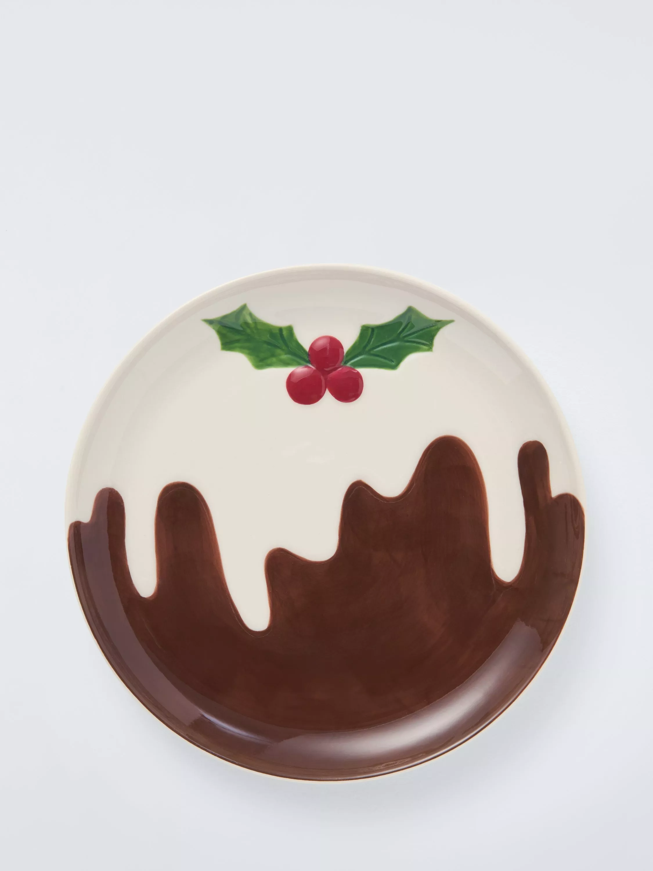 Perfect for parties and festive desserts, this plate features a Christmas pudding topped with cream, holly and berries. Made from stoneware with a raised rim, it's dishwasher and microwave-safe.
